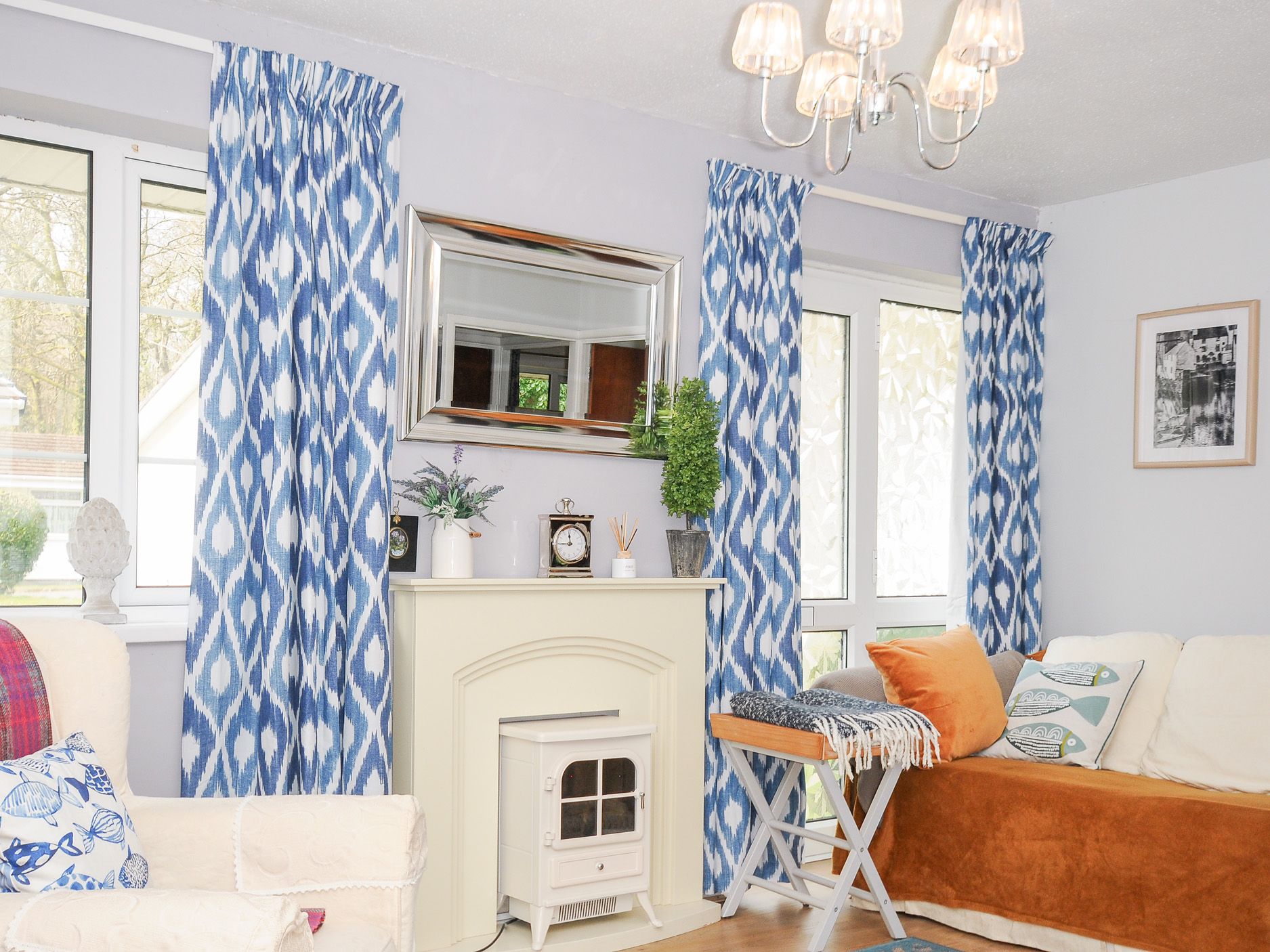 All ground floor. Two bedrooms: 1 x double, 1 x twin. Bathroom with walk-in shower, basin and WC. Open plan living area with kitchen, dining area and sitting area with electric coal-effect fire.