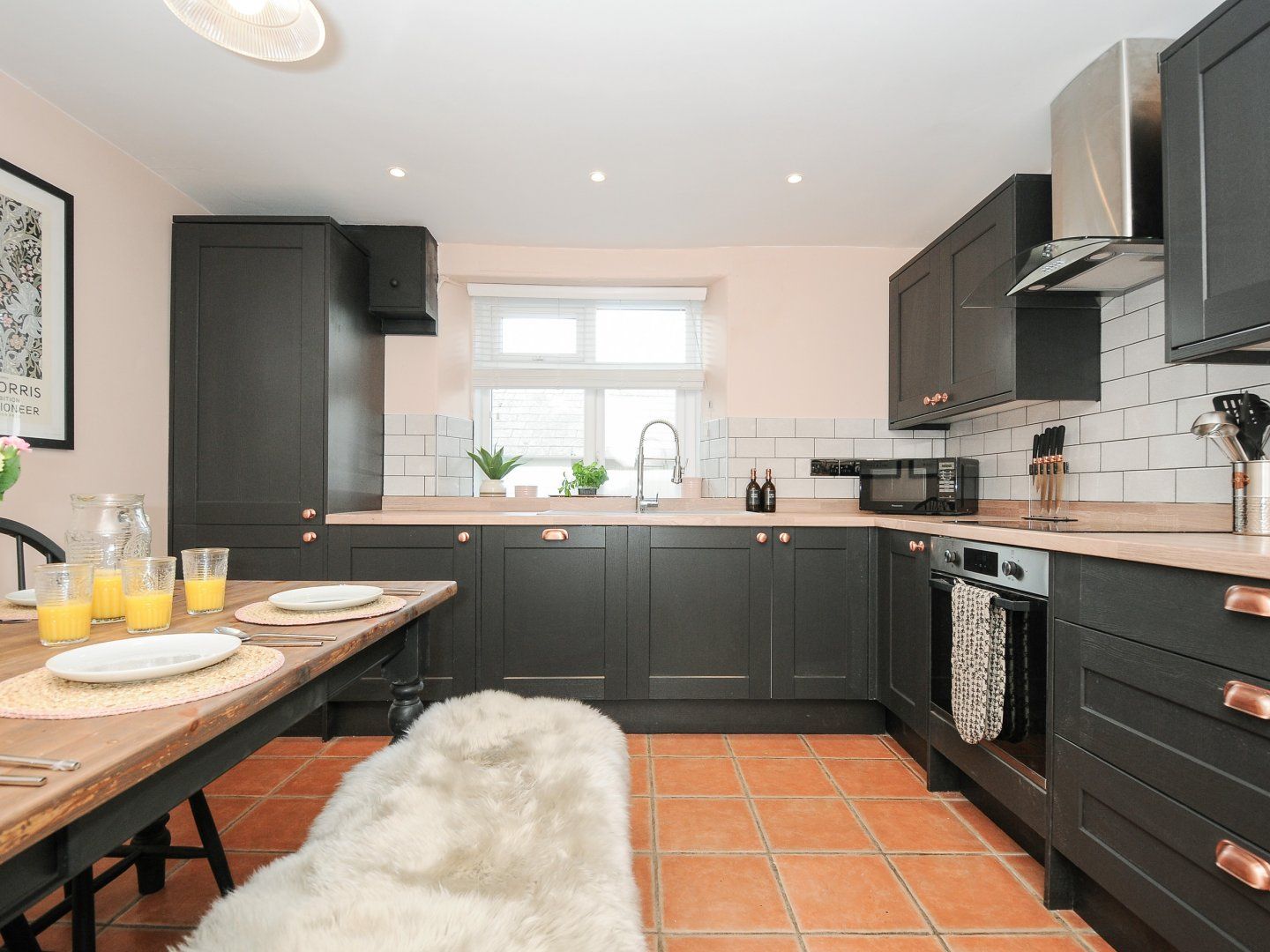 Amenities Central heating. Electric oven and ceramic hob, microwave, fridge, freezer, washing machine, dishwasher. Smart TV, WiFi. Fuel and power inc. in rent. Bed linen and towels inc. in rent. Ample off-road parking. Garden and courtyard with furniture and hot tub. Two well-behaved dog welcome. Sorry, no smoking. Shop 0.5 miles, pub 1.2 miles.