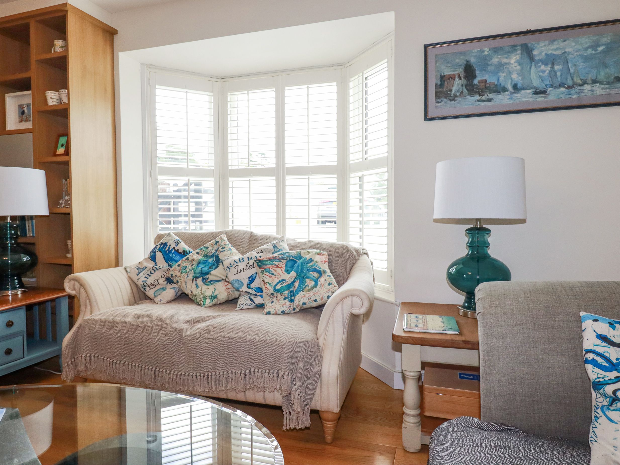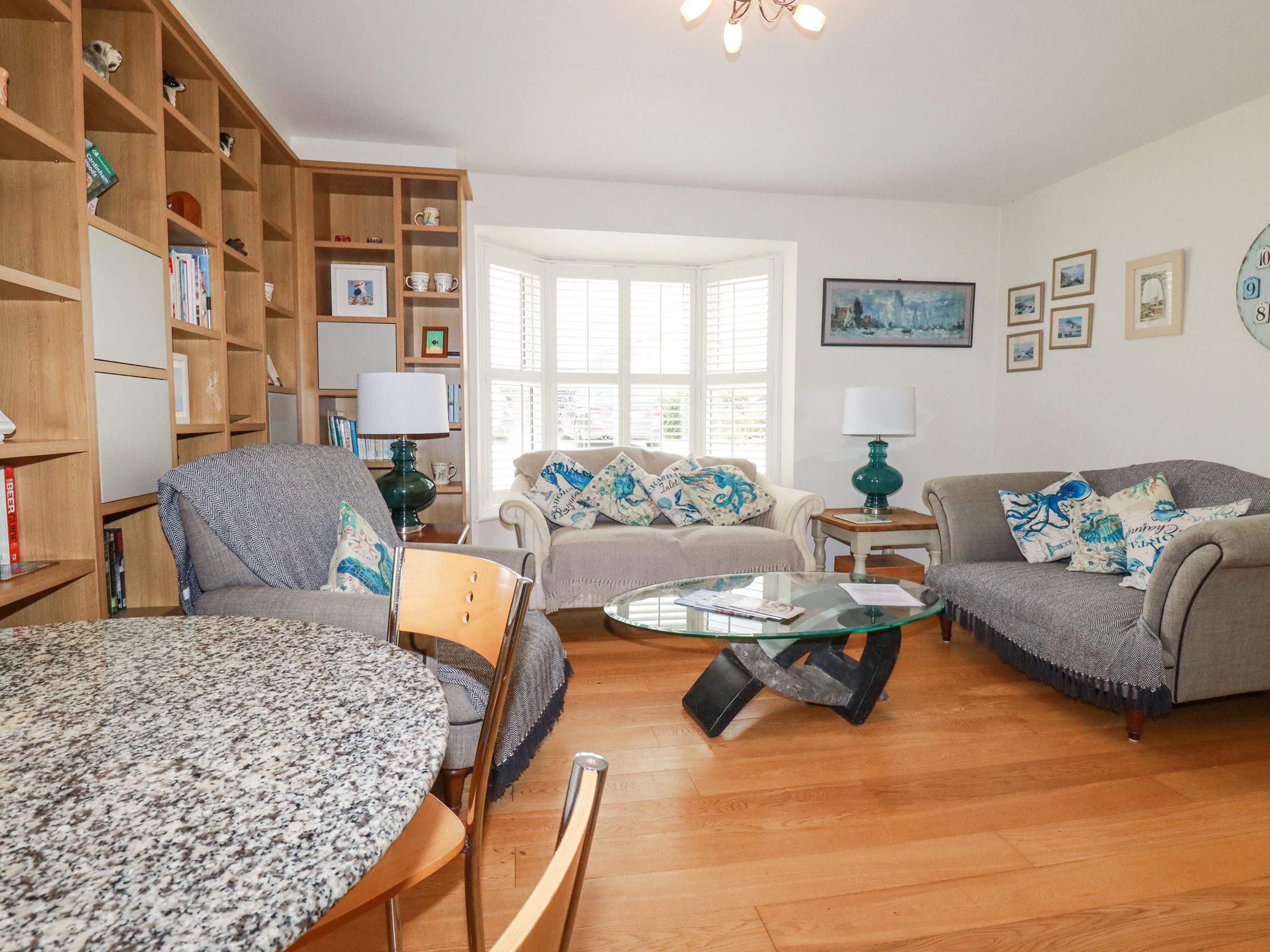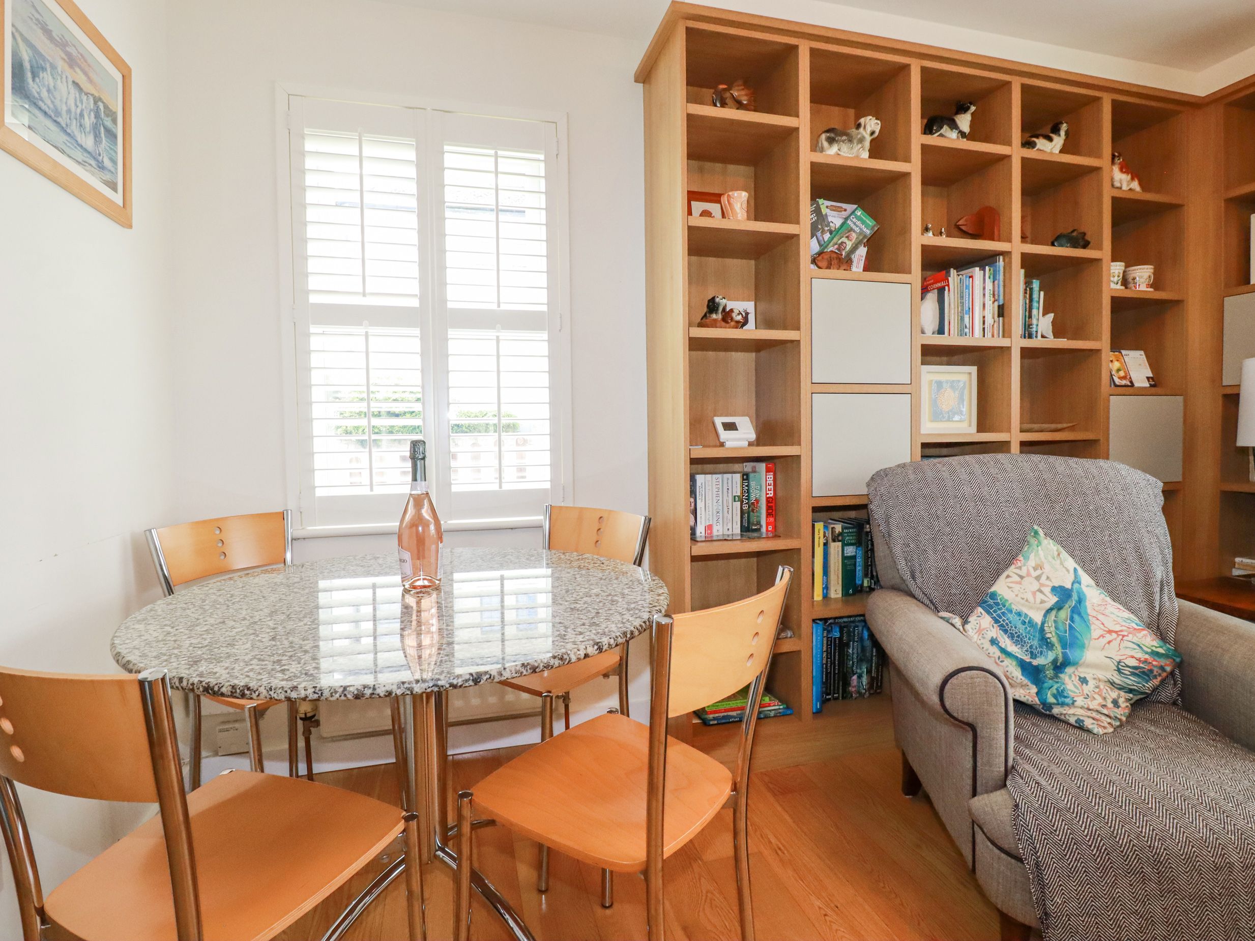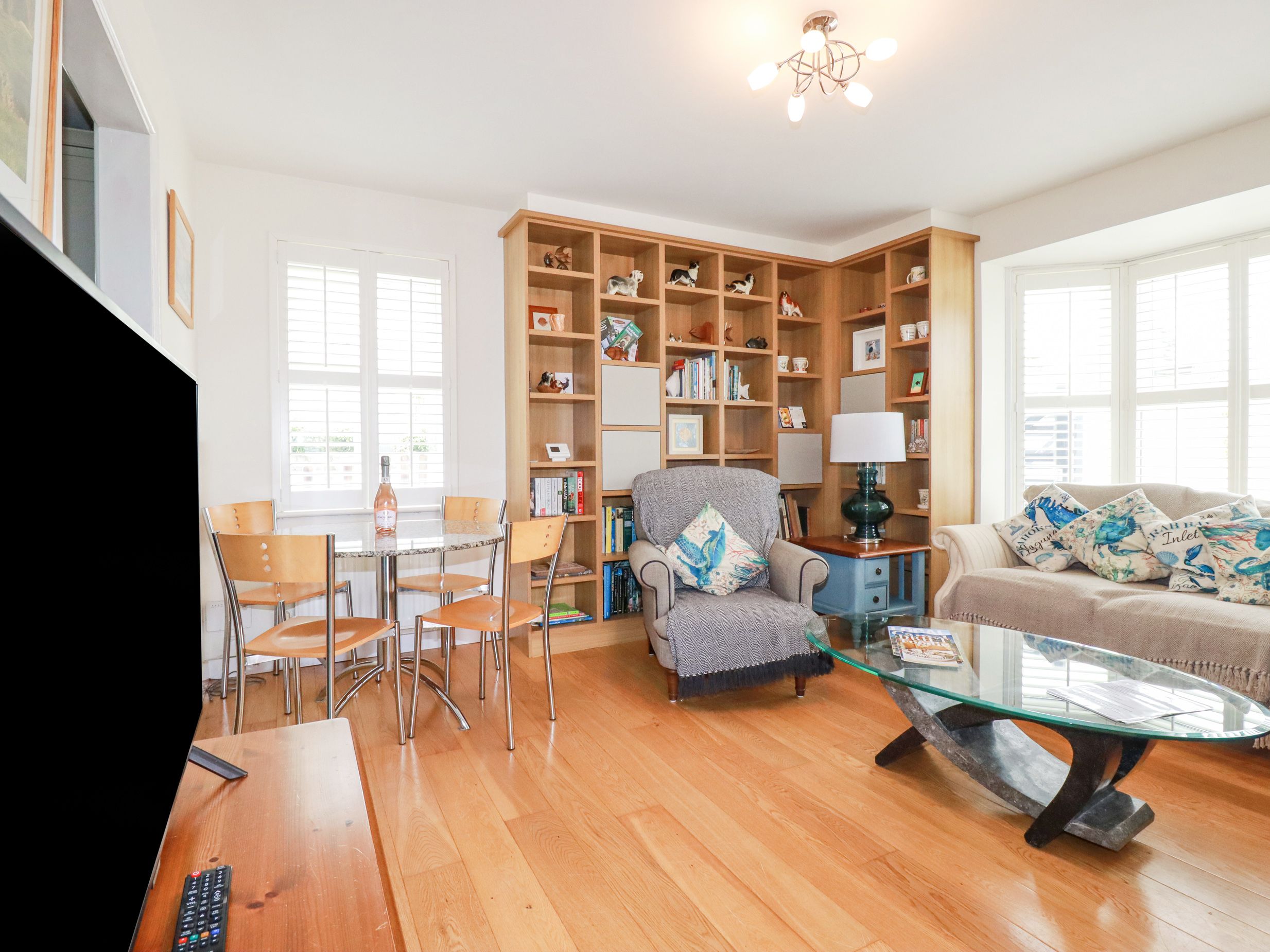 Two bedrooms: 1 x double, 1 x twin. Bathroom with bath, shower over, basin, heated towel rail and WC. Open-plan living space with kitchen, dining area and sitting area. Ground floor cloakroom