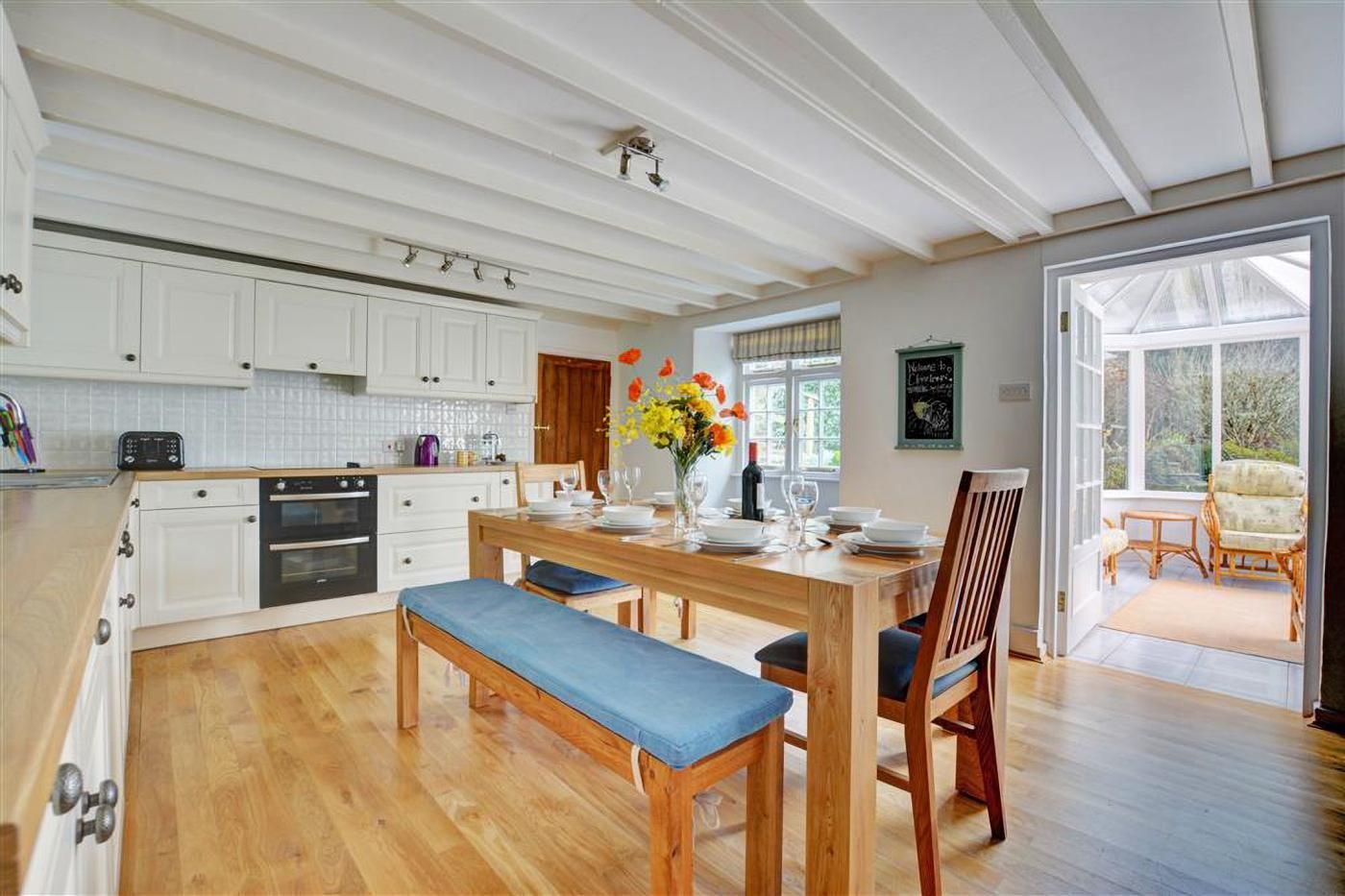 Inside the property, a fresh and light, nautical theme blends seamlessly with antique furnishings, beckoning guests to slip into holiday mode.