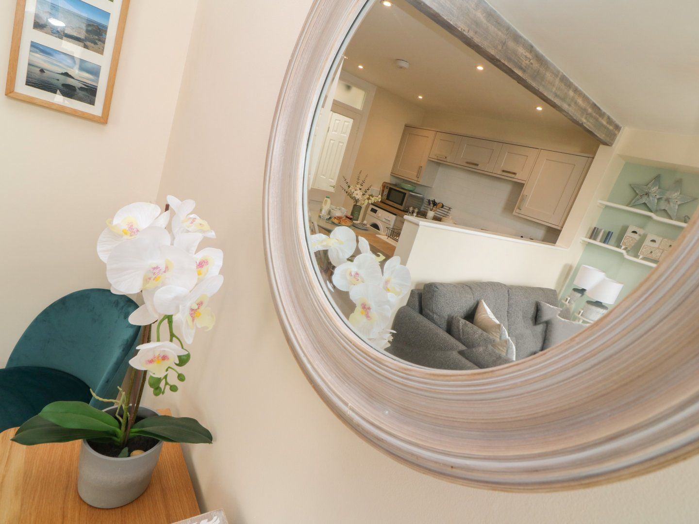 Amenities Electric heating via storage heaters and electric fire. Electric oven and hob, microwave, fridge/freezer, washing machine, dishwasher, TV and WiFi. Fuel and power inc. in rent. Bed linen and towels inc. in rent. Garage parking for one car - a height restriction of 195cm. One small, well-behaved dog welcome - only allowed dowsnstairs, and to be kept off furniture please. Note: The stairs are narrower and steeper than average and both bedrooms step out into the stairs, please take care. Sorry, no smoking. Shop and pub within 0.10 miles. Dog friendly beach within 100 yards. Note: Check-in at this property is from 4pm. Note: This property is not suitable for those with mobility issues.