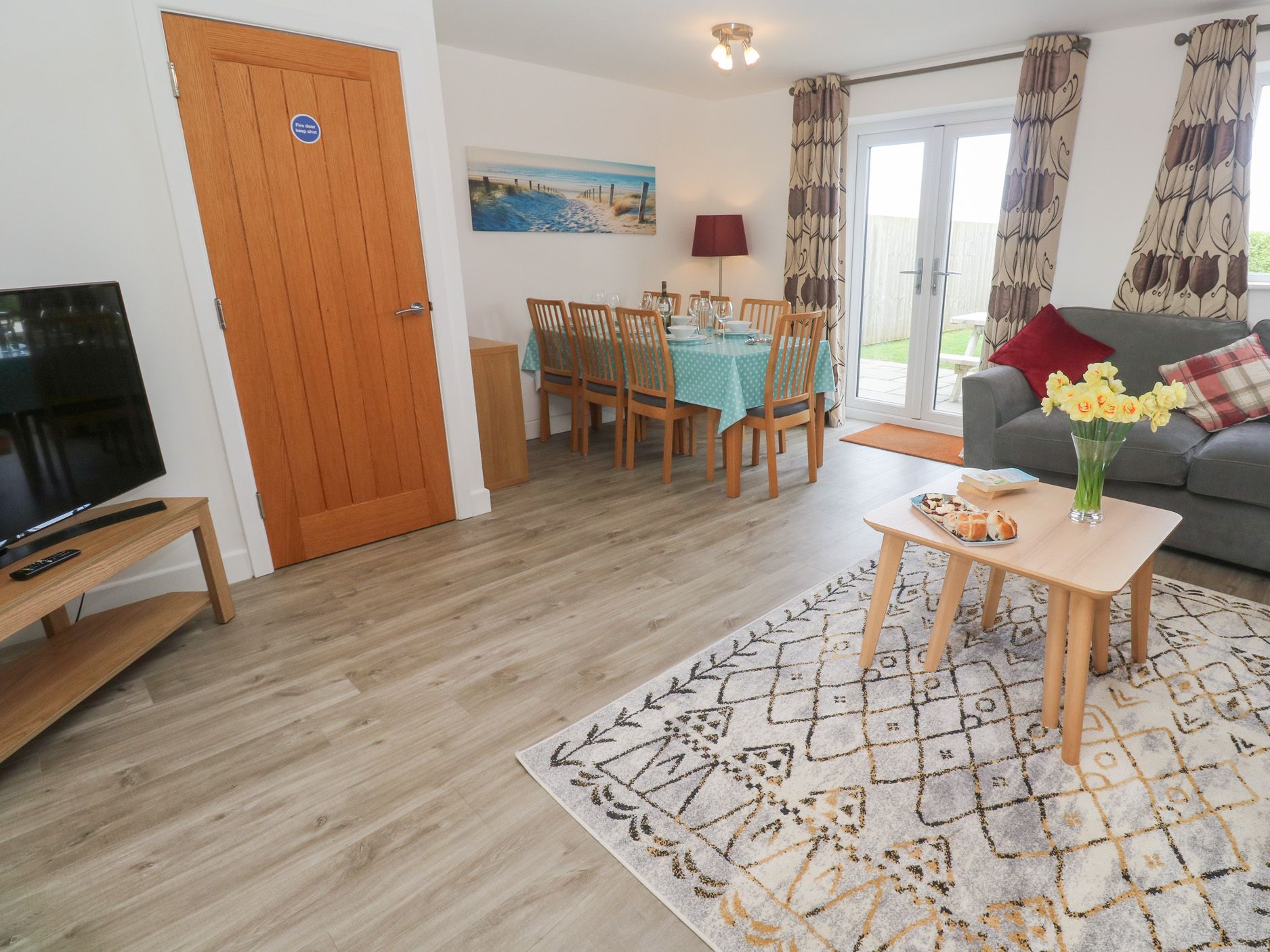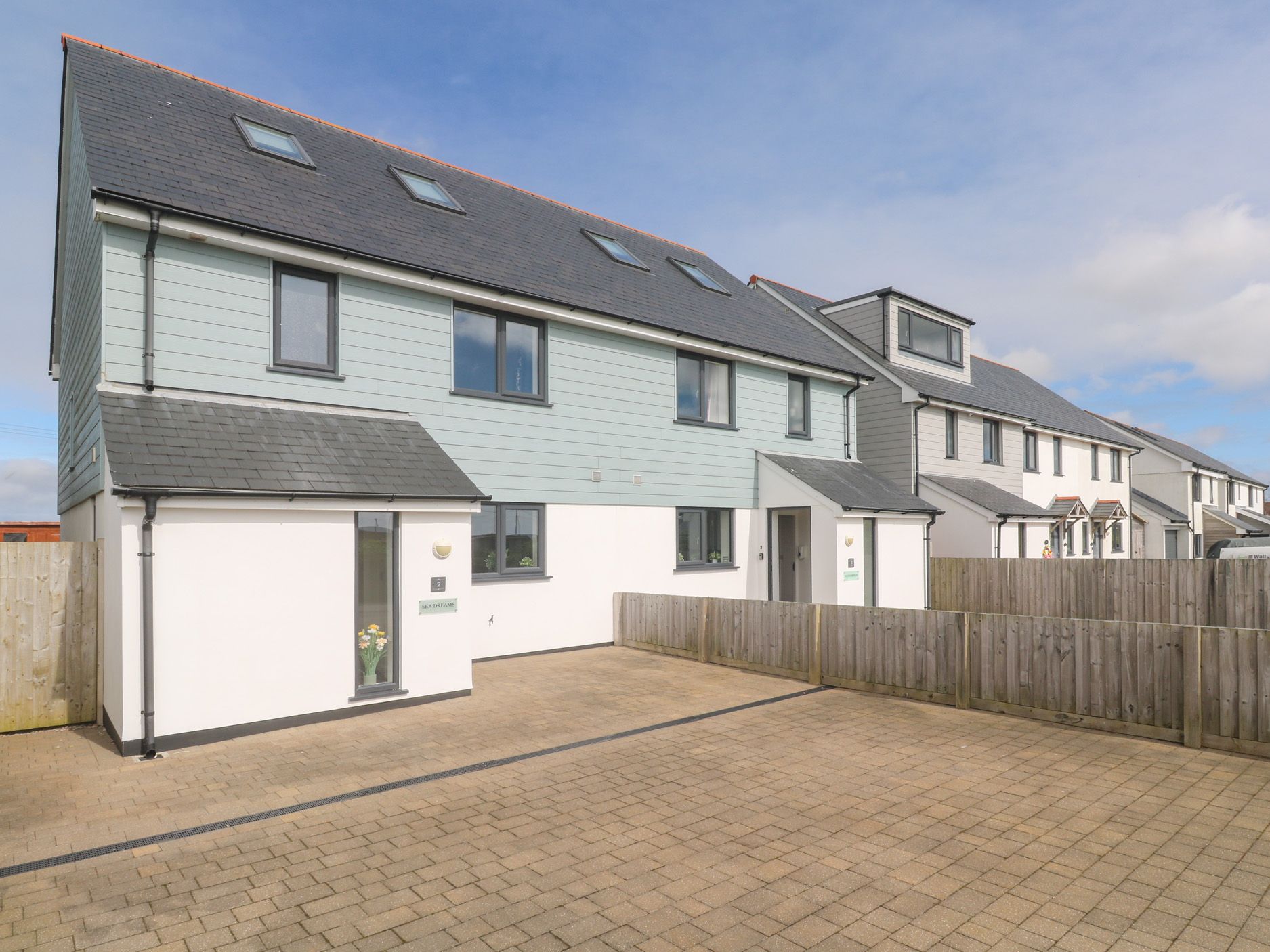 Amenities Air source underfloor heating. Double electric oven, ceramic hob, fridge/freezer, dishwasher, microwave, coffee machine, washing machine, tumble dryer, 5 Smart TVs, Amazon Echo and Bluetooth speaker and WiFi. Bed linen and towels inc. in rent. Fuel and power inc. in rent. Highchair and travel cot available. Off-road parking for two cars to the front of the property. Patio area with table and chairs. Two well behaved pets accepted. Pets must be kept downstairs only. Sorry, no smoking . Pub within 0.2 miles, shop within 0.5 miles. Note: All 3 of the owners’ properties can be booked together to sleep 21 guests using property ID’s 1008185 (Sea Dreams), 1008186 (Ocean Breeze) 1110901 (Atlantic Reach) Properties are located next door to each other