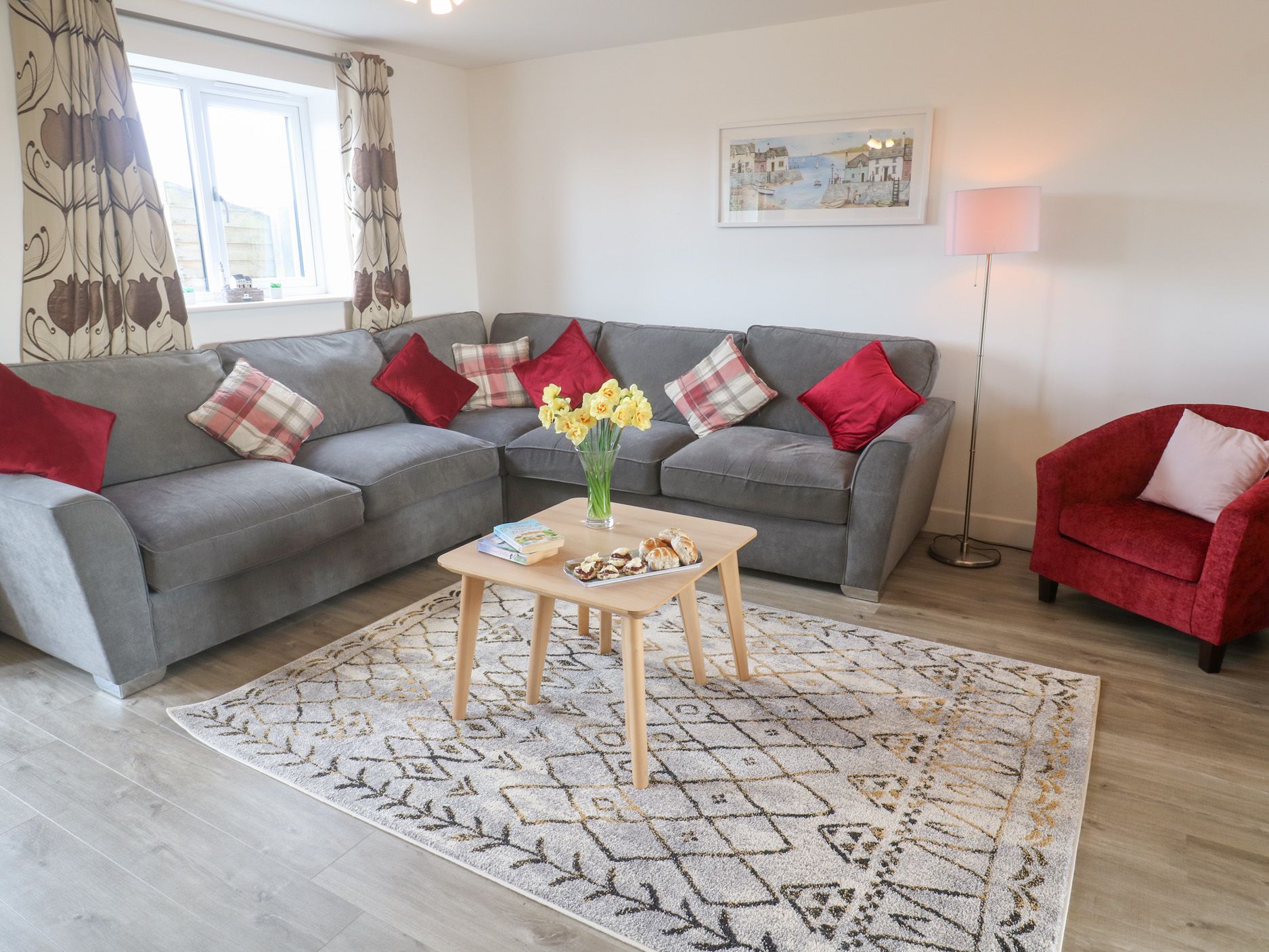 Accomodation Details Over three floors. Four bedrooms; 1 x second-floor king-size bedroom with an en-suite, with walk-in shower, basin and WC, 1 x king-size double,1 x twin, 1 x single. Bathroom with bath, separate walk-in shower, basin and WC. Cloakroom with basin and WC. Open-plan living room, with kitchen, dining area and sitting area.