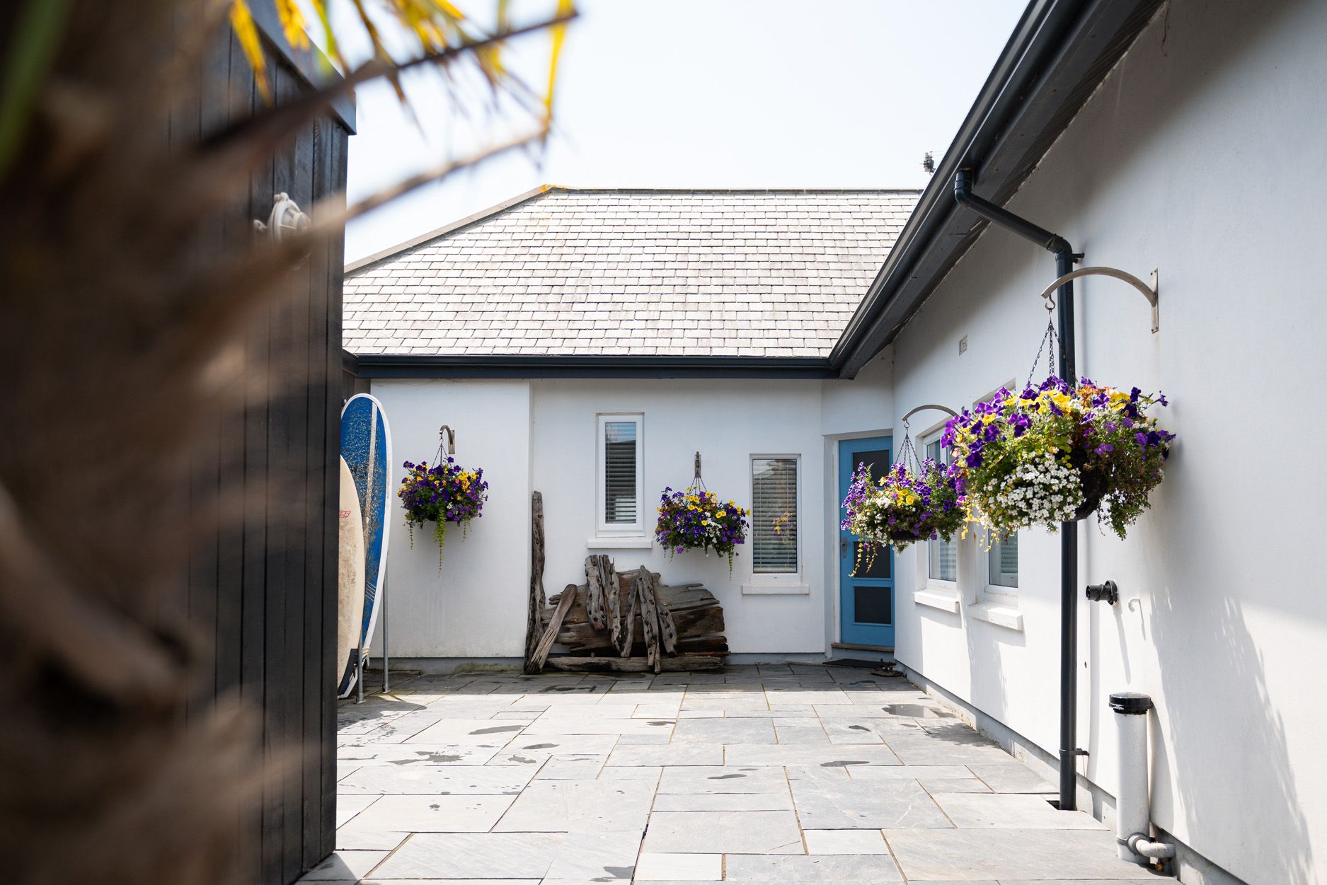 Holiday home Please note: This property cannot accommodate Saturday changeovers. During School Holidays only weekly bookings can be accommodated starting on a Friday. Blue Bay Beach House is a detached property resting within Mawgan Porth bay, in Cornwall. It houses nine bedrooms, sleeping 22 in total, comprising of a family bedroom with double bed and twin beds, and en-suite shower, basin and WC, a double with en-suite bathroom, with shower over bath, basin and WC, a king-size double with en-suite shower, basin and WC, a family bedroom with double bed and a single bed (truckle bed available on request) with en-suite shower, basin and WC, a family bedroom with double bed and a single bed (truckle bed available on request) with en-suite bathroom, with shower over bath, basin and WC, a double bed with en-suite bathroom with shower over, basin and WC, a king-size bed (zip/link beds, can be made into twins on request), with en-suite shower, basin and WC, a double with en-suite shower, basin and WC and a twin (zip/link beds, can be made into a king-size bed on request), with en-suite bathroom with shower over bath, basin and WC. Completing the interior is an open-plan living room with a kitchen, a dining area and a sitting area. Outside, you will find a hot tub, a fire pit, a courtyard garden, surf racks, a surf shower, a decked area with furniture and off-road parking for 10 cars. Blue Bay Beach House is a superb base for a family and friends gathering to this part of Cornwall.