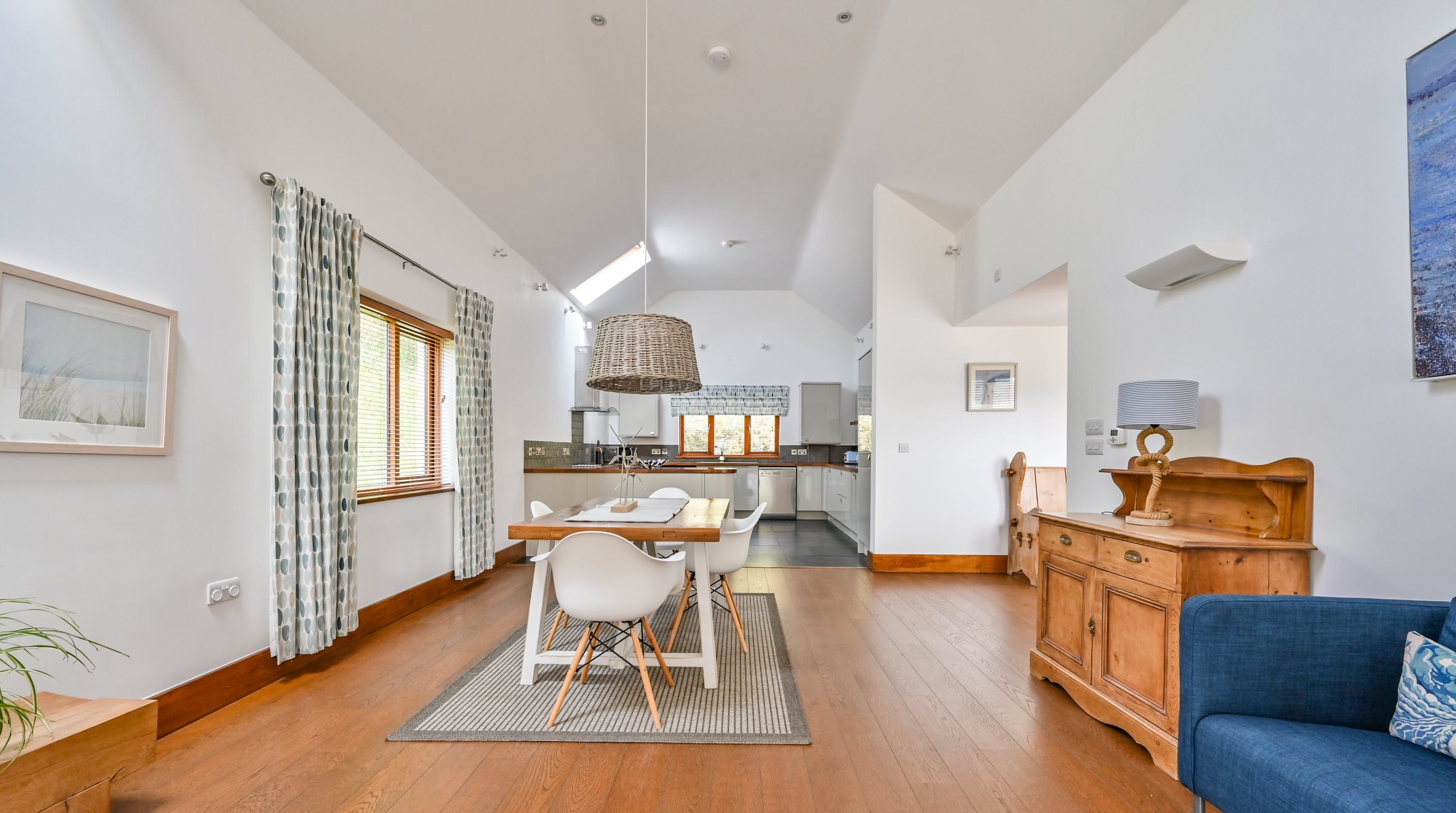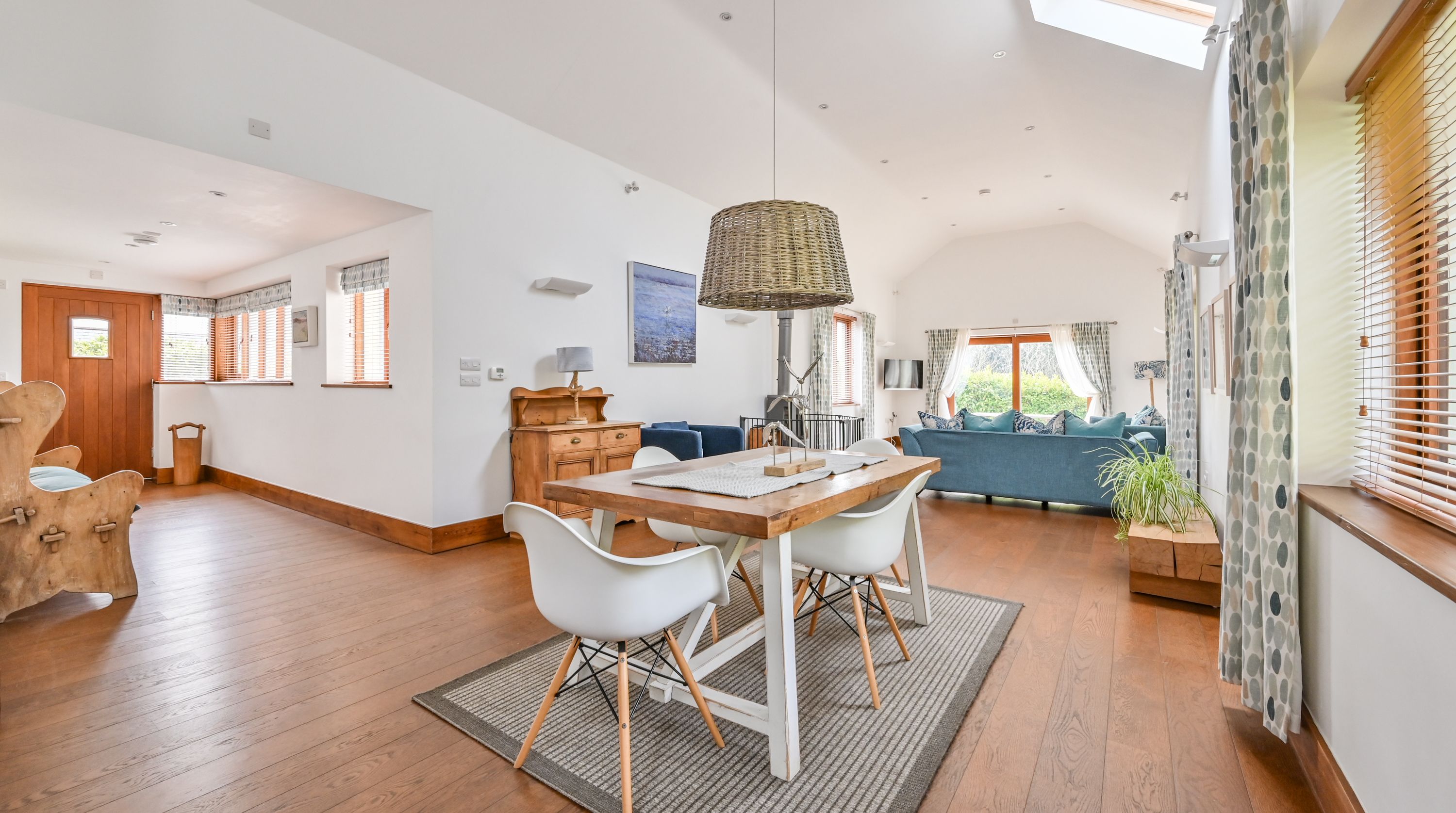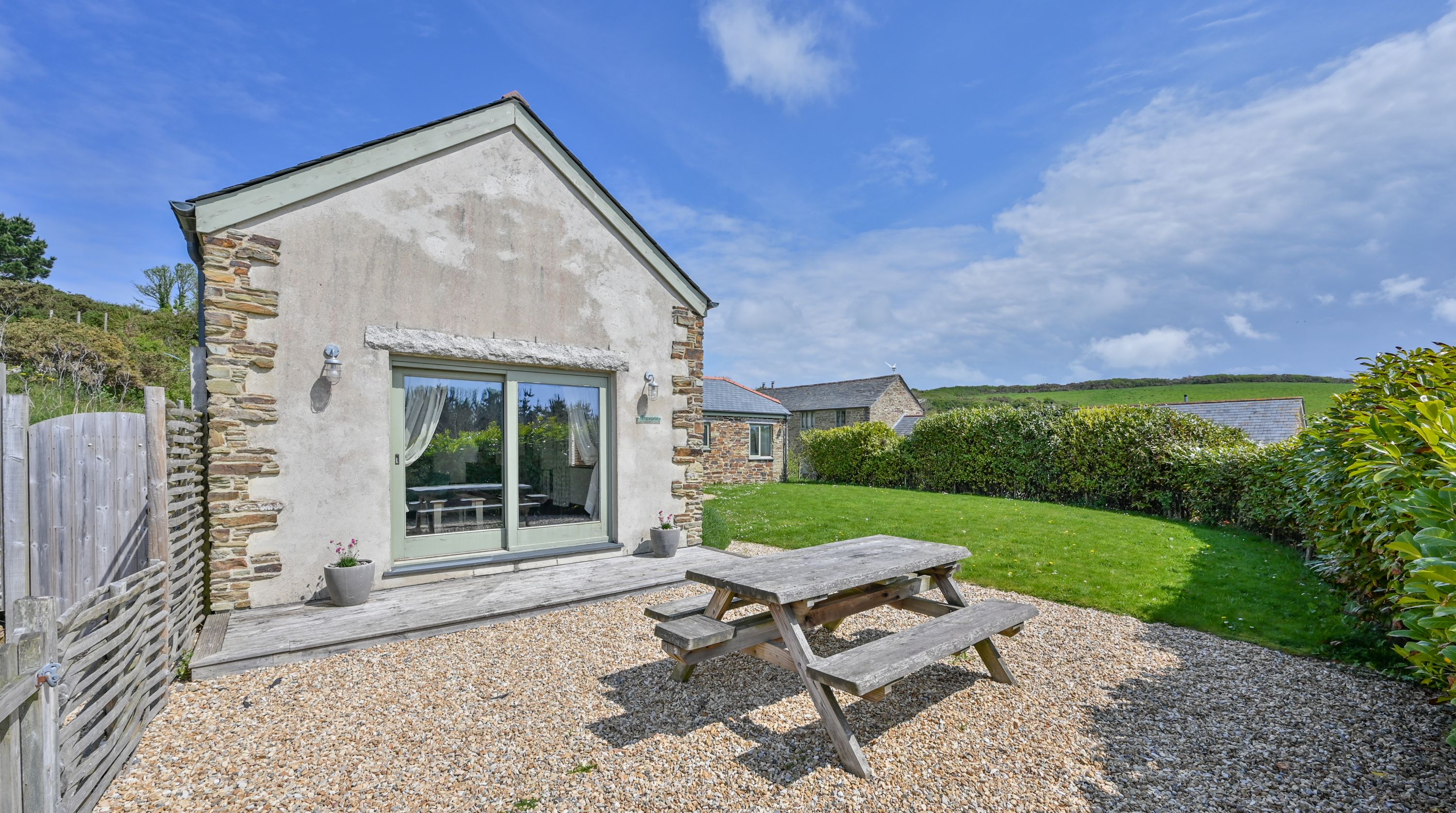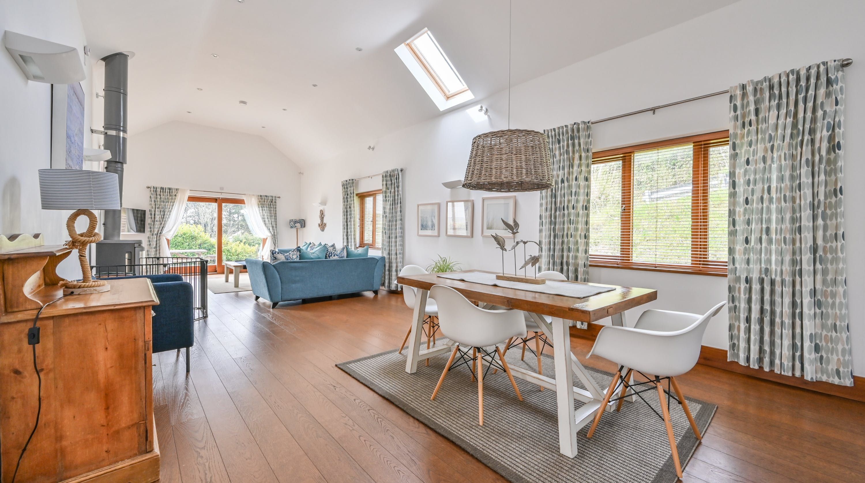 The soothing interior, cloaked in blue tones and natural textures, is a haven where you can truly relax. Fire up the wood-burner on chilly evenings and curl up with a good movie. And, on sunny days, you'll be delighted that there's a large lawn where the kids can play while you sit at the picnic table with a cool drink and breathe in the fresh air.