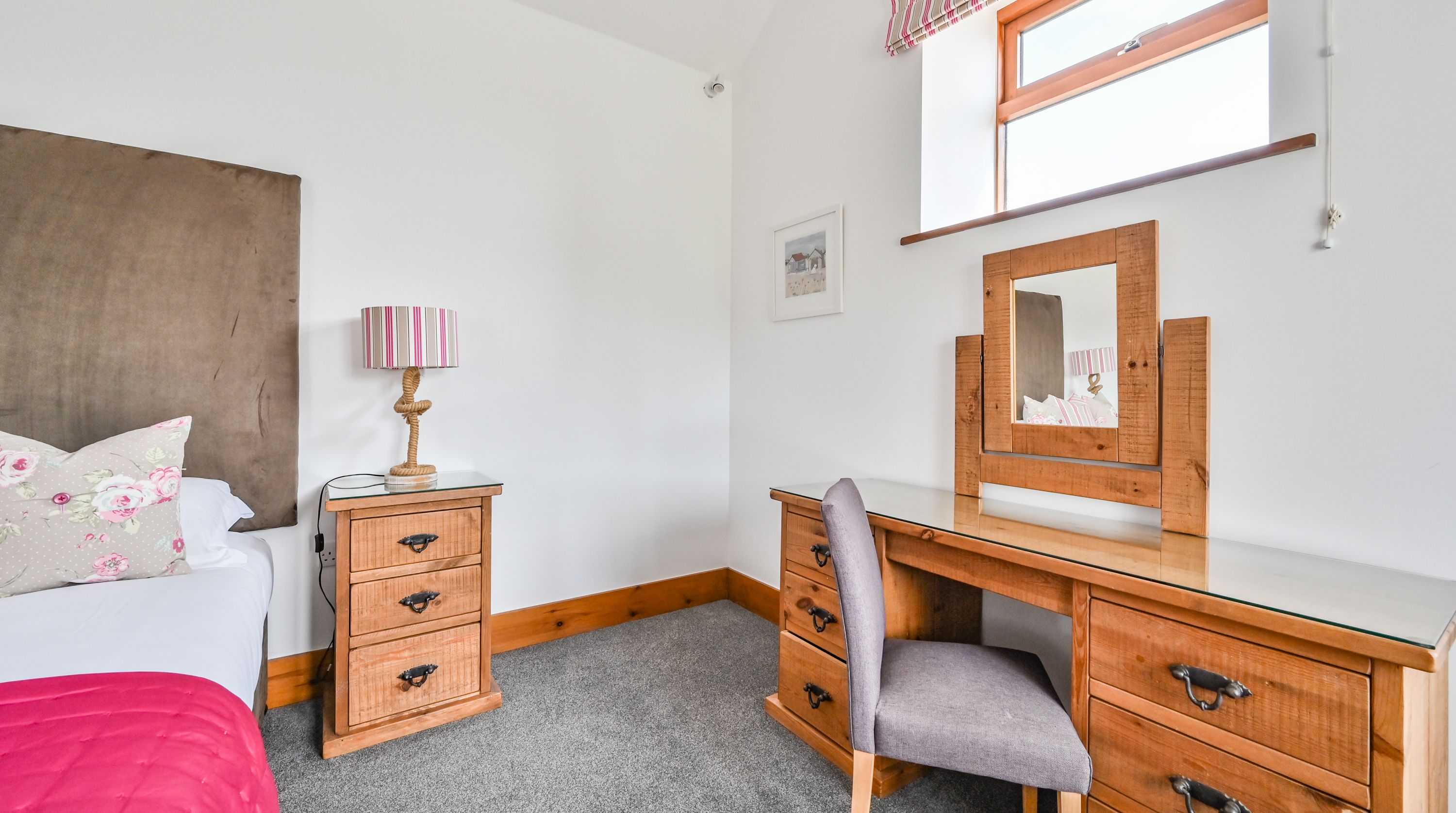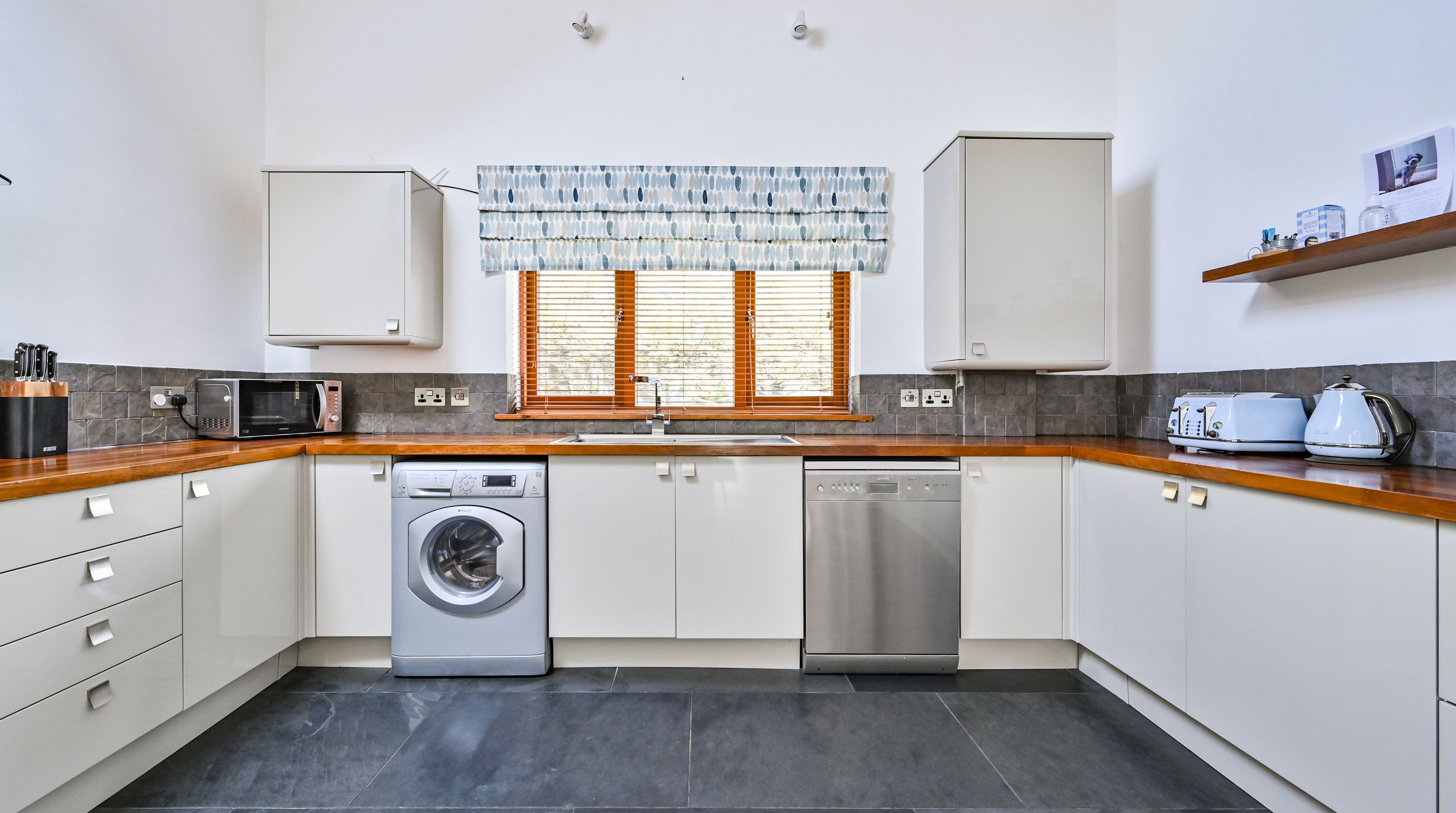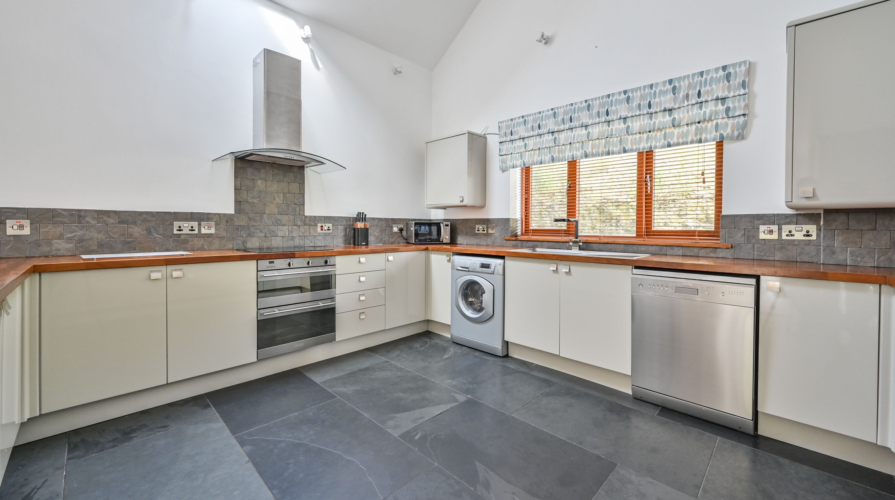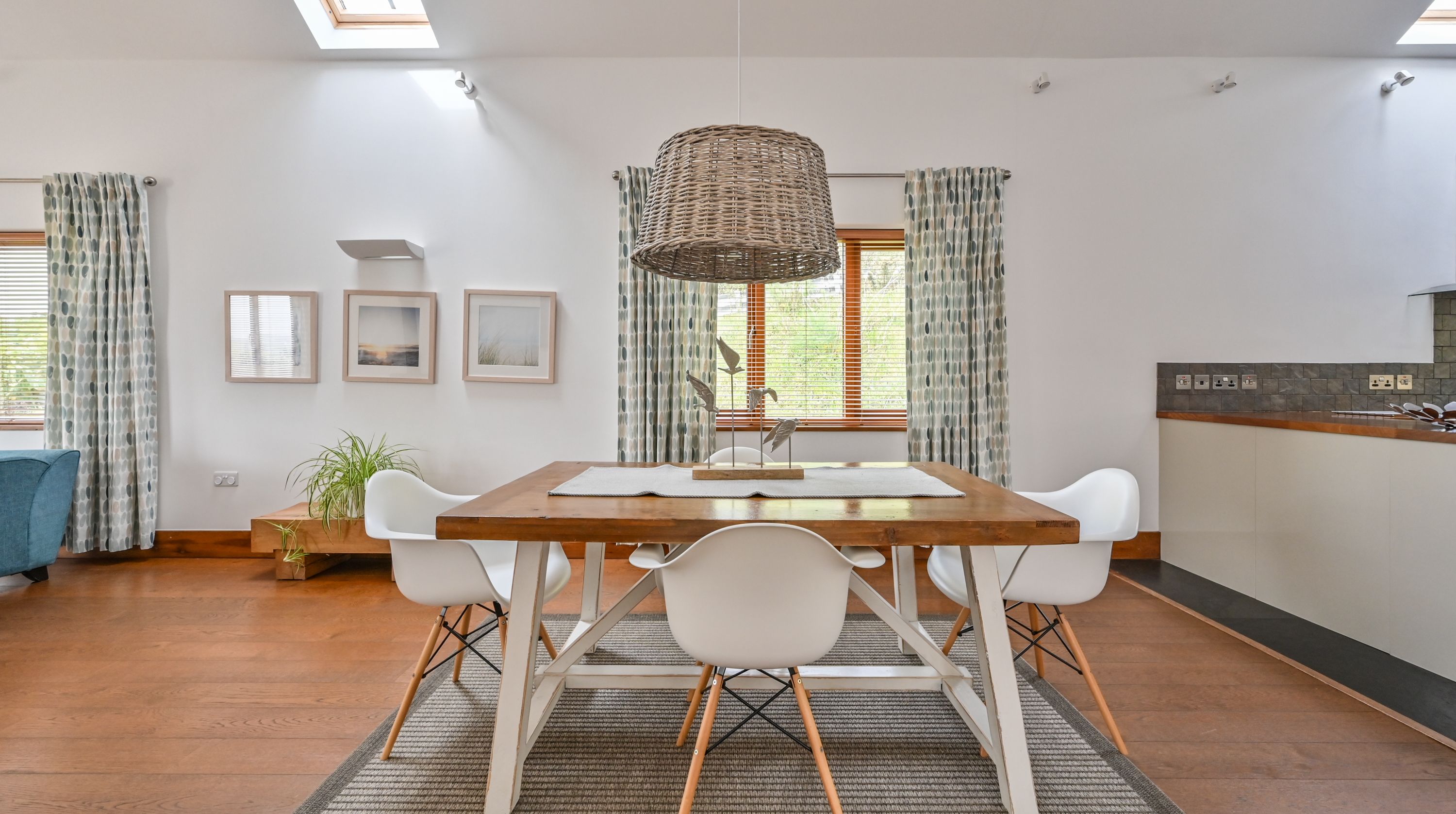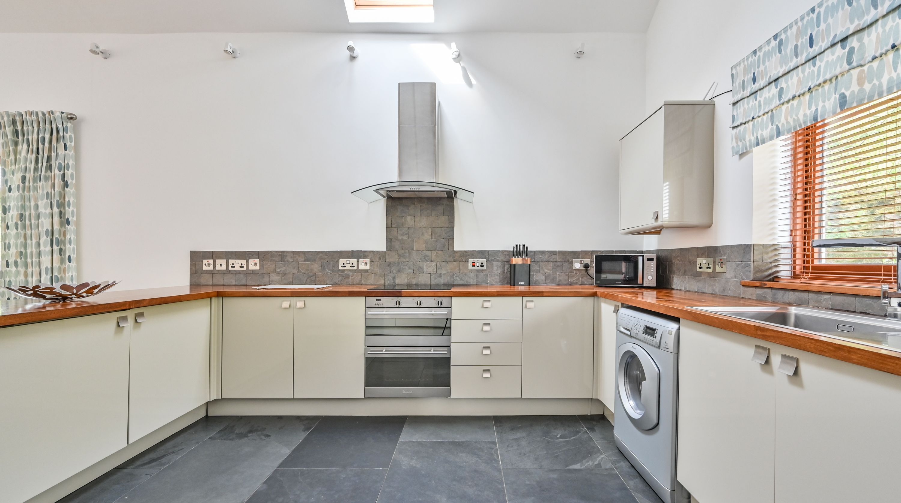 The soothing interior, cloaked in blue tones and natural textures, is a haven where you can truly relax. Fire up the wood-burner on chilly evenings and curl up with a good movie. And, on sunny days, you'll be delighted that there's a large lawn where the kids can play while you sit at the picnic table with a cool drink and breathe in the fresh air.