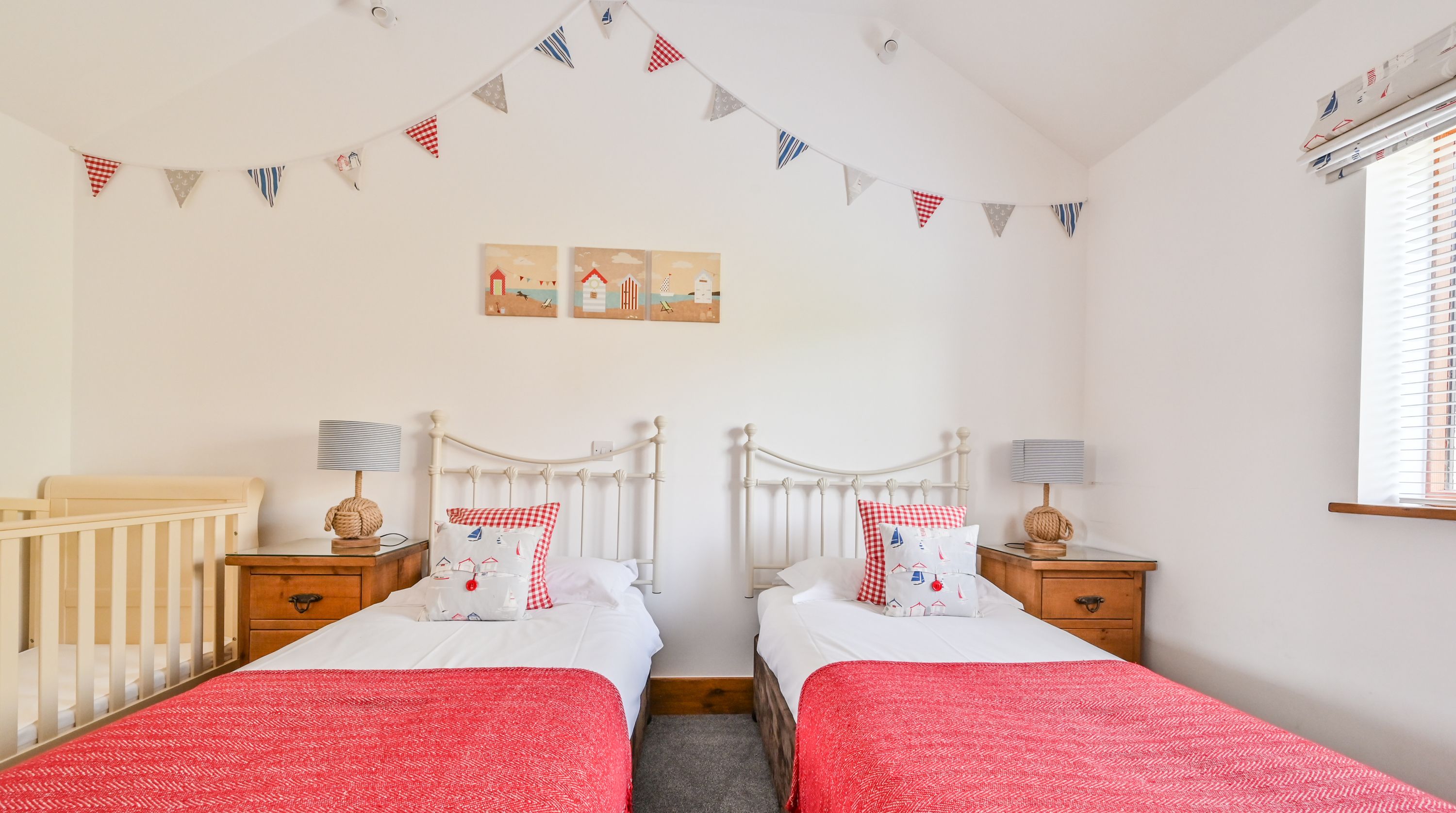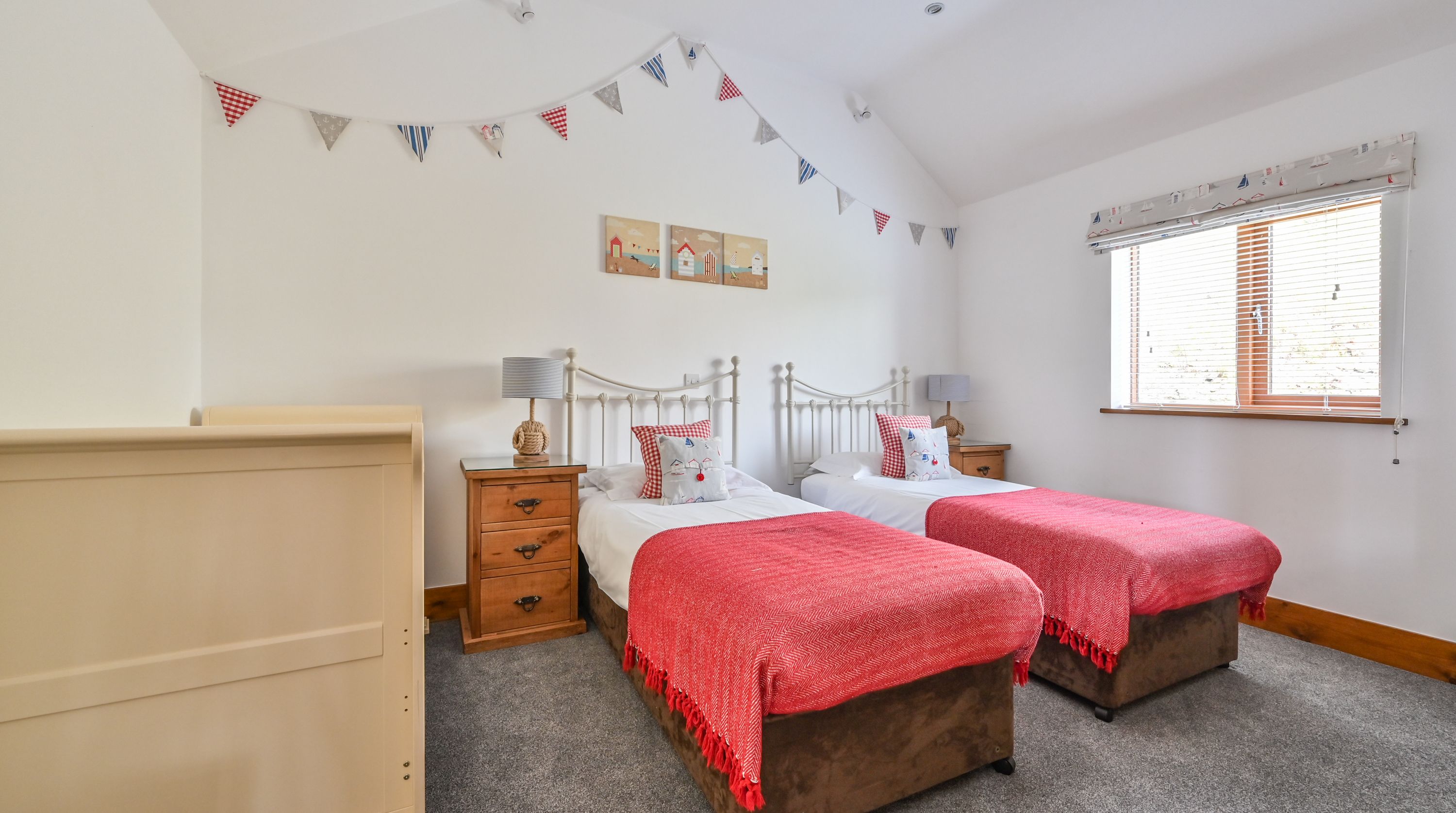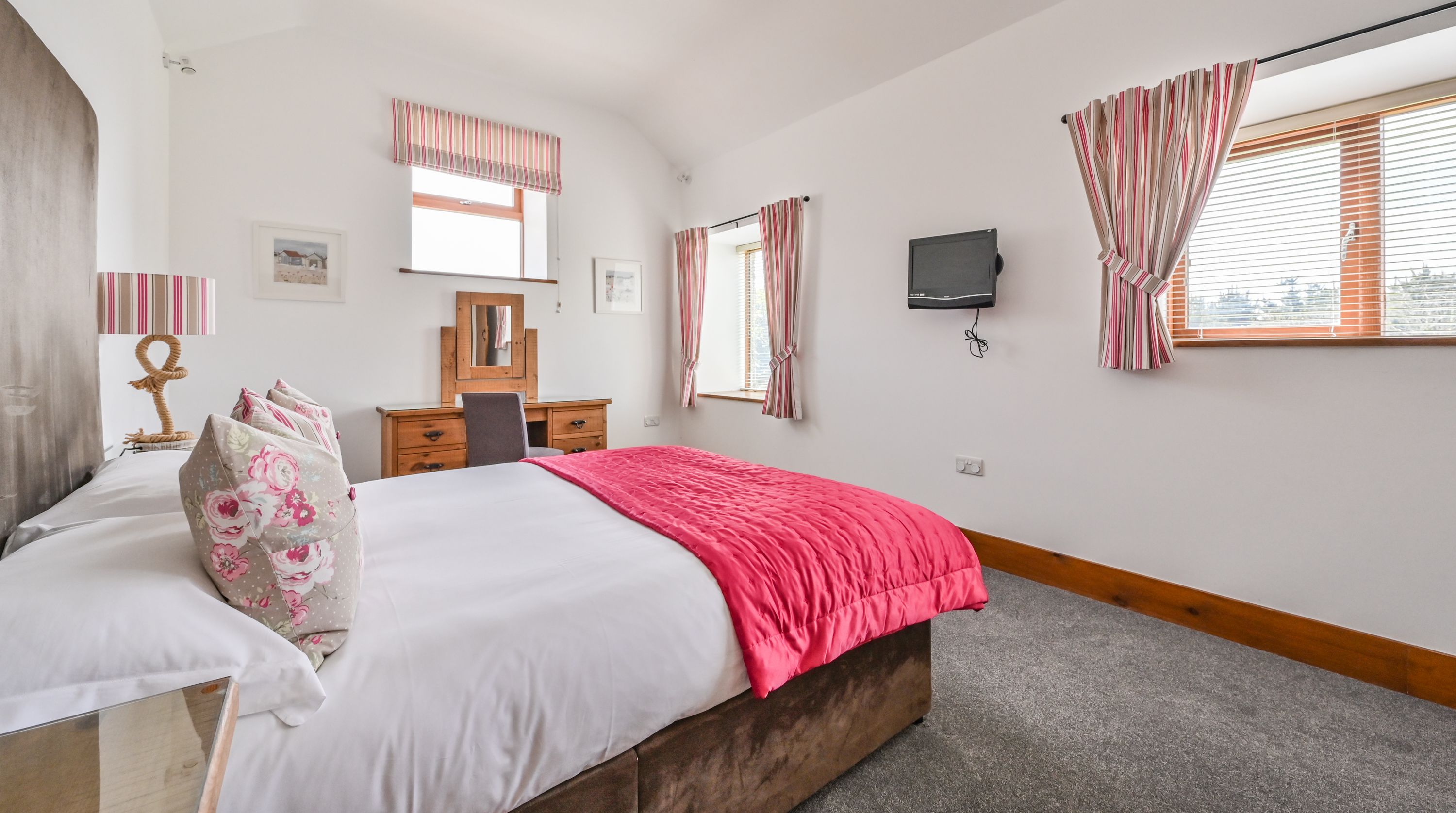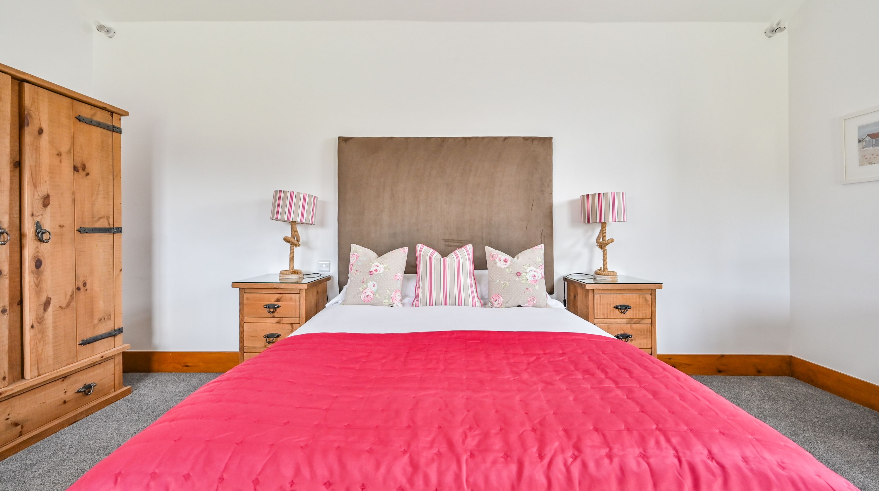 The soothing interior, cloaked in blue tones and natural textures, is a haven where you can truly relax. Fire up the wood-burner on chilly evenings and curl up with a good movie. And, on sunny days, you'll be delighted that there's a large lawn where the kids can play while you sit at the picnic table with a cool drink and breathe in the fresh air.