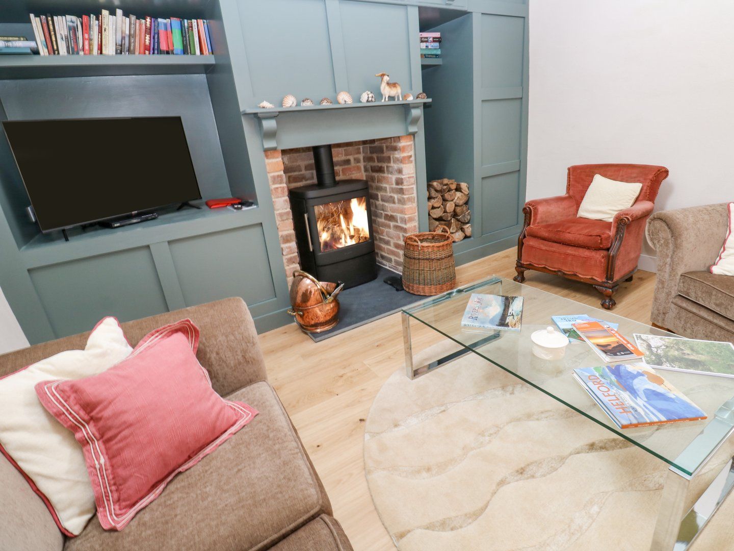 Reverse-level accommodation. Two bedrooms: 1 x ground-floor king-size, 1 x ground-floor twin (zip/link, can be king-size on request). Ground-floor bathroom with bath, shower over, basin, heated towel rail and WC. First-floor open-plan living space with kitchen, dining and sitting area with woodburning stove. Utility. First-floor cloakroom