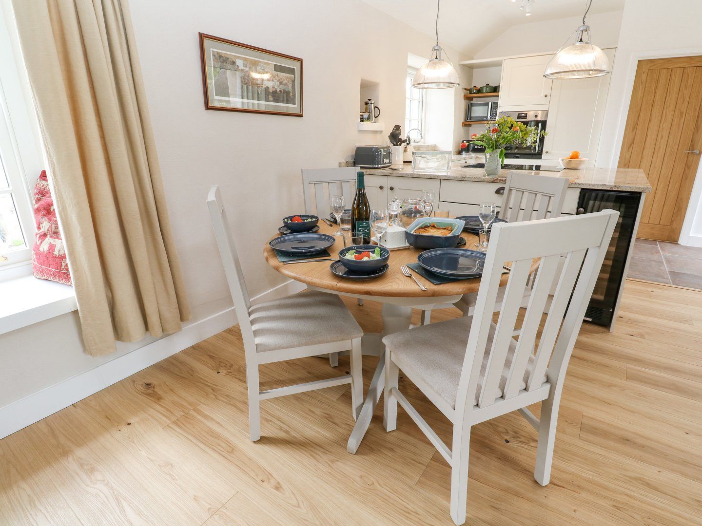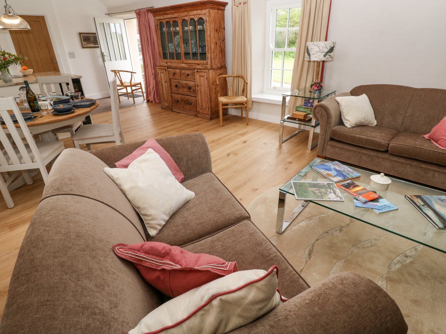 Underfloor heating. Electric oven and hob, microwave, fridge/freezer, dishwasher, washer/dryer. TV, WiFi. Fuel and power inc. in rent. Bed linen and towels inc. in rent. Travel cot and highchair available on request. Off-road parking for 2 cars. Enclosed lawned garden. Two well-behaved dogs welcome. Sorry, no smoking. Shop and pub 1.3 miles. Note: There are dogs on the farm, pets should be monitored and kept within the confines of the gated garden