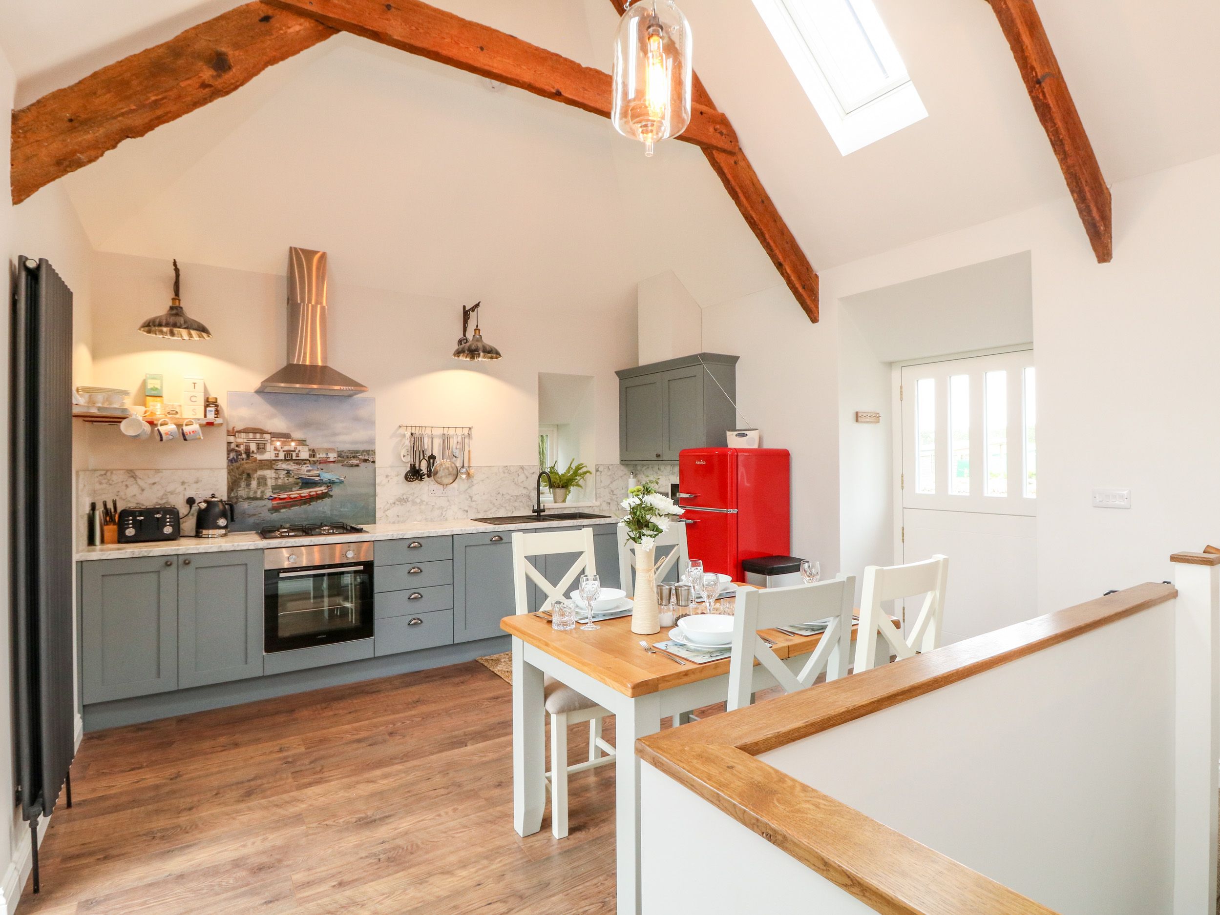 Holiday home The Old Byre is an attractive detached reverse-level barn conversion resting in Mawnan Smith, Cumbria. Hosting two bedrooms, including a super-king (zip/link, can be twin) with a TV and ensuite shower room and a king-size with TV and en-suite shower room, this property can sleep up to four guests. There is also an open plan living space with kitchen, dining area and sitting area. Outside there is off-road parking for two cars, and an enclosed garden with lawn. The Old Byre is a picturesque dwelling for your next trip to Cornwall.
