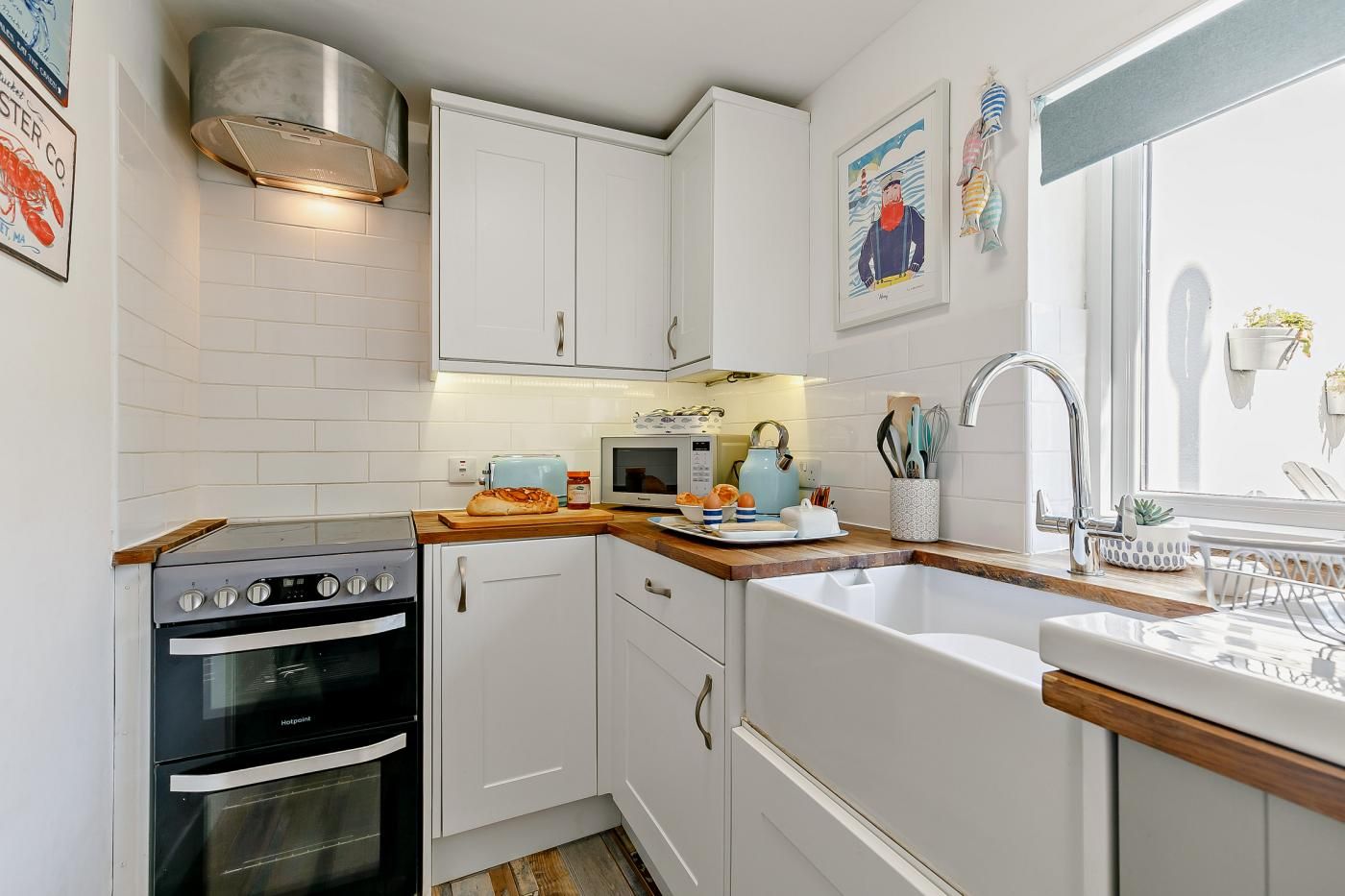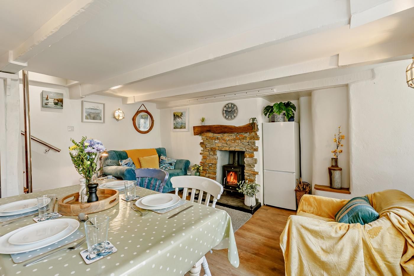 Enter via a set of stone steps and find yourself in the charming dining/snug room, where a cosy wood burner sets the stage for delightful meals. Adjacent to this room lies the fully equipped kitchen, ready to cater to all your culinary needs.