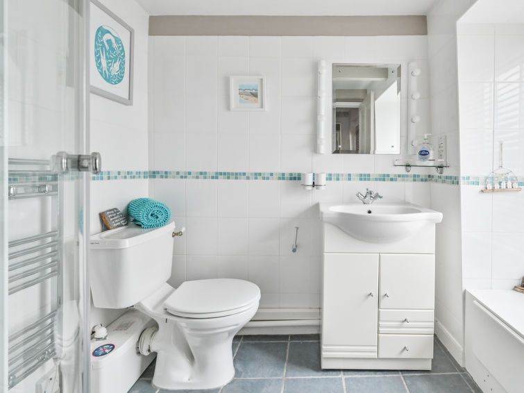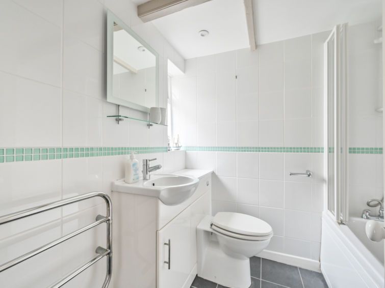 "Mariners Rest", 4-room cottage 84 m2 on 3 levels. Living/dining room with dining table, digital TV and electric heater. Exit to the garden. Kitchen (oven, dishwasher, 4 ceramic glass hob hotplates, microwave) with electric heating. Upper floor: 1 double bedroom with 1 double bed and bath/WC with shower/WC.