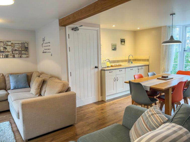 "Cherry Orchards", 10-room house. Modern and tasteful furnishings: open dining room. Open living/dining room with dining table and TV. Large kitchen (5 hot plates, oven, dishwasher, toaster, kettle, microwave, freezer) with electric heating. Exit to the garden, to the terrace. On the lower ground floor: 1 double bedroom with 1 double bed and bath/shower/WC.