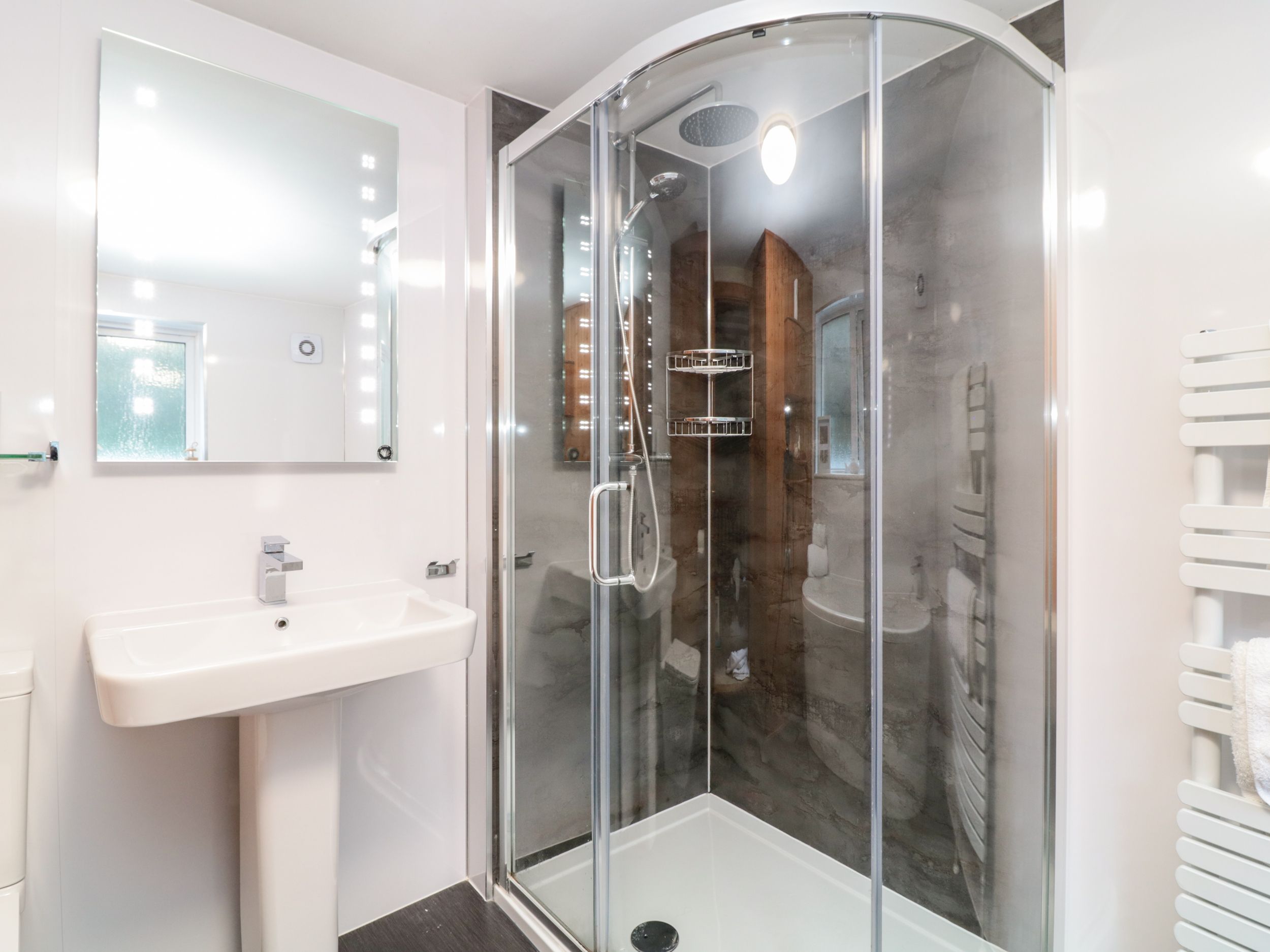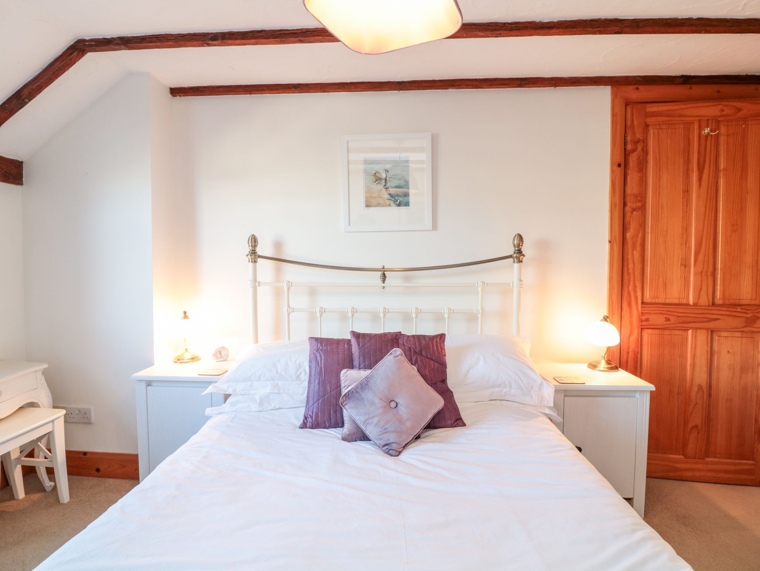 Accomodation Details Two bedrooms: 1 x ground-floor king-size (zip/link, can be twin upon request) and 1 x double. Downstairs bathroom with shower, basin and WC. 2nd Bathroom with bath, separate shower, basin and WC. Kitchen/diner. Dining room. First-floor sitting room with electric woodburning-effect fire