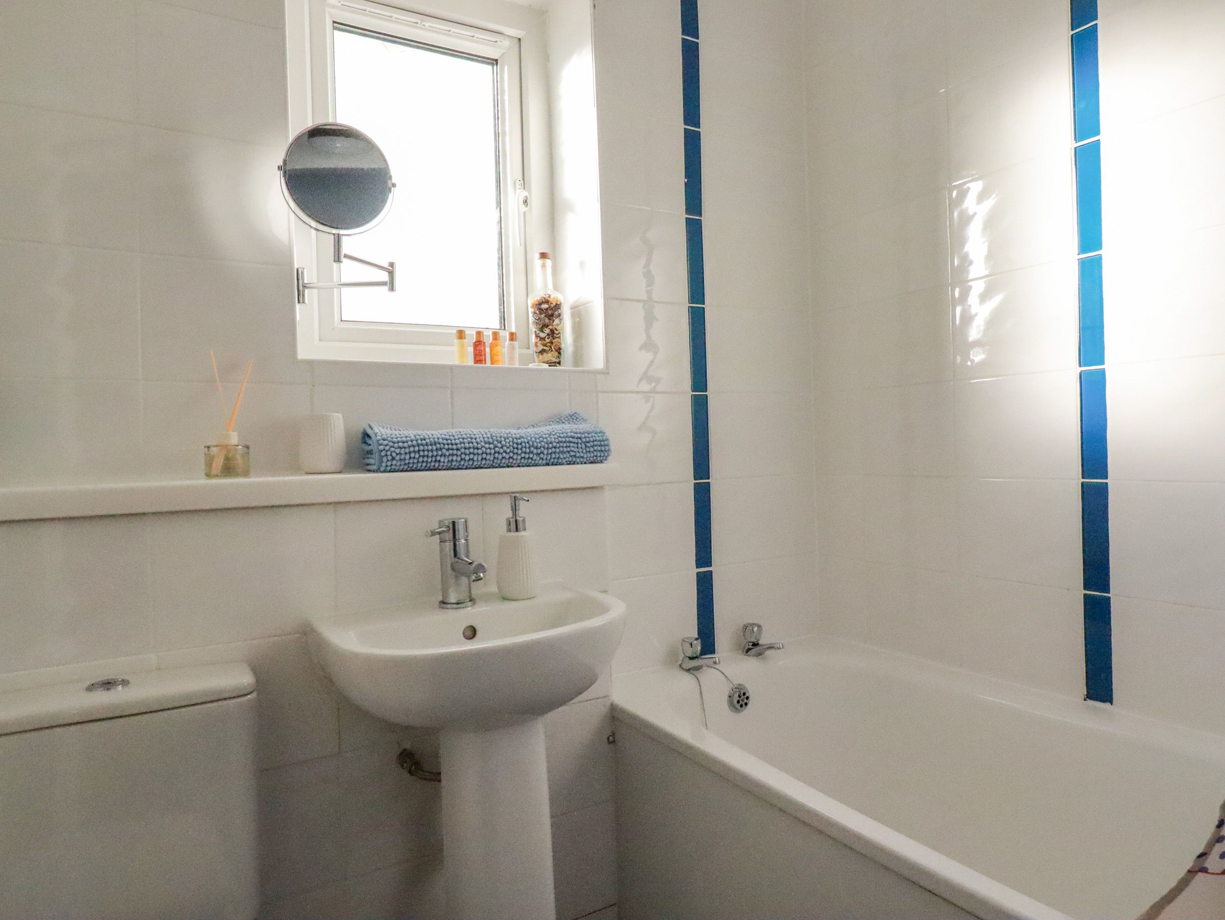 Amenities Electric central heating. Electric oven and hob, microwave, fridge/freezer, washing machine, dishwasher. TV, WiFi. Fuel and power inc. in rent. Bed linen and towels inc. in rent. Travel cot and highchair available on request. Ample roadside parking. Enclosed rear patio with furniture. Two well-behaved dogs welcome. Sorry, no smoking. Shop 0.4 miles, pub 0.3 miles, beach 0.2 miles. Note: There is a communal children's play area on the green opposite the property