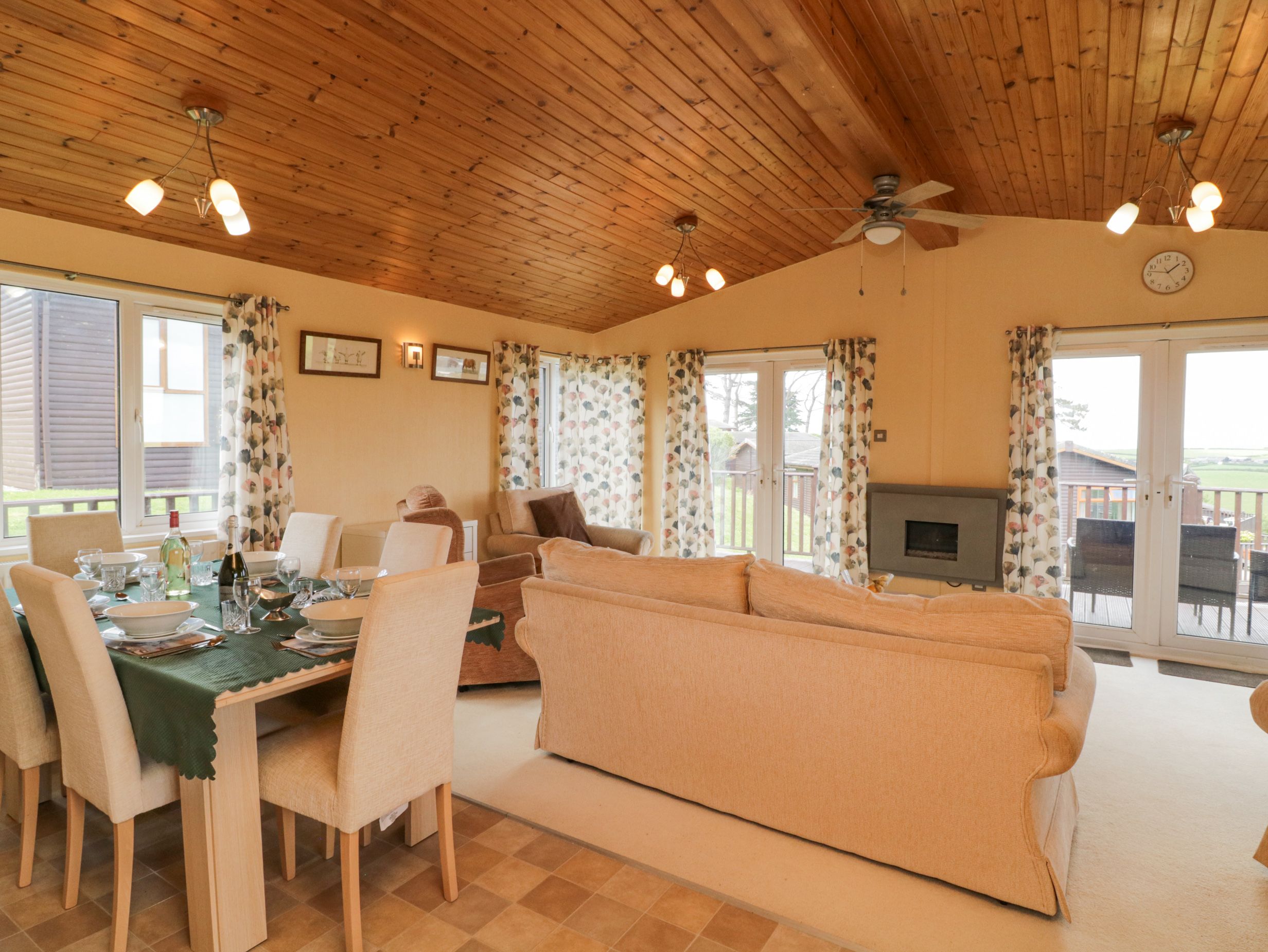 Amenities Gas central heating. Electric oven, ceramic hob, microwave, fridge/freezer, washing machine, dishwasher, kettle, toaster. Smart TV, DVD plyer, WiFi, selection of books and games. Fuel and power inc. in rent. Bed linen and towels inc. in rent. Off-road parking for one car - need to register numberplate via email prior to arrival; pay and display for any additional vehicles. Large wraparound decking with furniture. Sorry, no pets and no smoking. Shop 1.4 miles, pub 0.1 miles (on-site), beach 0.5 miles. Note: The chalet area is pedestrianised, the car park is located 100 yards away. Note: Car park at the top of the site with sloping path down to Lodge 16 so not suitable for people with limited mobility. Note: On site pub and restaurant with great Sunday Carvery, indoor heated pool. (The pool needs to be booked with receptions and swim time and numbers may be restricted for safety reasons). Evening entertainment often provided in peak periods.