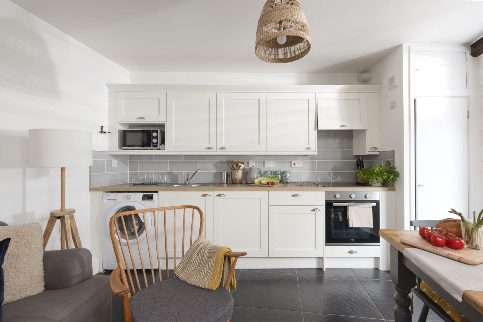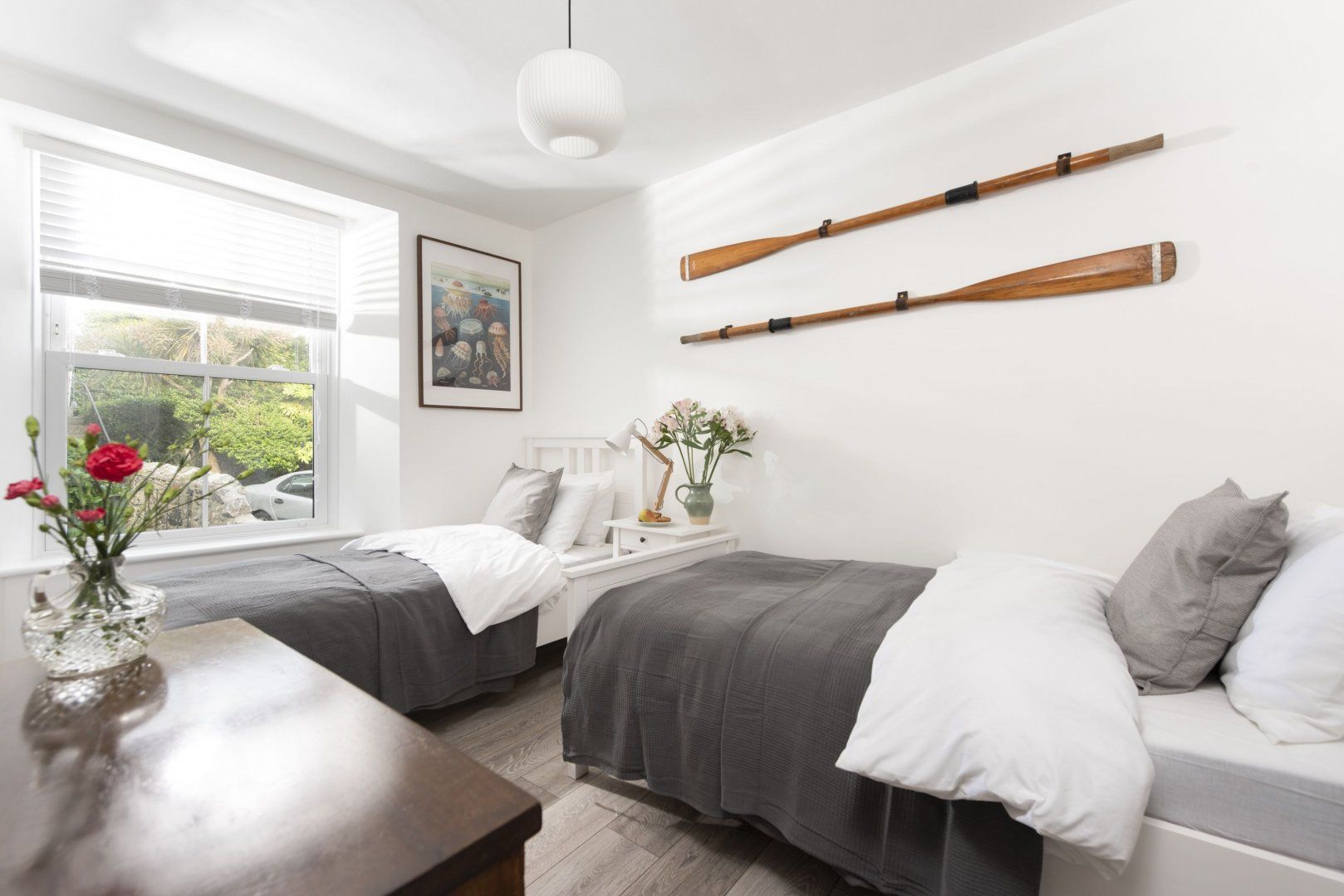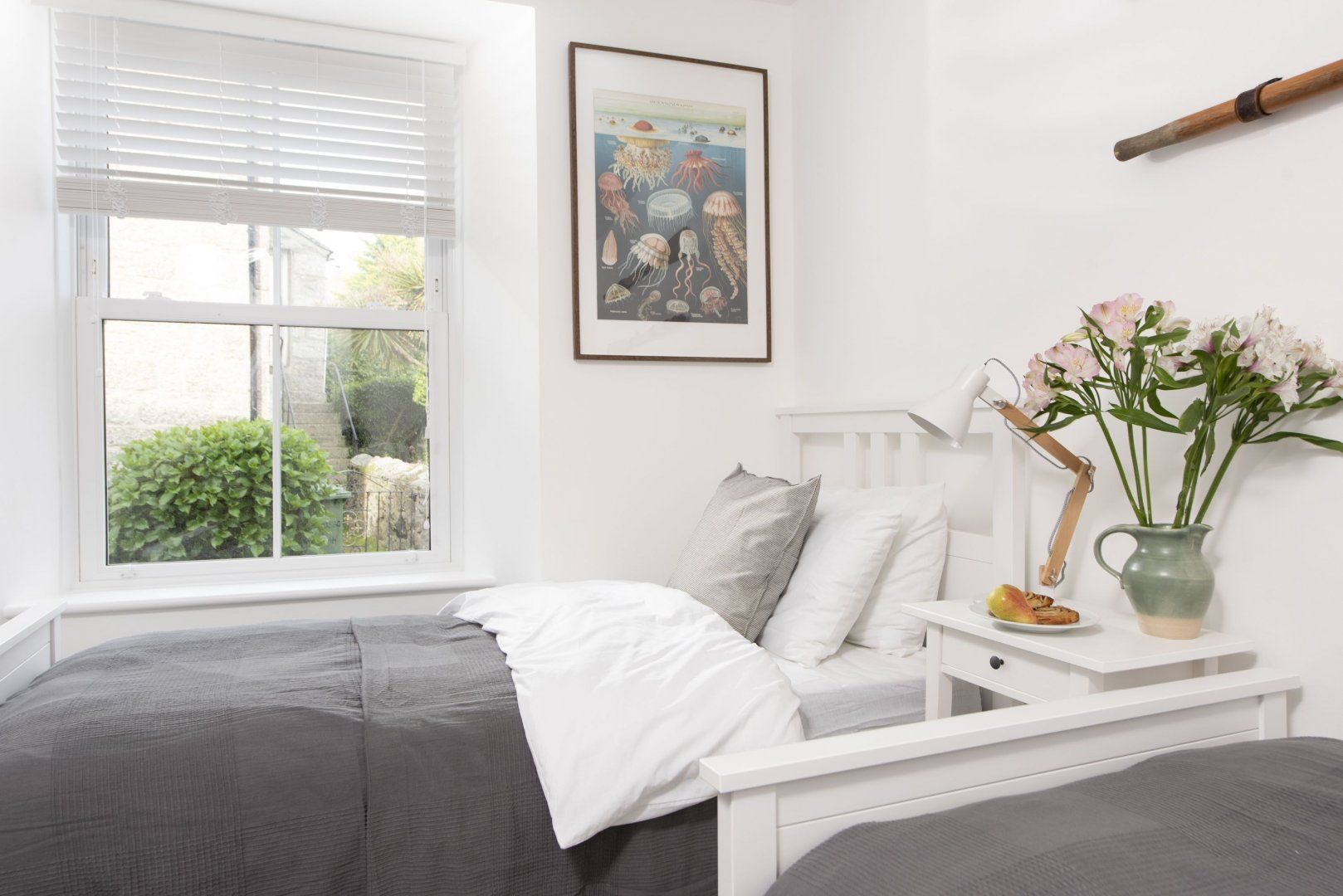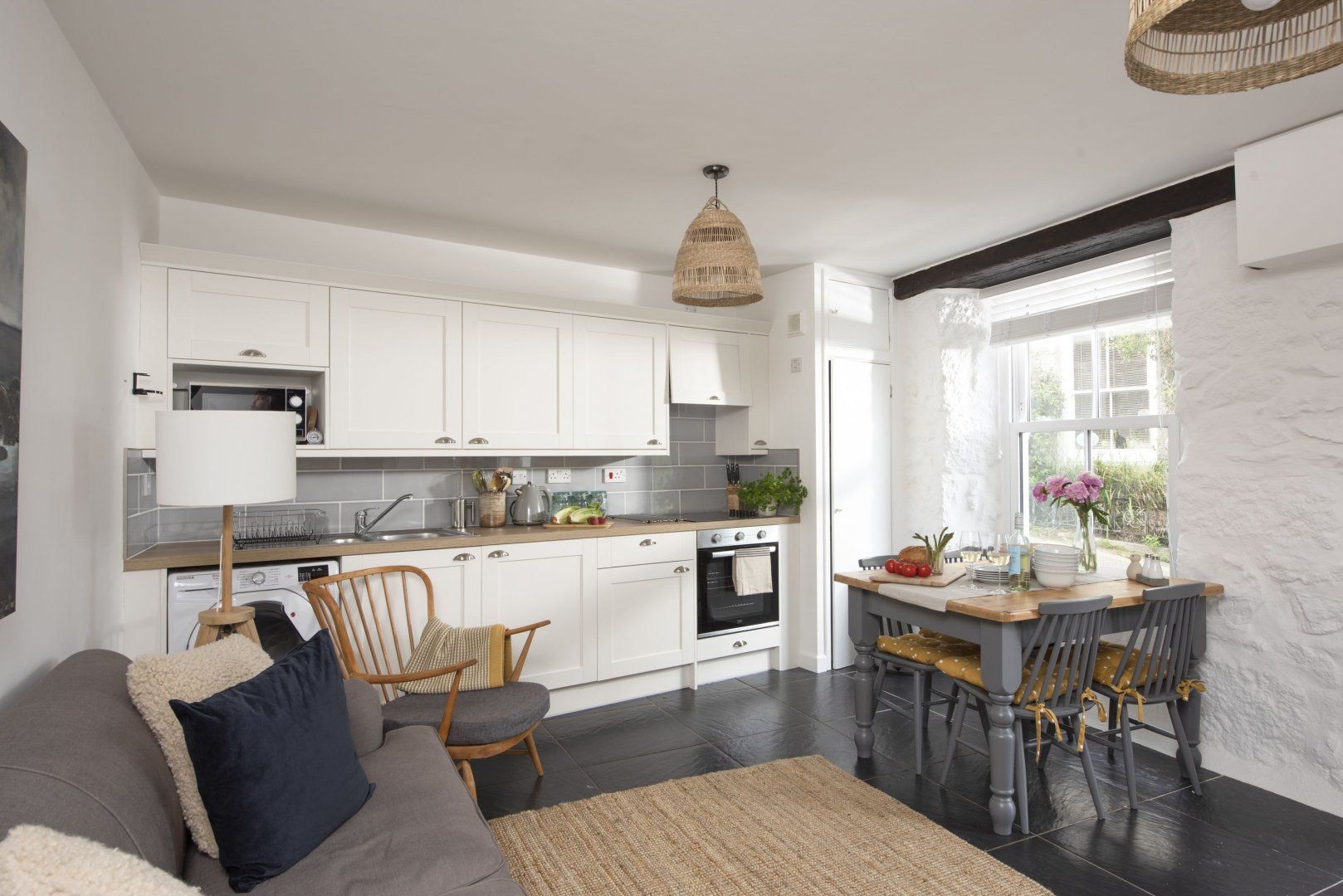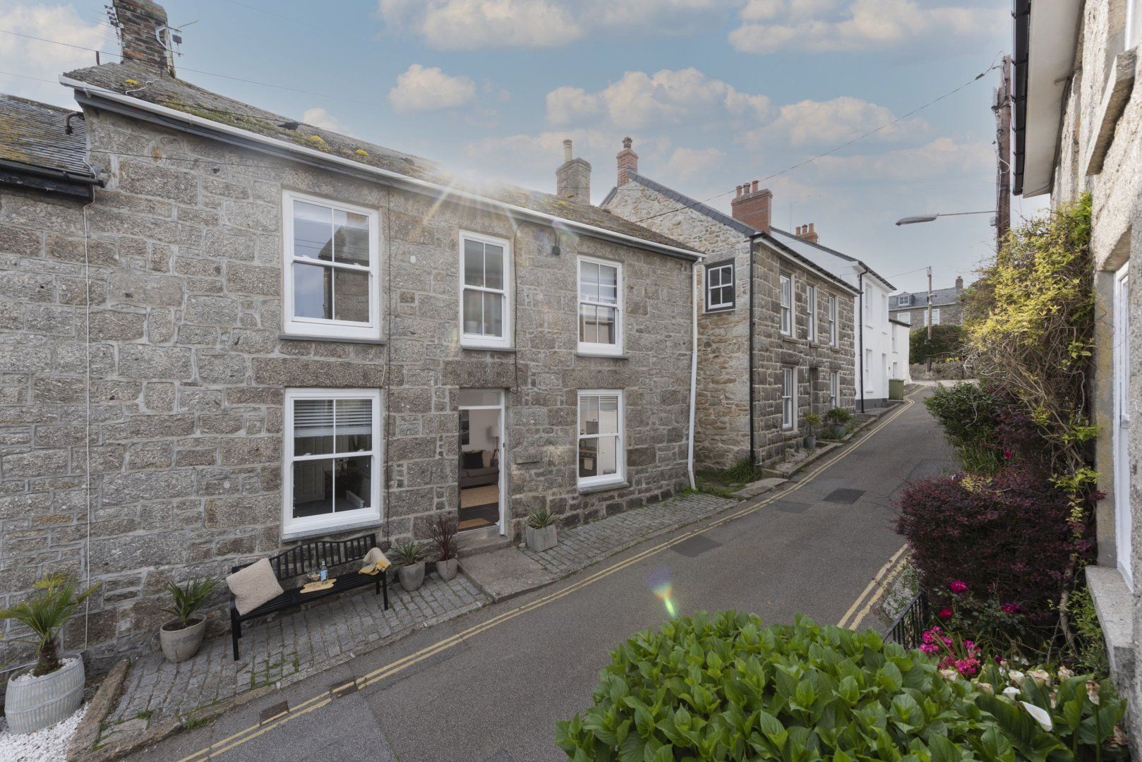 Midway along a quaint narrow road set back from the bustling Mousehole Harbour, this Cornish cottage is a quaint and stylishly formed home-from-home. While tastefully modern with a fresh neutral colour palette and gentle nods to the town’s nautical history, the rustic origins have been retained. In the mornings, find the comfiest spot on the deep linen sofa and settle in with the papers and a cup of tea. Cooking in the kitchen is a laid-back affair with everything you need to whip up humble lunches or to prepare glasses of Pimm’s, sipped on the bench at the front. Wander out for pasties by the waterside—less than five minutes by foot—and wind through the village to gift shops and tea rooms. Take the twenty-minute drive to Marazion Beach, where the glittering Mount’s Bay gives the Aegean a run for its money. After a bracing dip, come home to de-sand in the double shower and settle in with a cider and a fish supper, looking forward to your weary head hitting the pillow of your luxurious king-size bed.