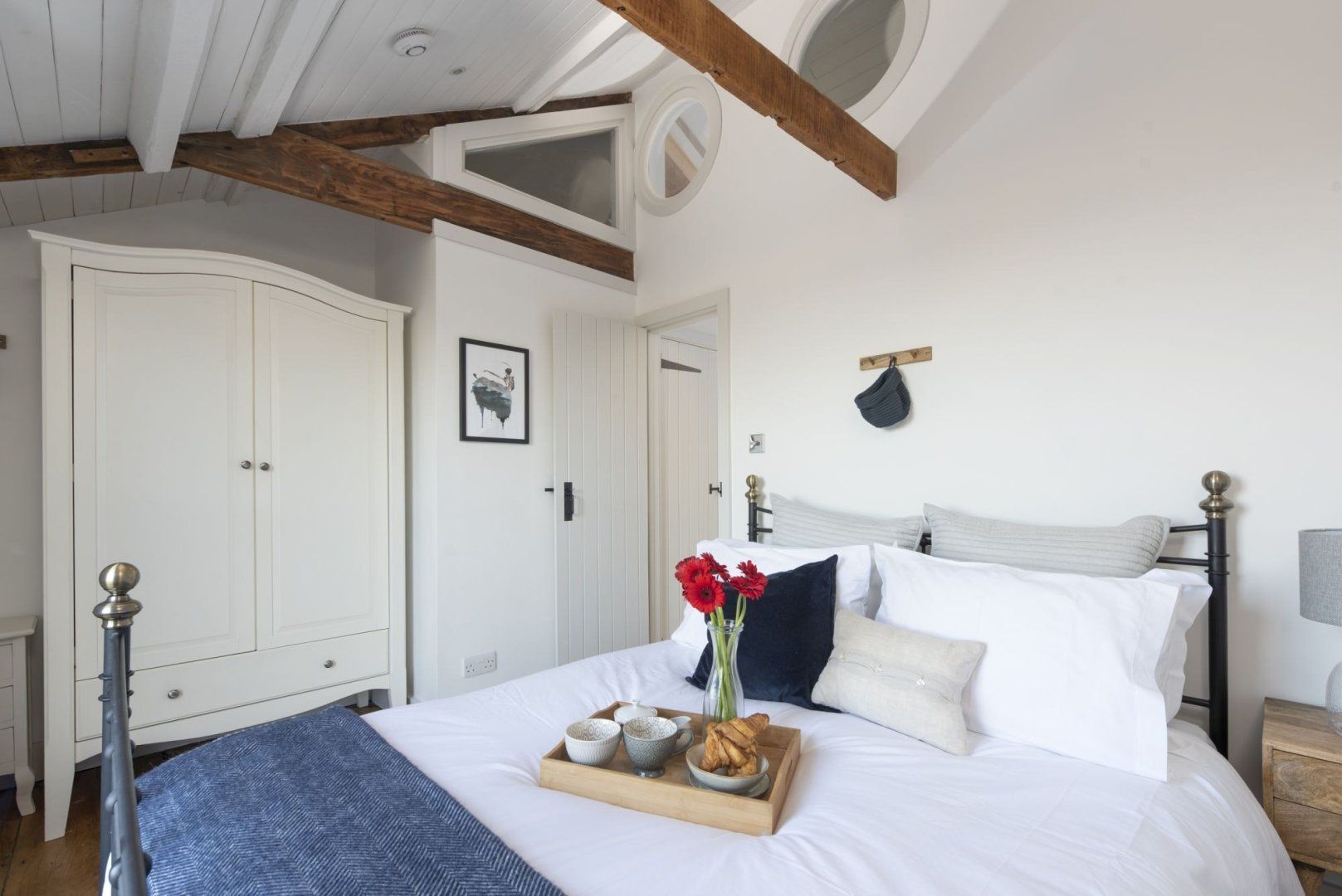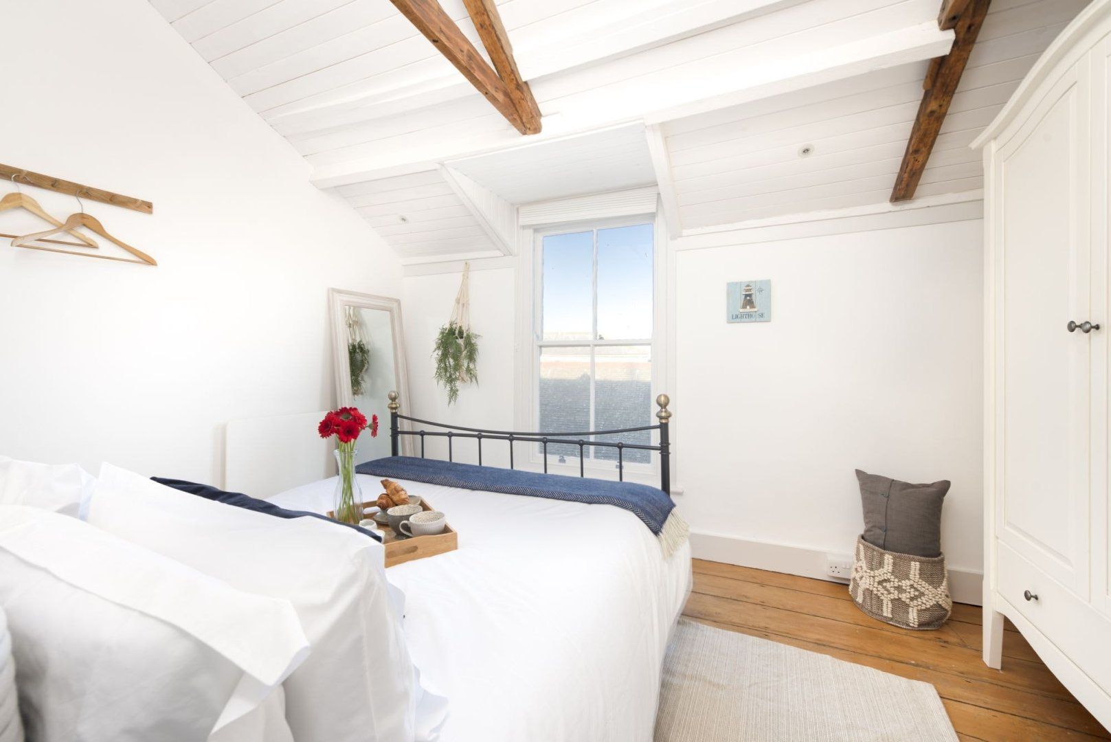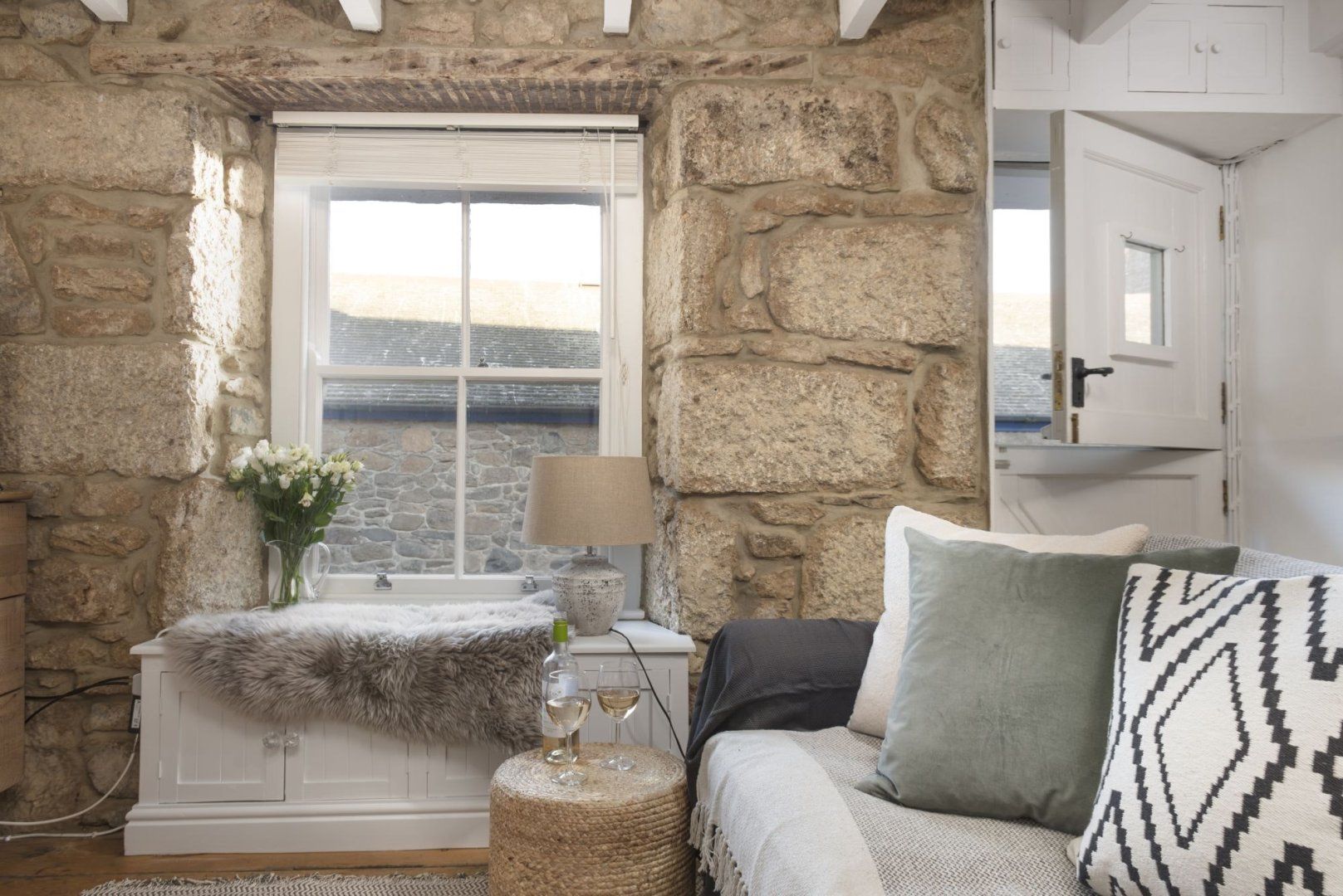 A short walk from the pretty harbour, this home couldn't be more typical of Mousehole if it tried. Once declared 'the loveliest village in England' by Dylan Thomas, 'Mowzul' is an ever-popular place to visit with narrow streets lined with historic cottages. Set over three floors, this former fisherman's loft is Grade II listed and has just the right balance of character features and modern, coastal-inspired styling. On the ground floor, a modern, eat-in kitchen provides everything you'll need for cooking at home, while the comfortable living room upstairs has the home's main entrance, an electric fire and a charming window seat. The top floor bedrooms are pretty special and we particularly love the vaulted ceilings and clever internal porthole windows. From the master bedroom, you can even see across to St Clement's Isle and beyond – what could be better? Stroll to the nearby, shops, cafes and restaurants or drive to Lamorna Cove (ten minutes) or Penzance (fifteen minutes).