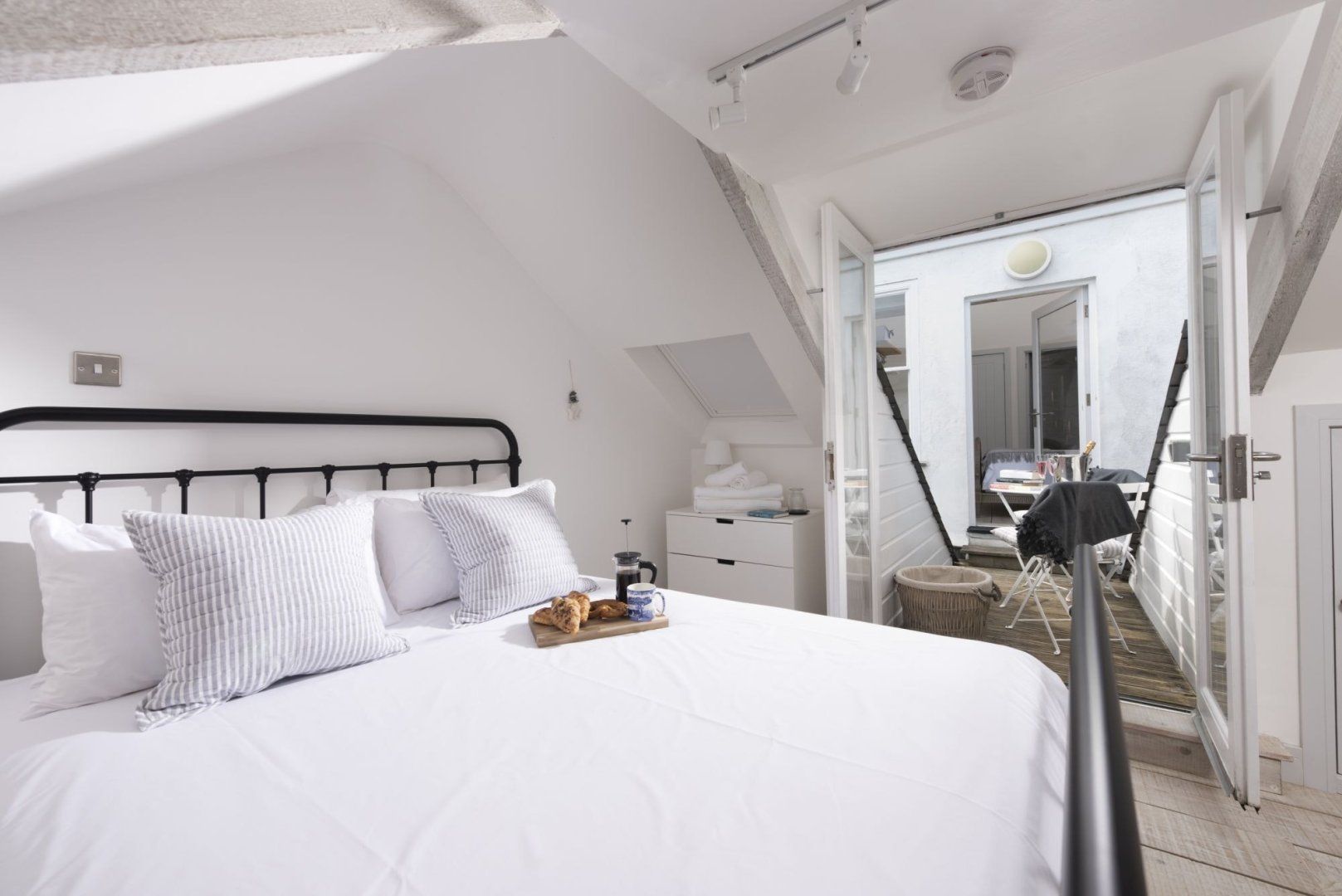 Discover the quaint fishing village of Mousehole with a stay at this traditional Cornish home. Though it's been updated with contemporary furnishings and amenities, you can easily discern the home's history with its old stone walls, wood-burning stove, and the exposed wooden trusses that adorn the bedroom's ceilings. An outdoor balcony on the roof connects to two of the bedrooms, making it the perfect spot for a morning breakfast or cup of tea. We love the living area’s enormous bay window that looks onto the sea – a view that goes hand in hand with a bottle of wine in front of the fire or a good book. Mousehole offers plenty of options for eateries, including traditional pubs and tearooms, but on nights when you just fancy a home-cooked meal, the kitchen is fully equipped. Dine at the rustic wooden table, then head out for an evening walk along the harbour wall and watch the waves crash. Tomorrow you can walk the Coastal Path to the Tater Du Lighthouse, or take a scenic drive to the nearby towns of Newlyn, St Michael's Mount or charming St Ives. If you prefer to stay in Mousehole, wander the shops and enchanting streets of this quiet seaside town before returning it's time to hit the beach again.