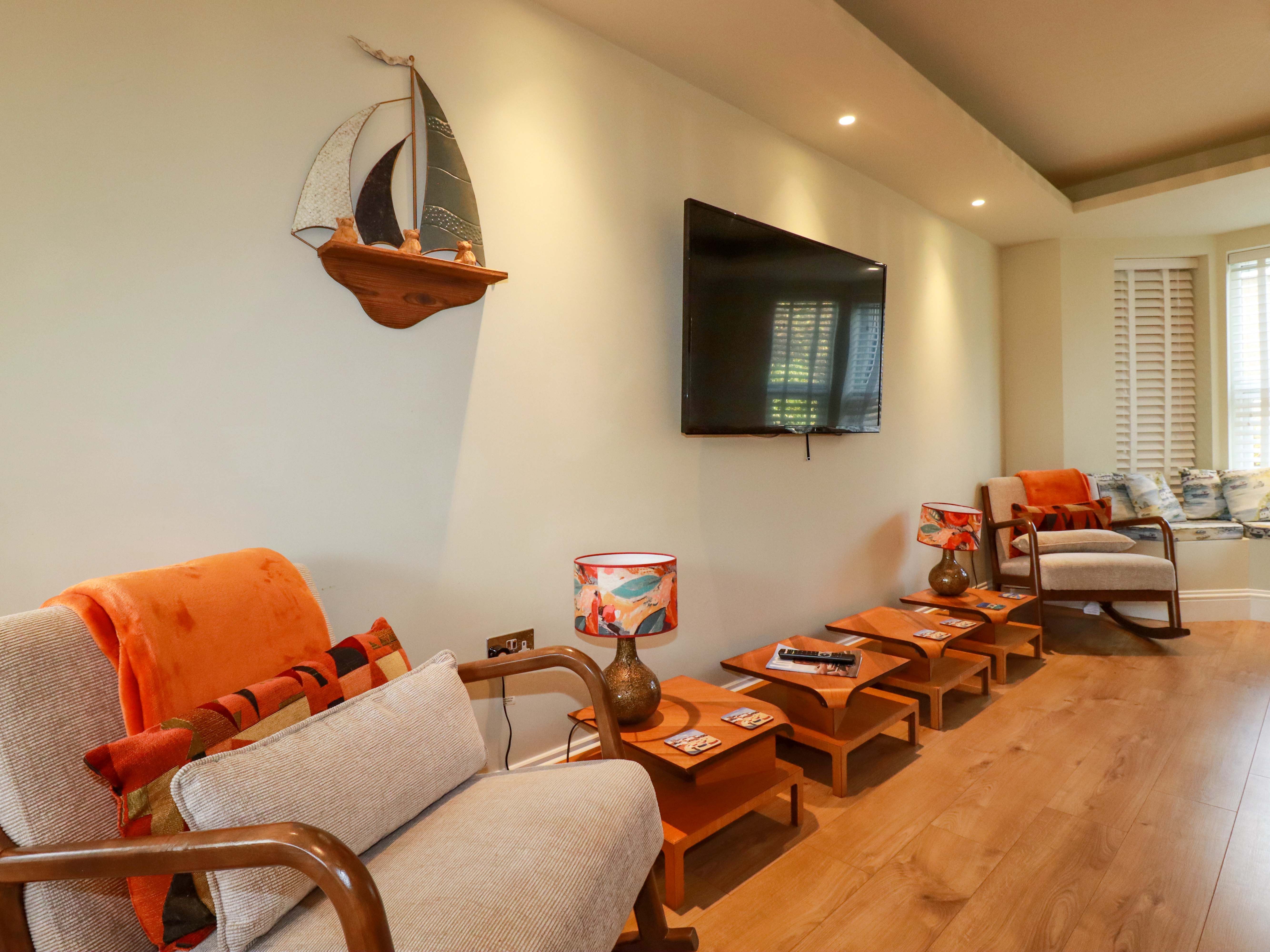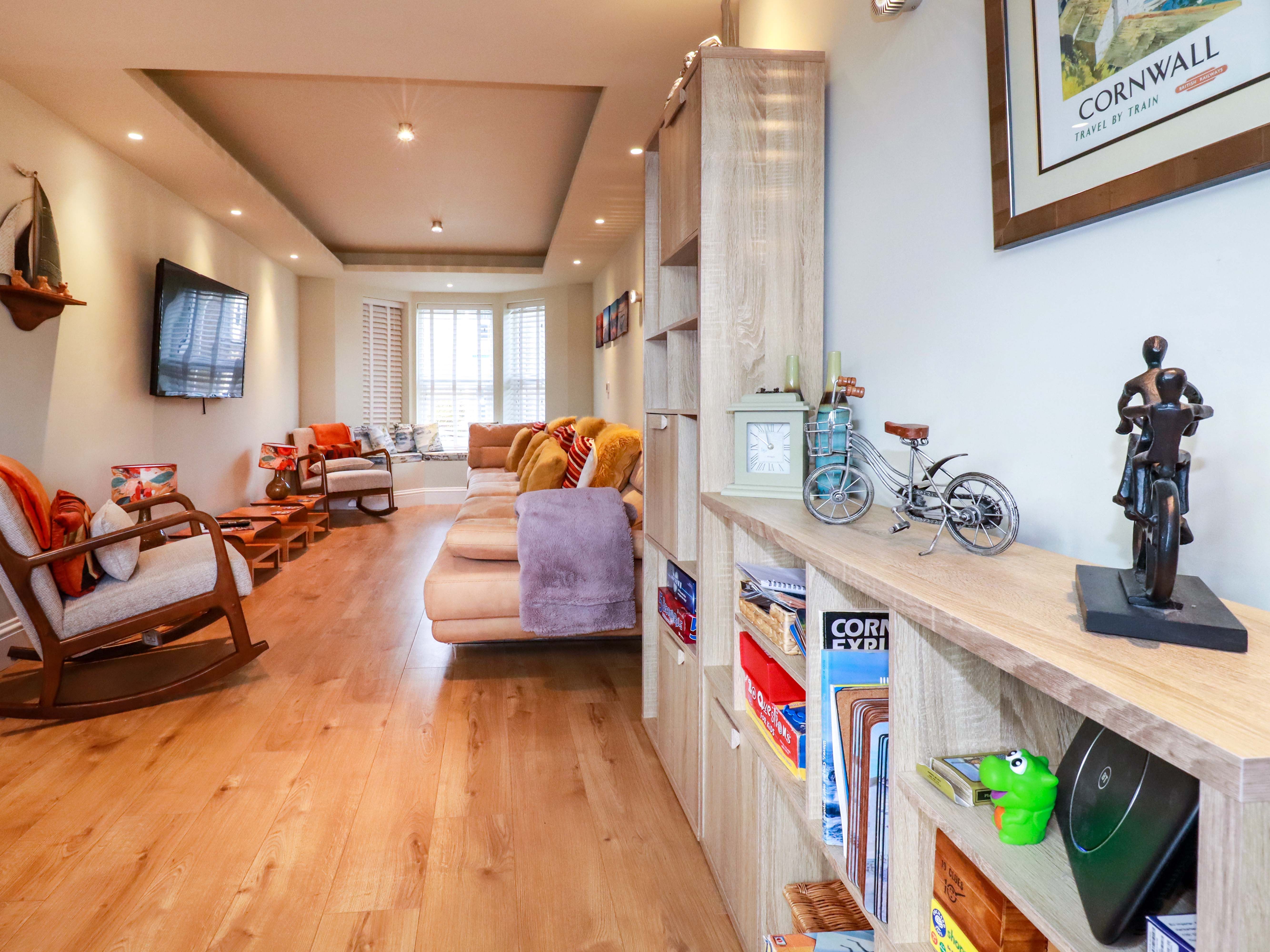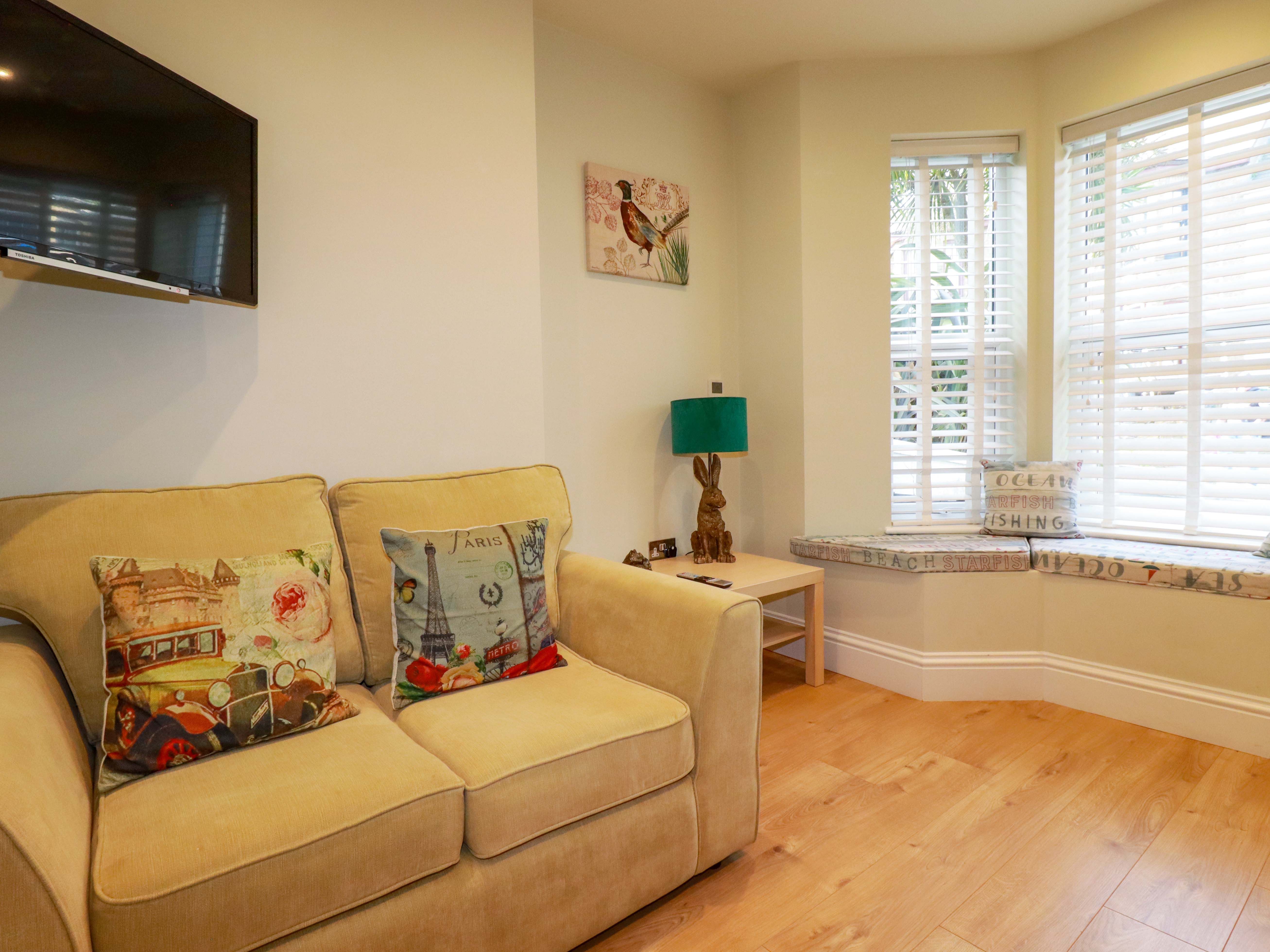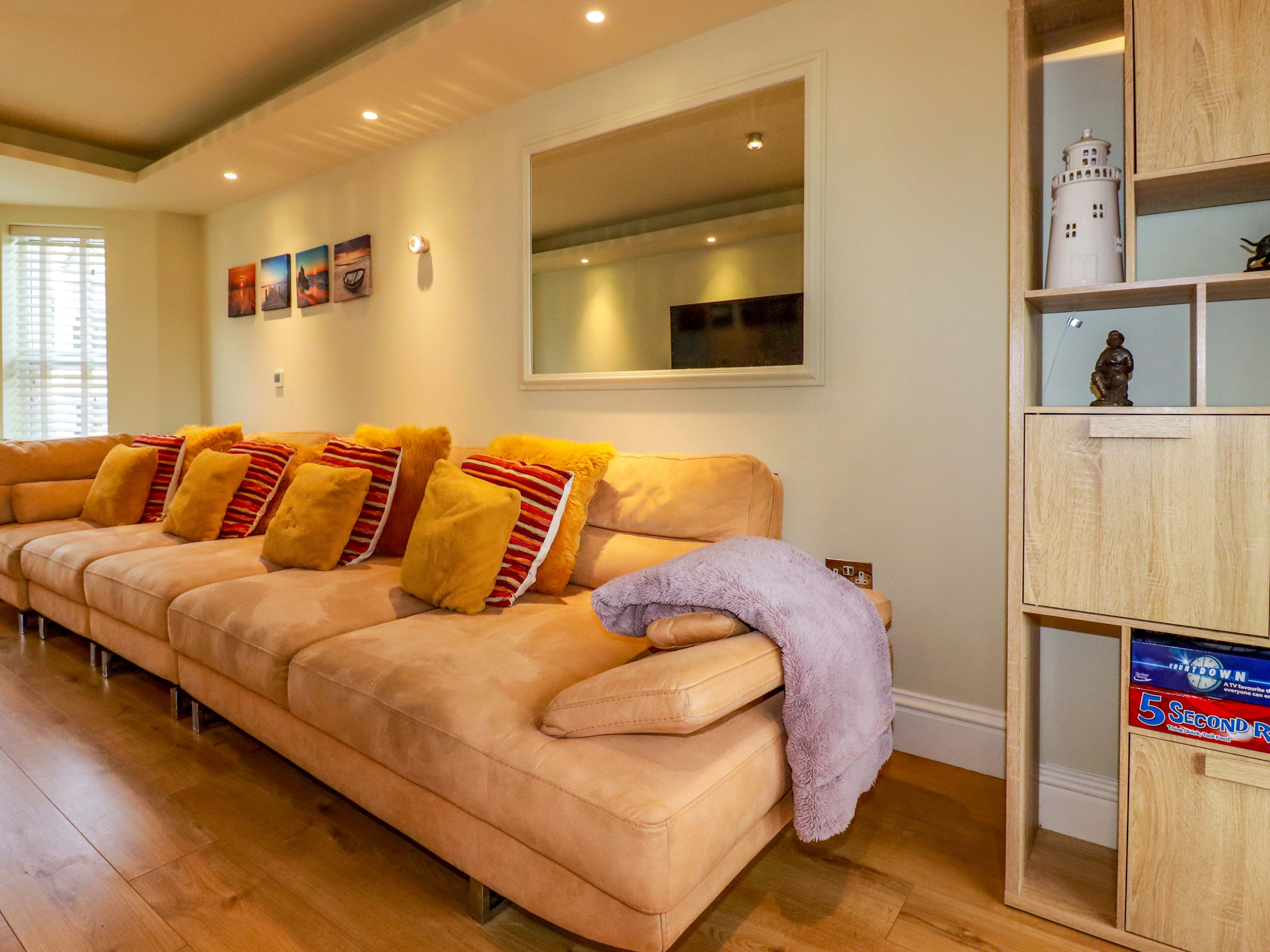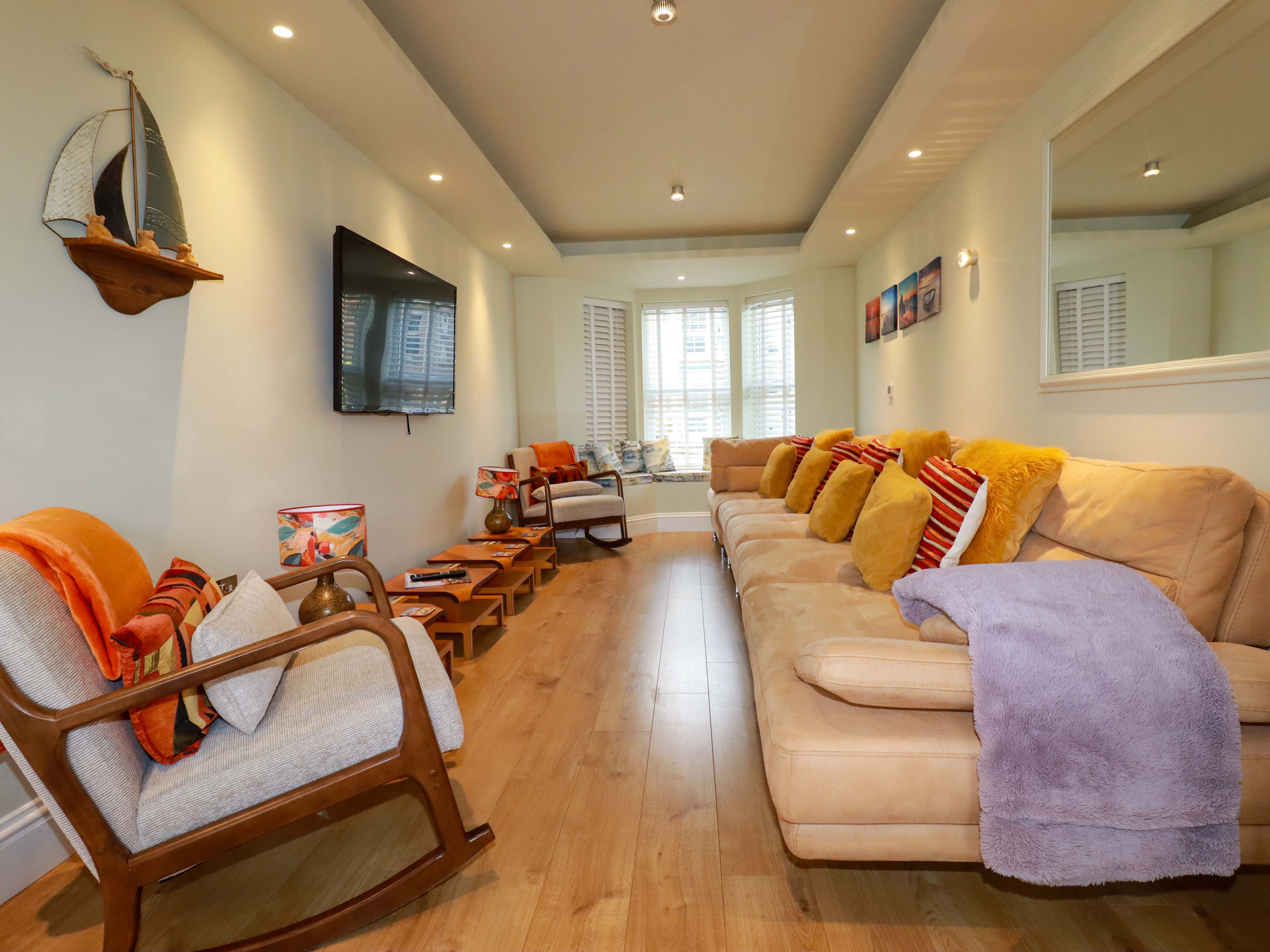 14 St Georges Road consists of an open-plan living space with dining seating for 10, a TV, electric oven, gas hob, microwave, fridge/freezer, dishwasher, washing machine, toaster, kettle, and a separate snug with a TV. The bedrooms consist of two king-size with TVs and en-suite shower rooms, one twin with a TV, one single and one second-floor super-king-size with a TV and freestanding bath, walk-in shower, basin, heated towel rail and WC. There is a separate modern bathroom on the first floor with a bath, hand-held shower, basin, bidet and WC, and a ground-floor cloakroom with a basin and WC. Outside, there is an enclosed rear garden with decking, furniture, and off-road parking for two cars (there is a 1.9m height limit for parking). WiFi, fuel, power, bed linen and towels are all included. Shop 0.4 miles, pub 0.2 miles, beach 0.4 miles. 14 St. Georges Road is the ultimate holiday destination. Note: There is a Good Housekeeping Bond of 550GBP. Please note: 3 night minimum stay.