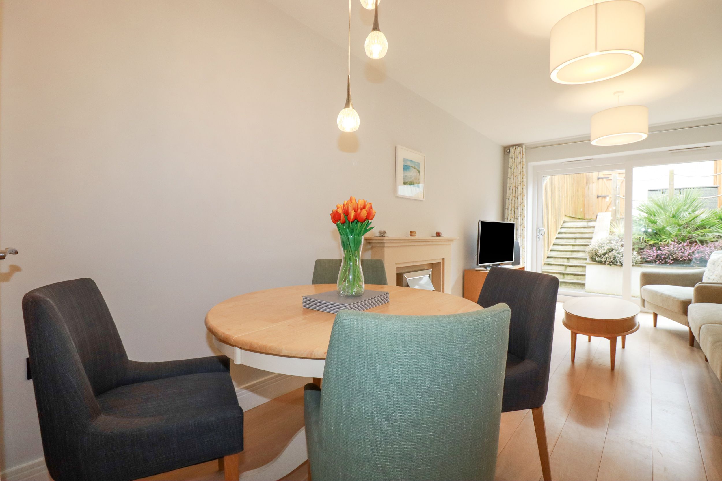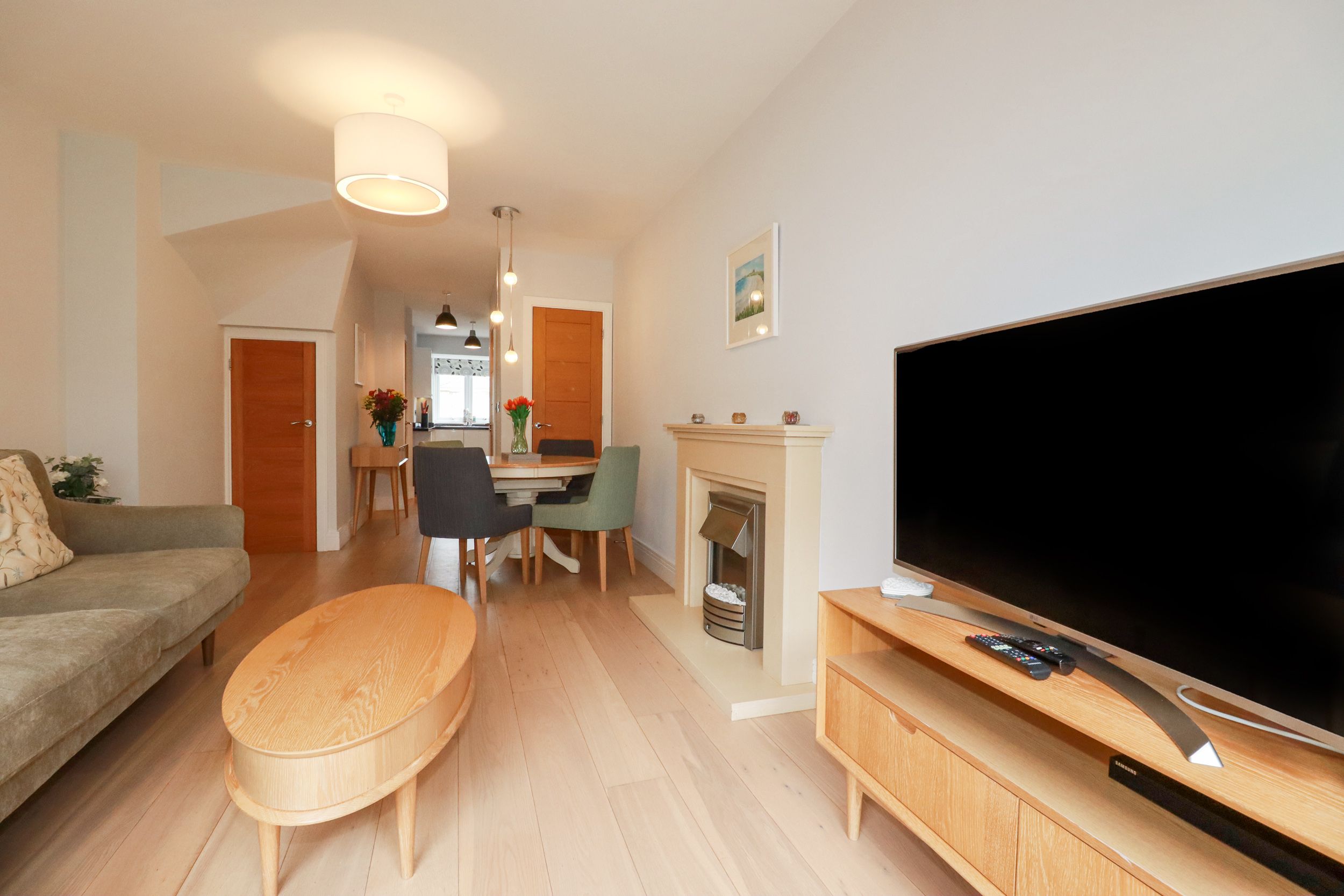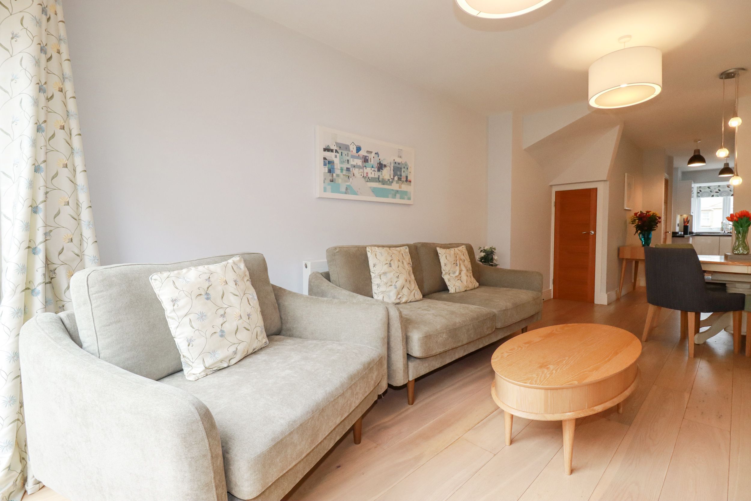 Amenities Central heating. Electric oven and hob, microwave, fridge/freezer, washing machine, tumble dryer, dishwasher, kettle and toaster. Smart TV, Sonos sound system, WiFi. Fuel and power inc. in rent. Bed linen and towels inc. in rent. Driveway parking for 2 cars. Enclosed rear multilevel garden with courtyard, patio and furniture. Sorry, no pets and no smoking. Shop 0.2 miles, pub 0.3 miles, beach 0.3 miles