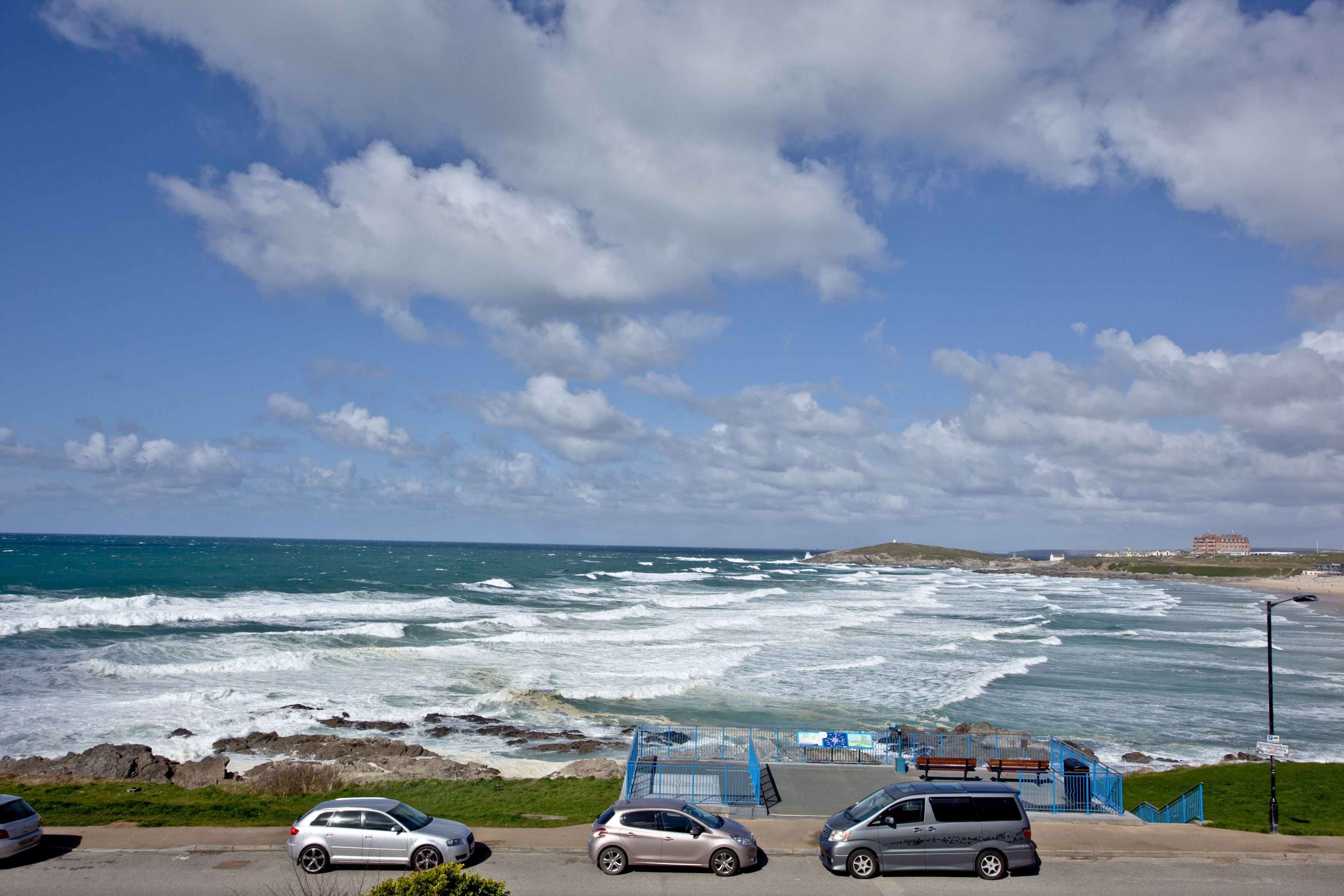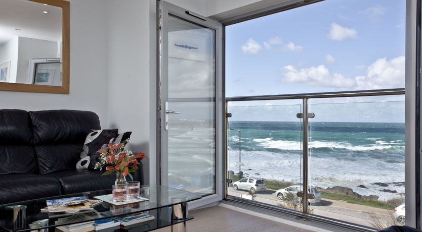 French windows with Juliet balcony and views over Fistral Beach