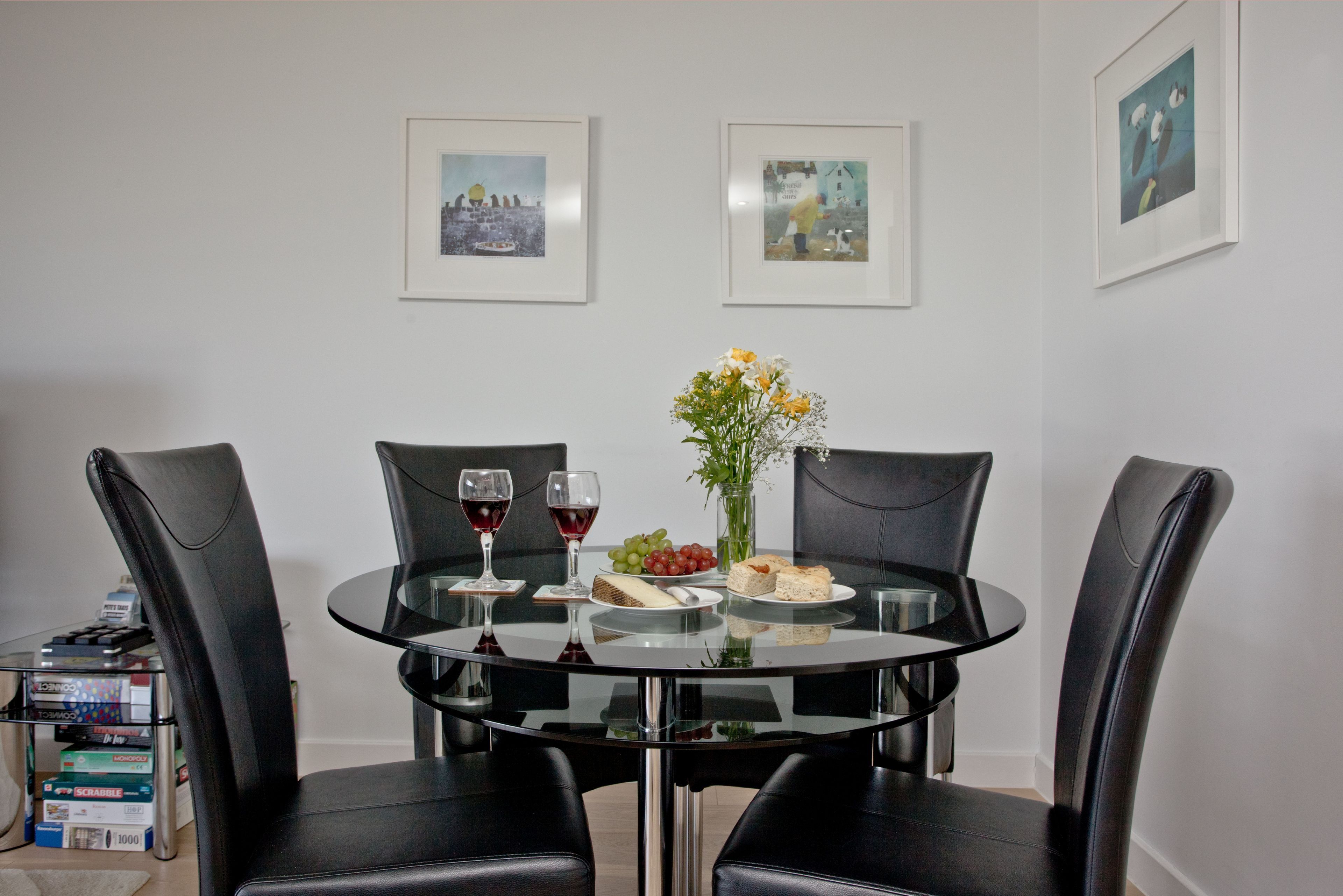 Sofa, two bean bags, coffee table, 49” Flatscreen TV with Freeview, Blu-ray DVD player and surround sound