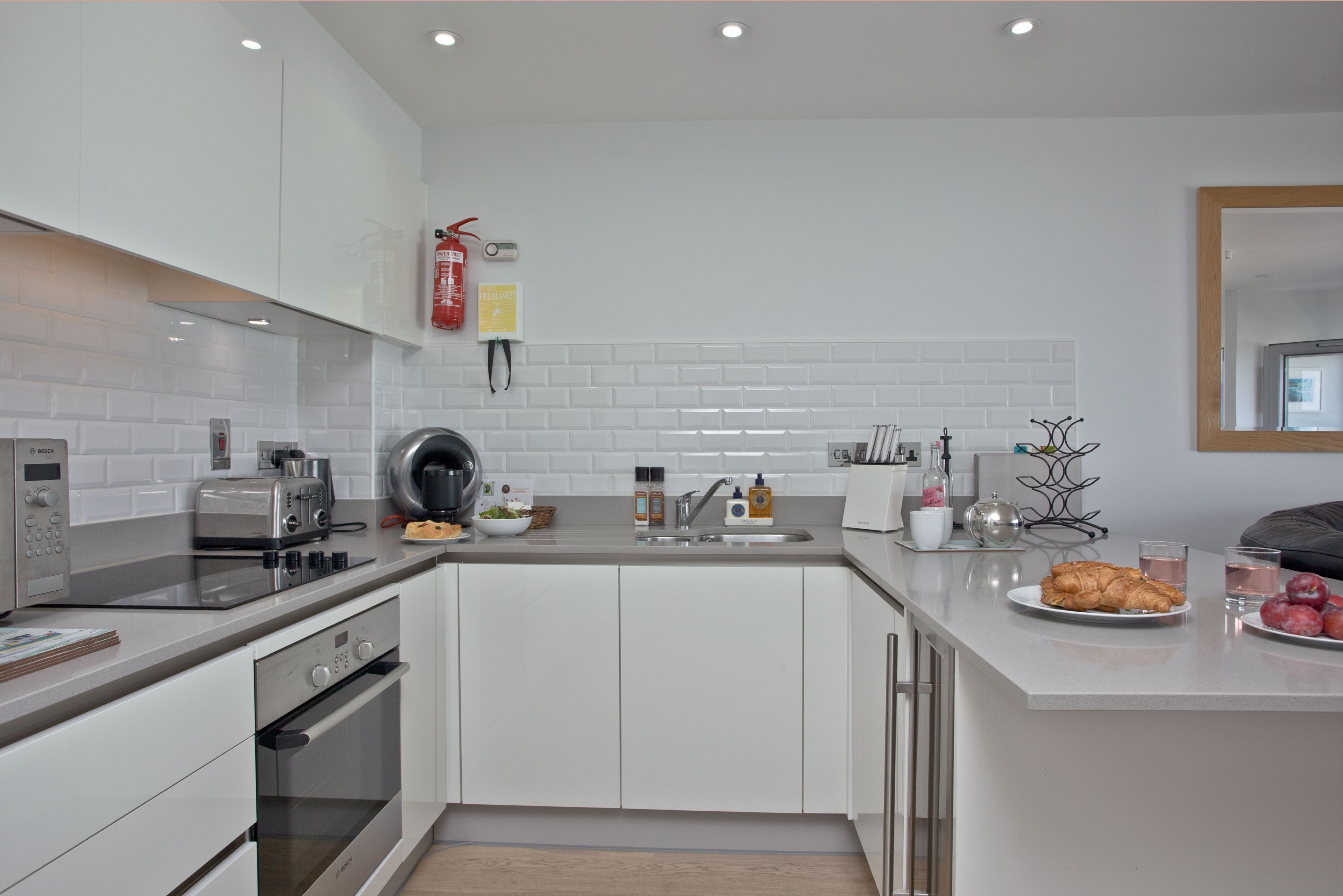 Integrated oven with hob, fridge freezer, dishwasher, microwave and a built-in wine cooler