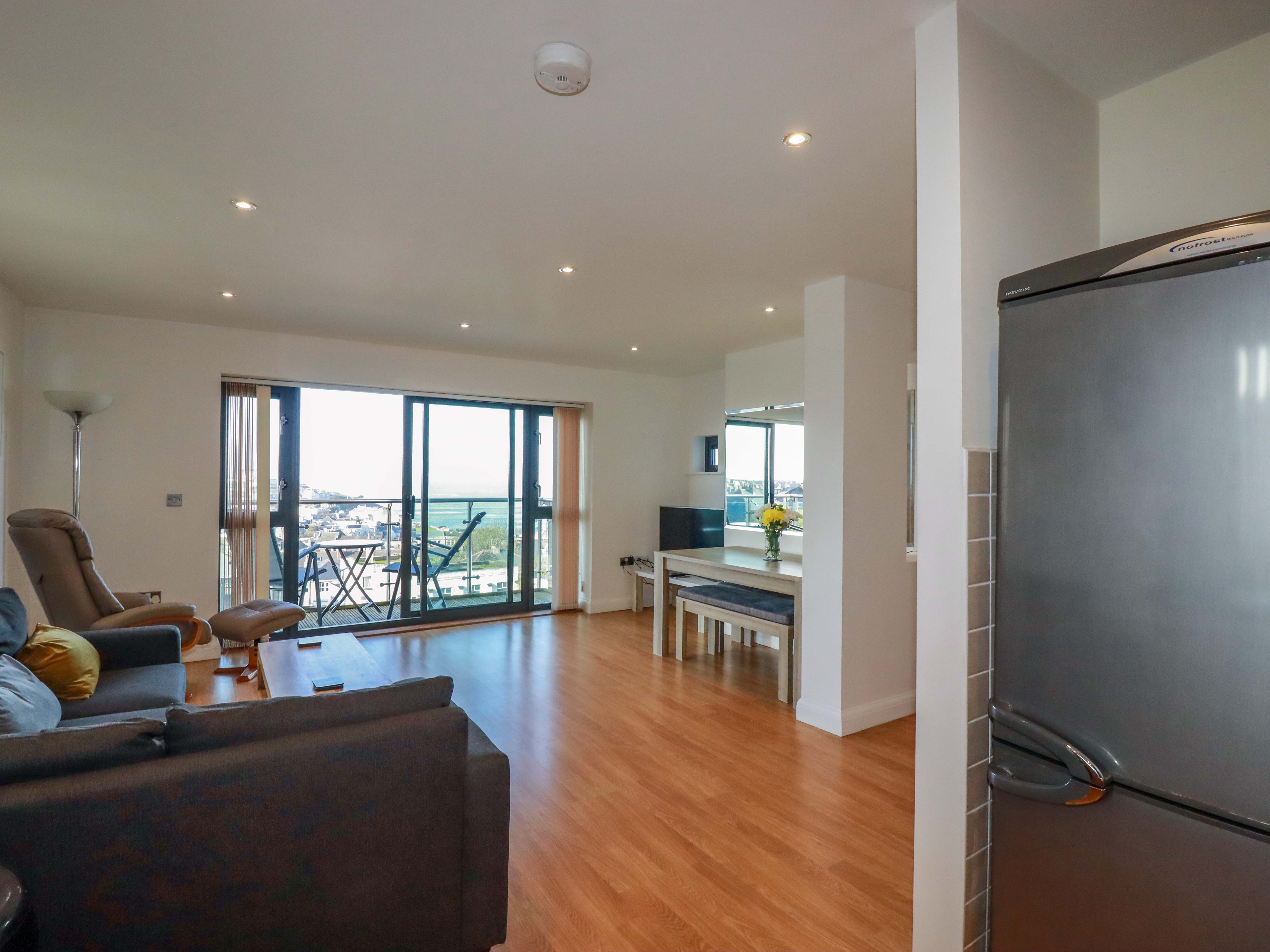 Amenities Central heating. Electric oven, gas hob, microwave, fridge/freezer, washing machine, dishwasher. TV, WiFi. Fuel and power inc. in rent. Bed linen and towels inc. in rent. Private, off-road parking available. Balcony with furniture and sea view. Sorry, no pets and no smoking. Shop 0.4 miles, pub 0.3 miles, beach 0.4 miles