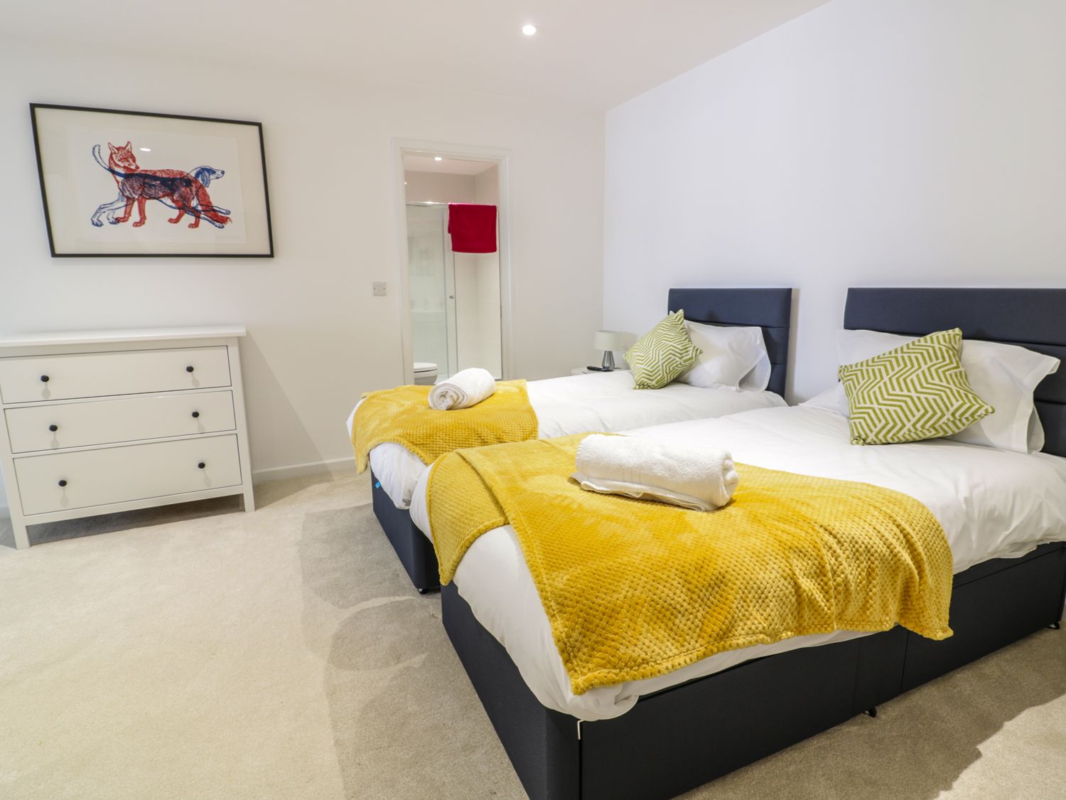 Holiday home Buena Vista is a spacious, ground floor apartment in the centre of Newquay in Cornwall. The apartment can sleep four people in two bedrooms which are made up of a double with an en-suite shower as well as a twin with an en-suite shower. The rest of the apartment is made up of an open plan living area with kitchen, dining and sitting areas. To the outside is a private balcony with furniture and chargeable parking available in two car parks both within a 2 minute walk. Set in a great situation, Buena Vista is wonderful to stay in at any time of the year.