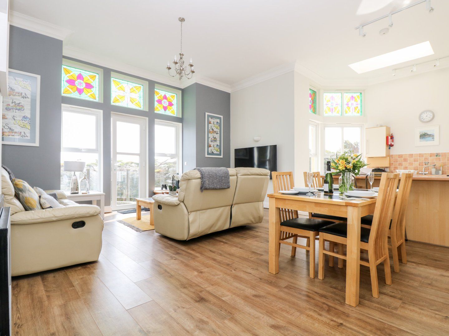 Holiday home By The Sea is a ground floor apartment within a large Victorian House overlooking Towan Beach in Newquay. The apartment sleeps four people in two bedrooms and also has two bathrooms. There is an open plan living space comprising sitting and dining areas and a kitchen. Patio doors lead out to a balcony with furniture and steps lead down to a communal garden. No barbecues (BBQ's) allowed on site. Must be kept on a lead in the communal gardens.Set within secure grounds, access is via security coded electronic gates and each apartment has allocated parking for one car. Magnificently located there are sea views from the living area, patio and gardens making it a great choice for sea lovers!