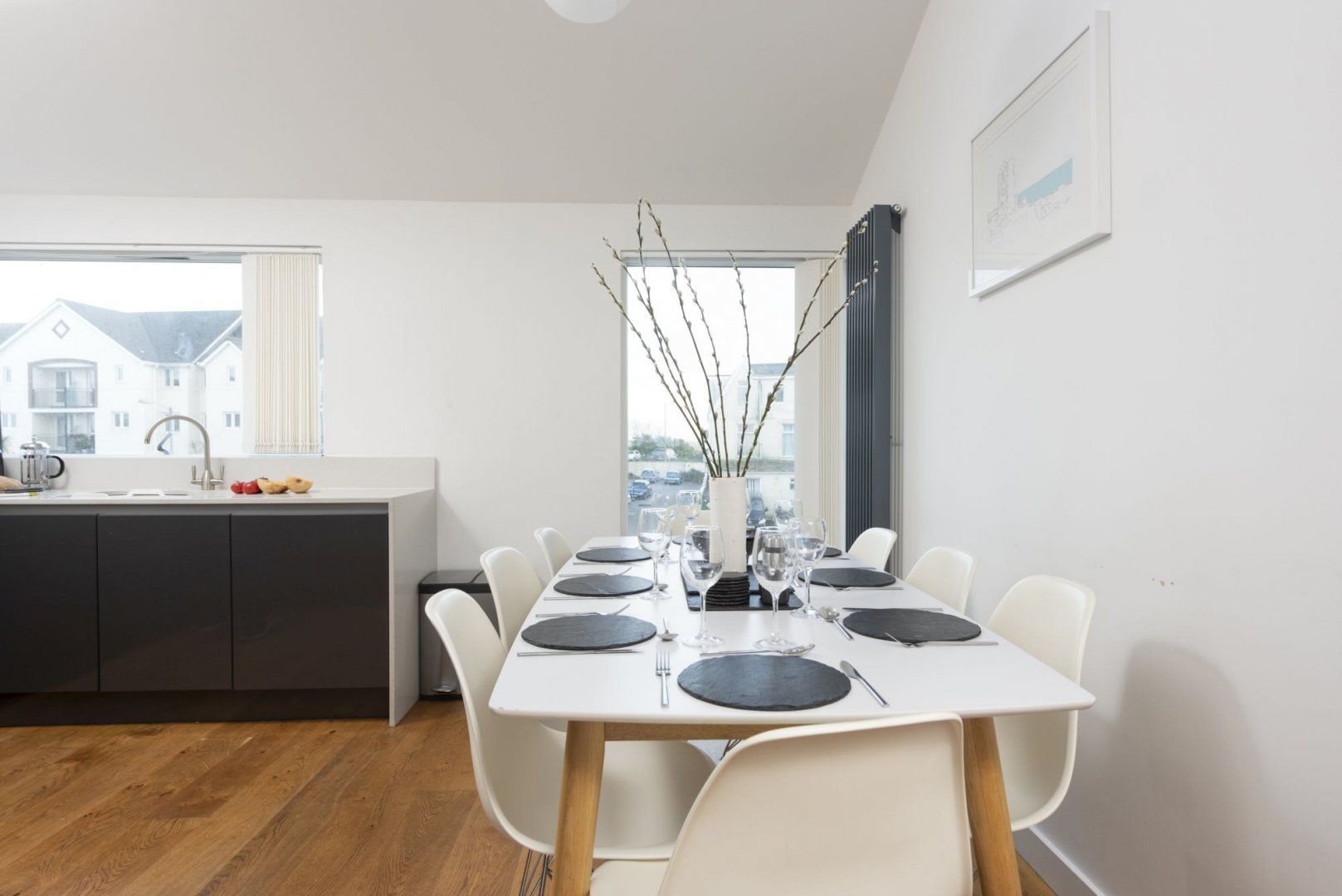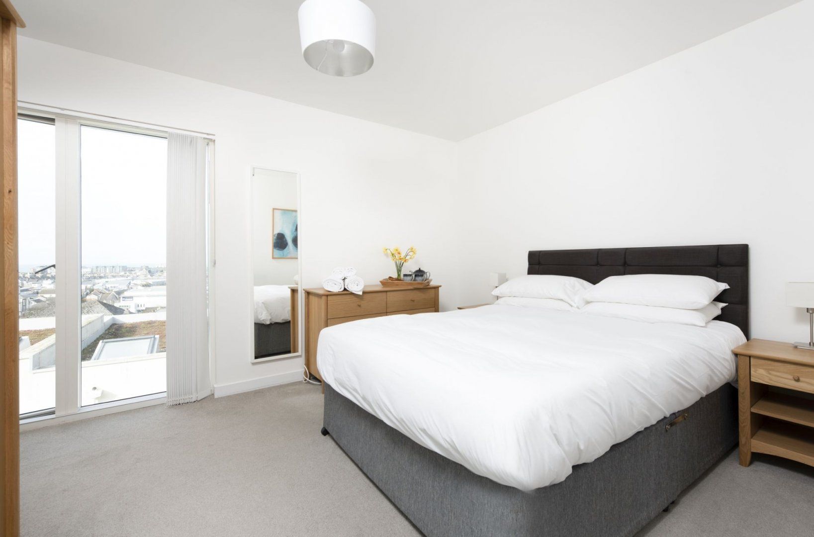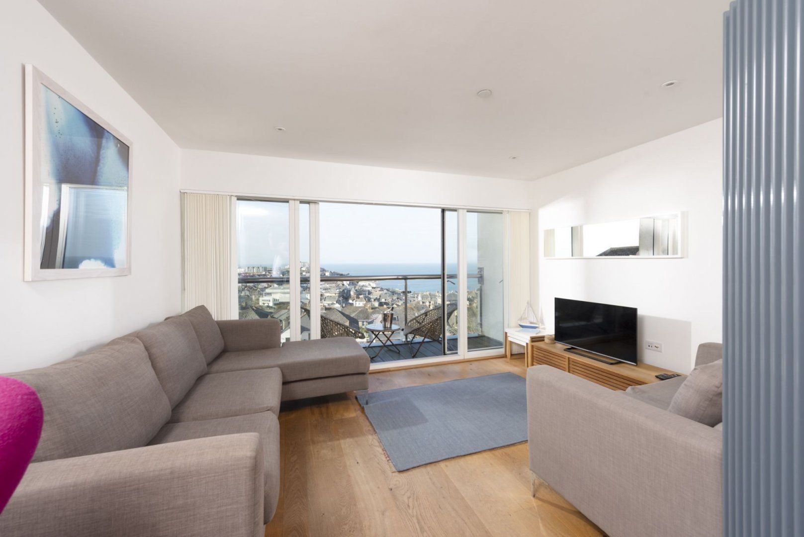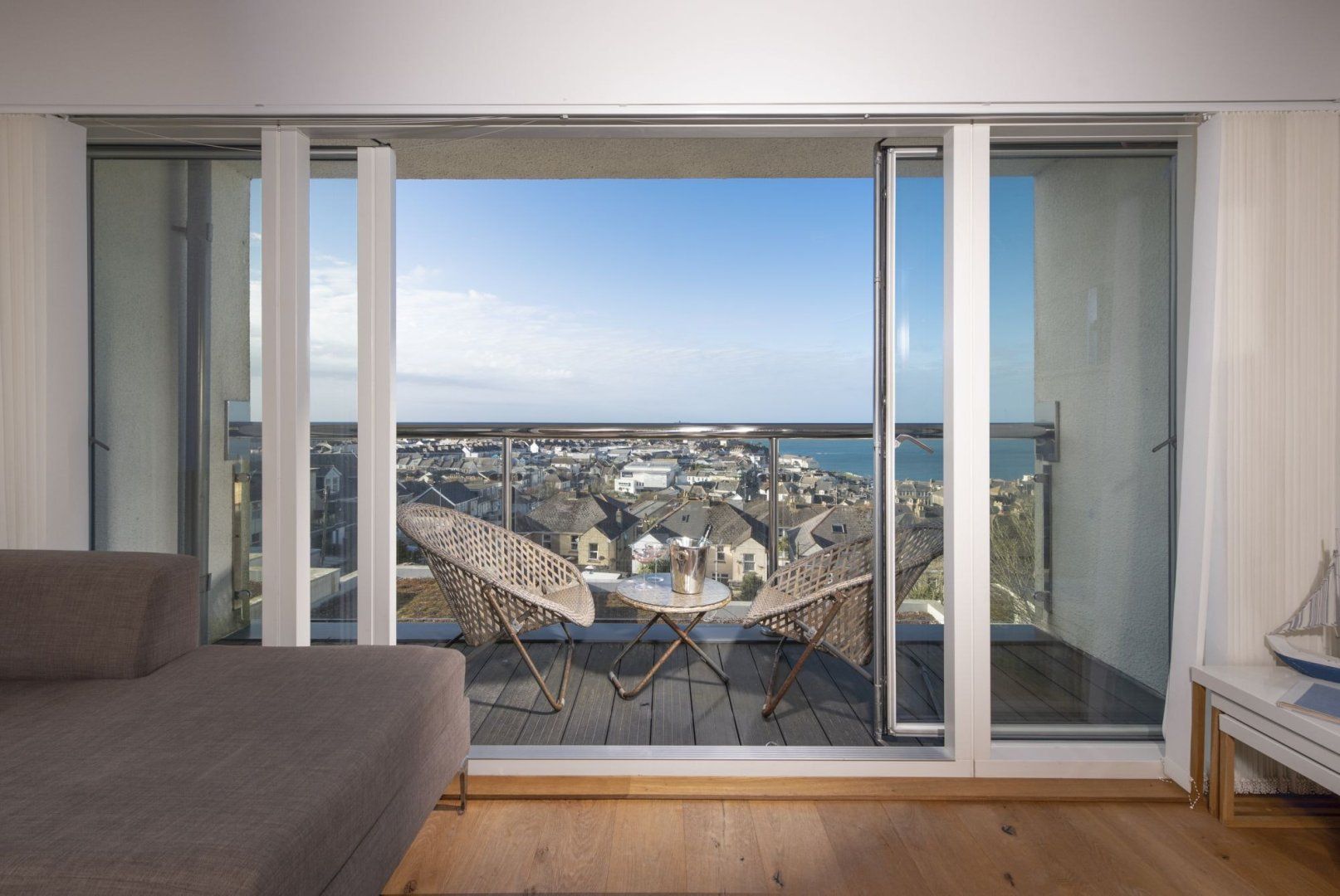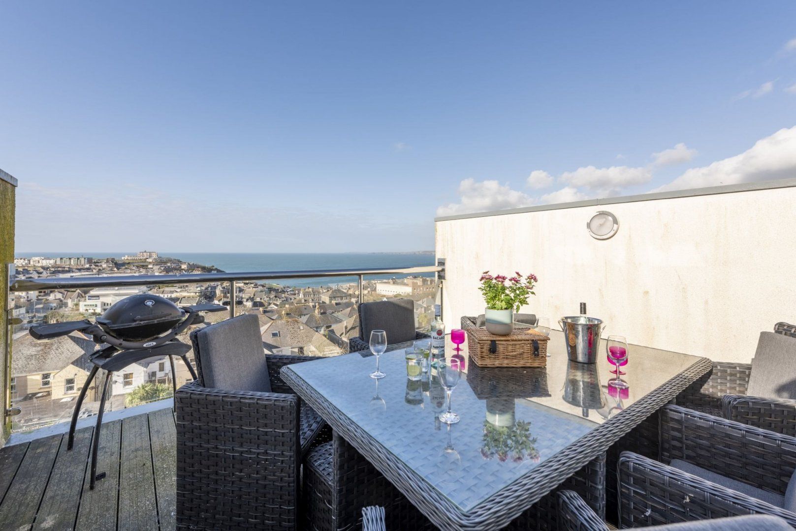 The simple yet stylish design makes this the perfect sanctuary where you can press pause on everyday life and make some memories with your guests. Wake up to the sound of the sea each morning and admire the peaceful views over the bay alongside your morning coffee. The private balcony is the ideal spot to read a good book as you breathe in the fresh air, and there's even a barbeque ready for alfresco feasts – or, head inside to the kitchen to cook up a traditional Sunday roast.