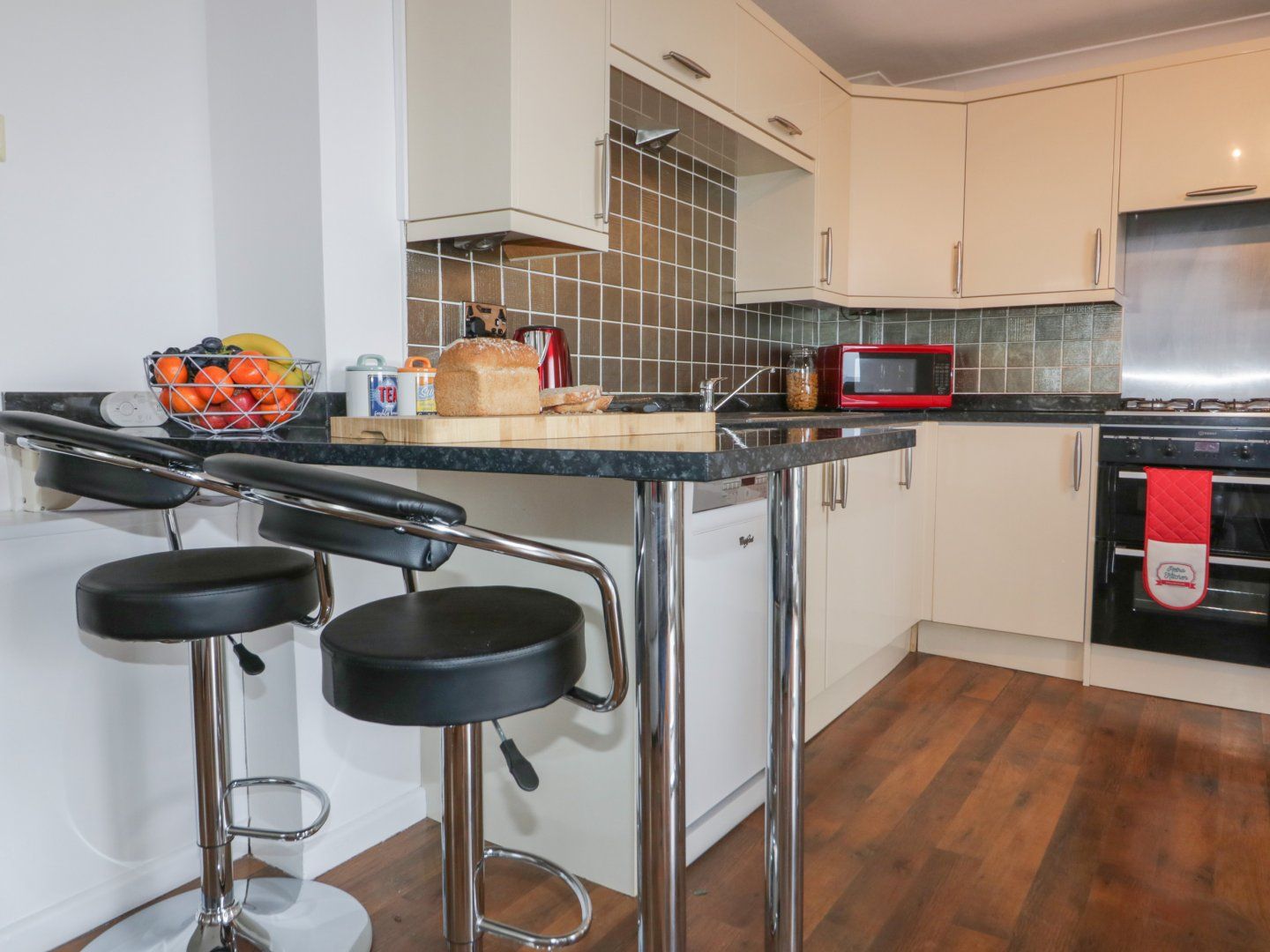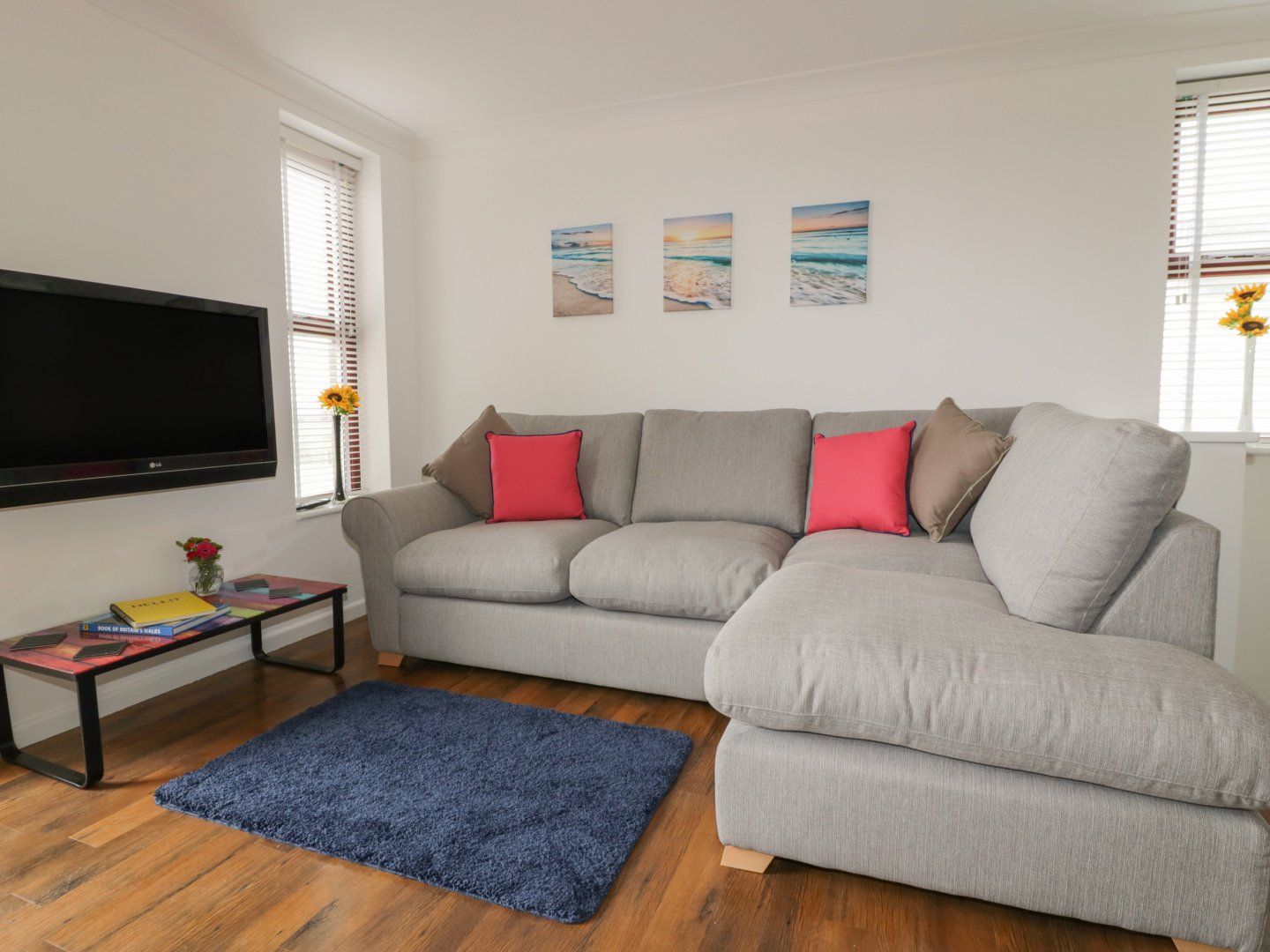 Holiday home Elin Howlyek is a welcoming duplex apartment sitting in Newquay on the coast of Cornwall. There are two bedrooms in the property sleeping four people, made up of a second-floor super-king-size with an en-suite shower room and a twin (zip/link, can be twin double on request), served by a bathroom. The property also houses a first-floor open-plan living space with a kitchen, dining area and sitting area with a decked balcony with furniture. Outside there is also a patio with furniture and off-road parking. Elin Howlyek is a fantastic choice for couples or families seeking a seaside escape to Cornwall.