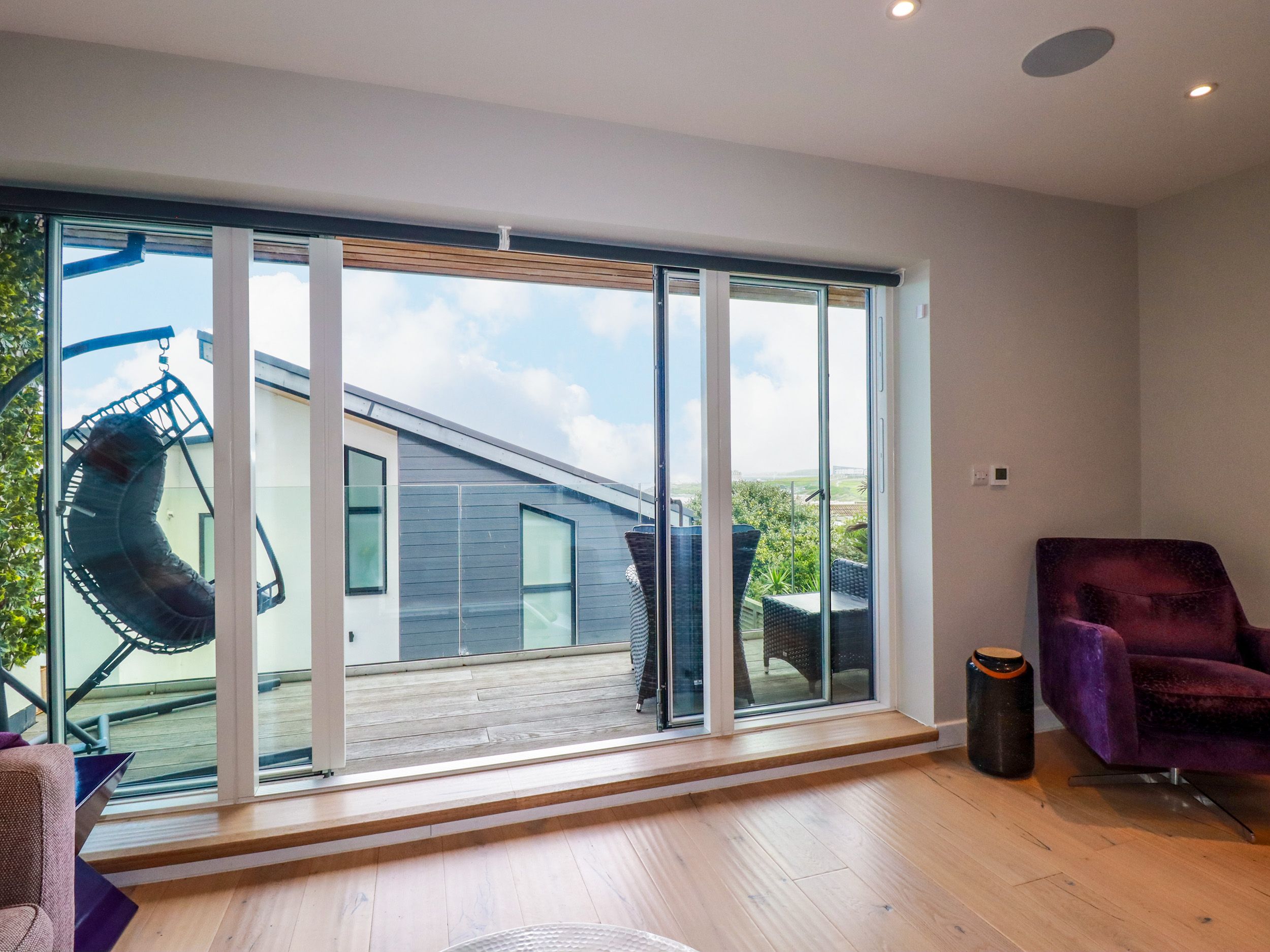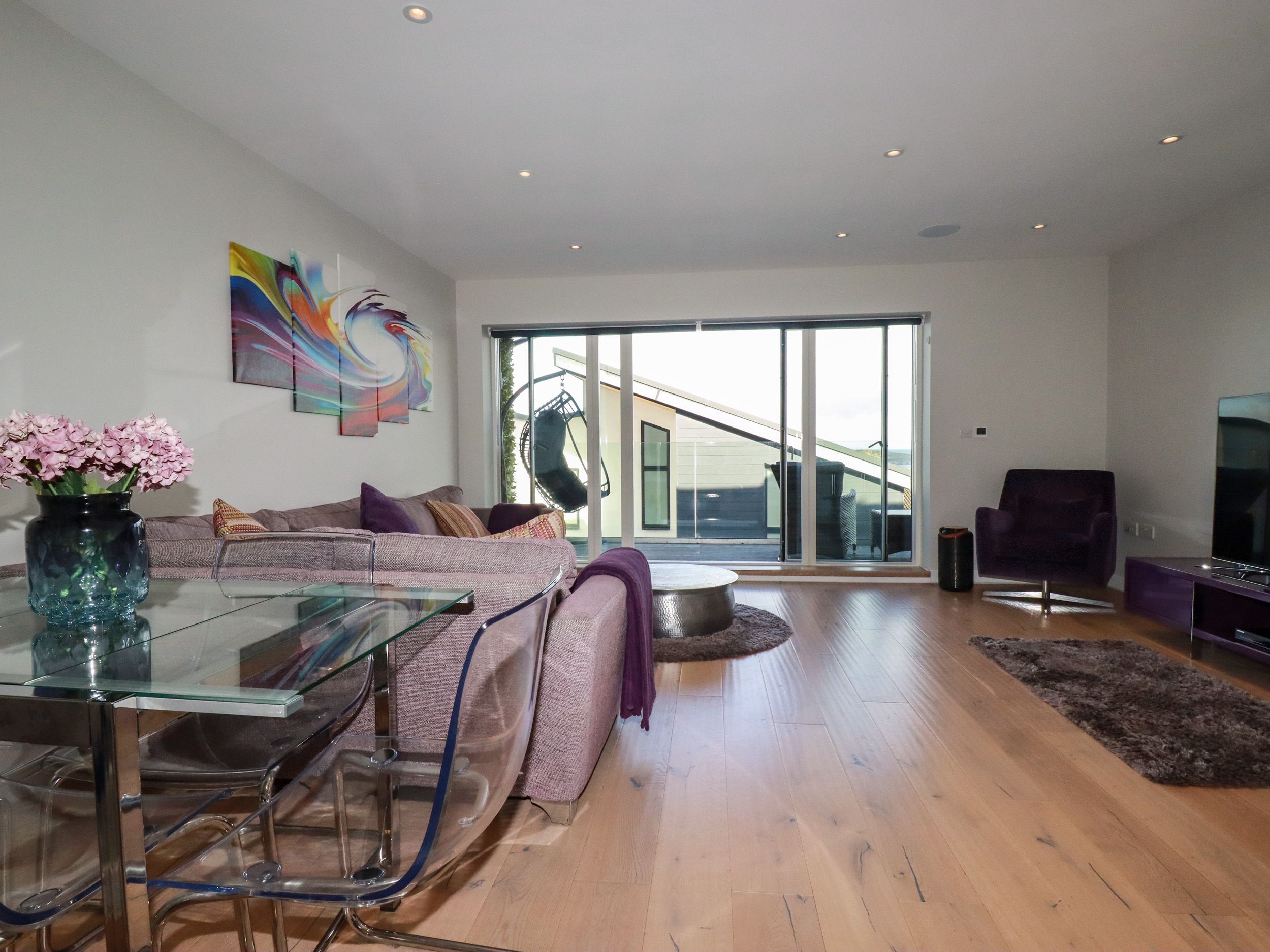 Holiday home Fistral Tide is a ground-floor apartment featuring two bedrooms: one double with an en-suite walk-in shower, basin, and WC, and one twin room with a TV. There’s also a family bathroom with a bath, shower over, basin, and WC. The open-plan living space includes a kitchen, dining area, and sitting area with access to a balcony furnished with an egg chair and additional seating. The apartment is equipped with gas central heating, an electric oven, induction hob, microwave, fridge/freezer, dishwasher, two TVs, WiFi, and an Xbox. Fuel, power, bed linen, and towels are included, along with private off-road parking. Located just 0.7 miles from the nearest shop and pub, and only 0.2 miles from the beach, Apartment 5 offers a convenient and relaxing seaside getaway. Book your stay at Apartment 5 now! Note: Check-in from 4pm and check-out by 10am. Note: There is a good housekeeping bond of 250 GBP.