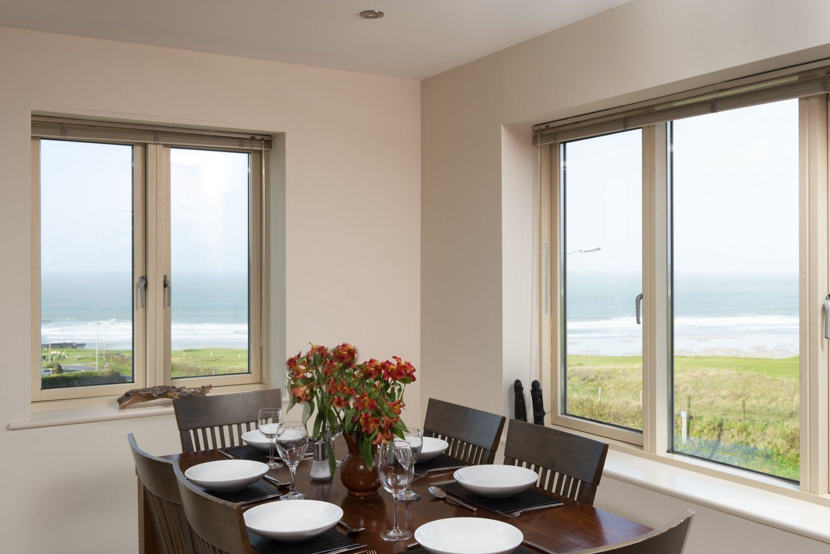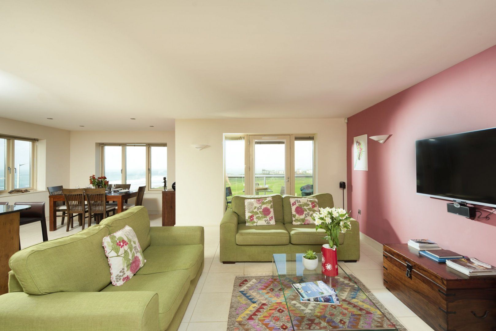 Situated a ten-minute walk from Fistral Beach and Newquay Golf Club, this comfortable apartment is a fabulous seaside escape for a family or couple of friends who like to spend their time outdoors. Inside, an open-plan living space with a tropically sweet pink and green colour scheme opens up onto a private balcony, where you can sit out with indulgent cream tea and watch fishing boats slip over the horizon. A clever kitchen makes light work of whipping up culinary favourites, but if you’d prefer to eat out, there’s a fine selection of restaurants a fifteen-minute walk from your doorstep. Once you’re fuelled and raring to go, scamper down to the waterfront to carve through crashing waves or relax on golden sands. Head home at the end of a windswept day, tuck away your surfboard in the storage provided and fall back into comfortable beds for a night of sweet dreams.