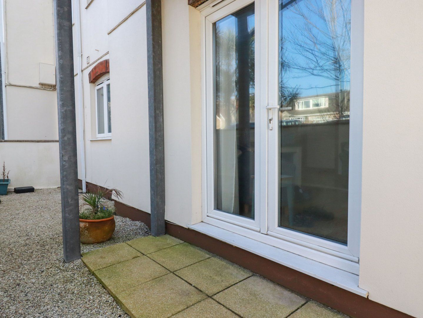 Holiday home The living areas in this ground-floor apartment consist of a kitchen equipped with electric oven and hob, microwave, fridge/freezer and washing machine and a living/dining room with table for four and Smart TV. The bedrooms consist of a double with en-suite shower room and a twin serviced by a bathroom. Outside there is an allocated parking space for one car and a side courtyard with bench. Within 0.2 miles there is a shop and beach and 0.1 miles a pub. Sorry, no smoking. WiFi, fuel, power, bed linen and towels are all included in the price. Explore Cornwall at Flat 4.