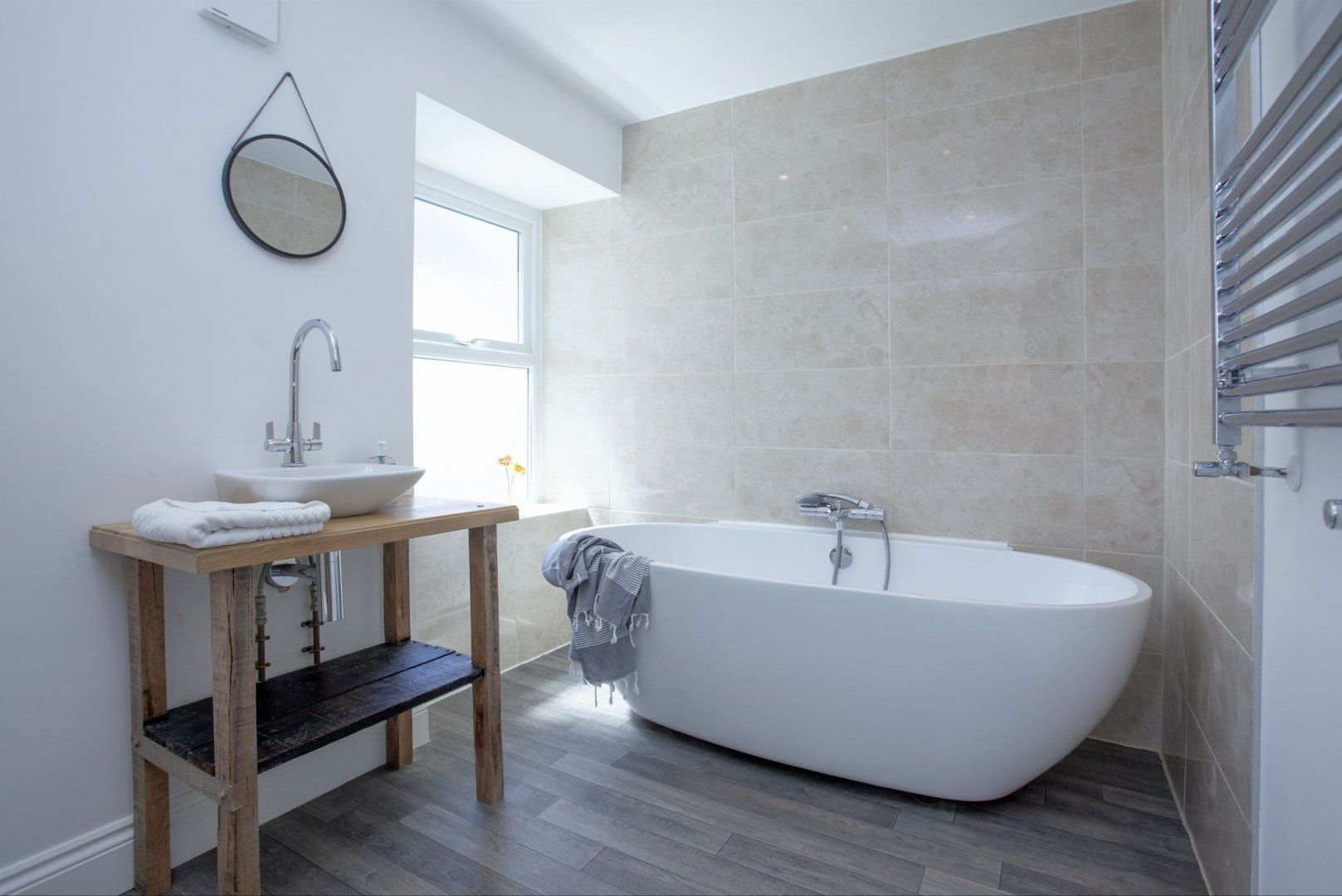 Set over three floors, you'll have an elegant living room with a feature wall of exposed stone, a huge kitchen-diner and bedrooms over the top two floors. The master has a fabulous bay window and its stylish en-suite is open to the room to make the most of its light, while the main bathroom features a freestanding bathtub to soak in after a day on the nearby beach. The sea is less than a mile away and there are both surf schools and board hire shops if you fancy hitting the waves. Less sporty guests will appreciate the array of restaurants in the town centre, and of course, there's nowhere better for evening drinks than on your own balcony.