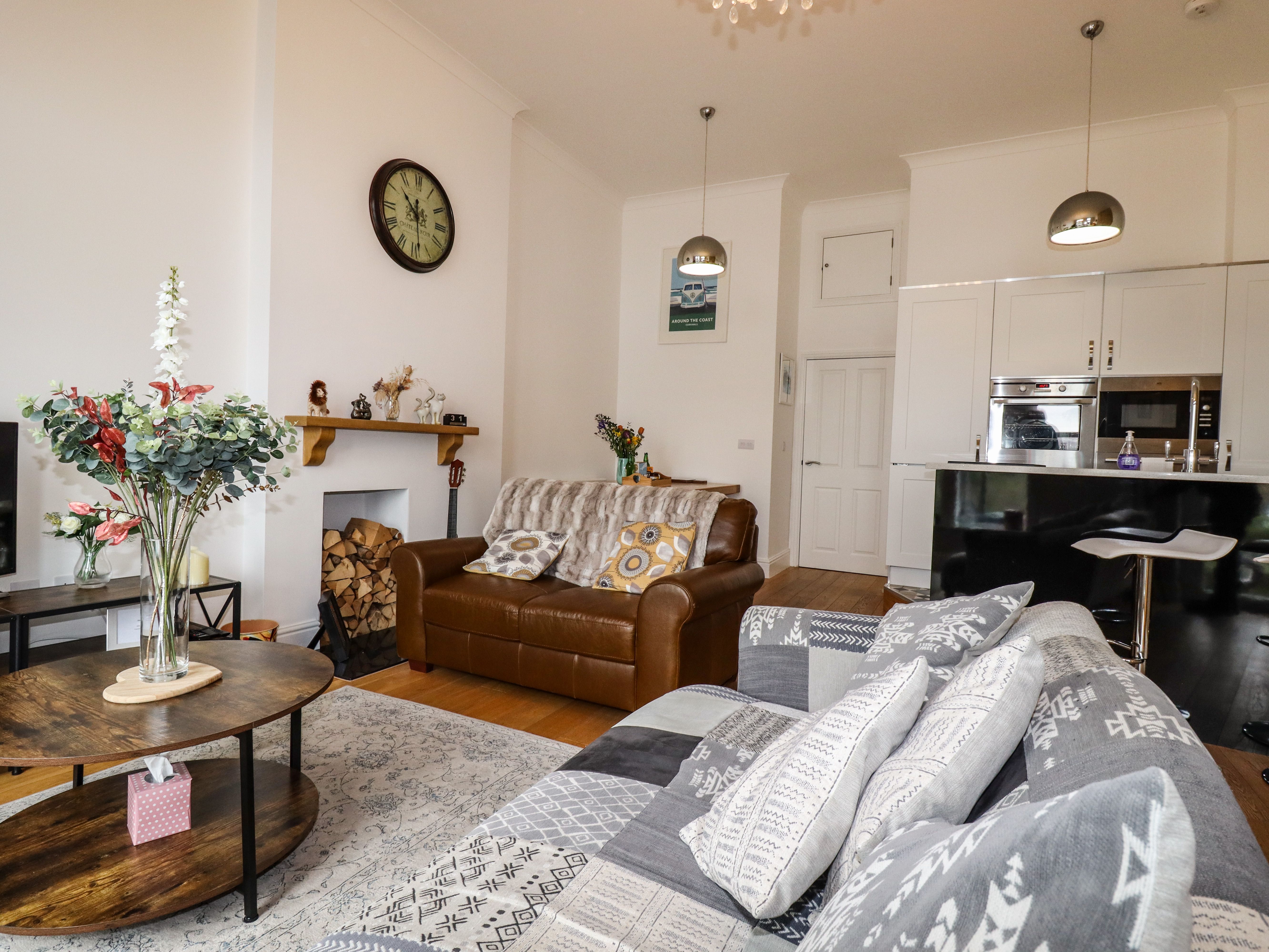 Holiday home This quintessentially English, stylish duplex apartment, King Edwards View, is located within a large historic Victorian property in the centre of the popular coastal town of Newquay. As you enter your new home-away-from-home, be enchanted by the peaceful interior of the open-plan living room that greets you. The main living area is flooded with light thanks to the towering floor-to-ceiling windows, and an old masonry feature pays homage to the property's original character. King Edwards View is a fantastic base for both families and friends seeking a Cornish adventure, as it is perfectly positioned for discovering the attractions of the UK's surf capital while framing far-reaching views of the bay and shimmering seas.