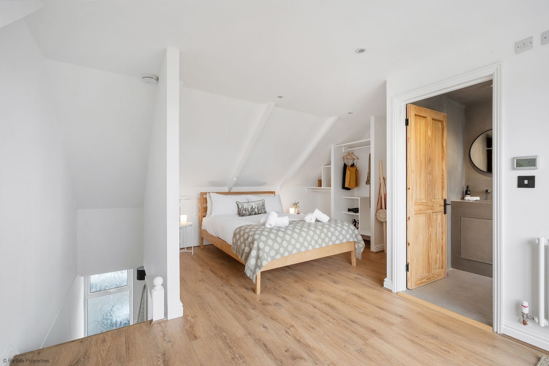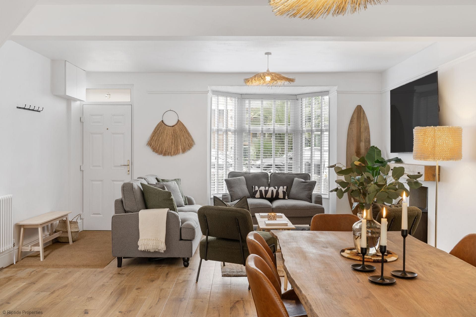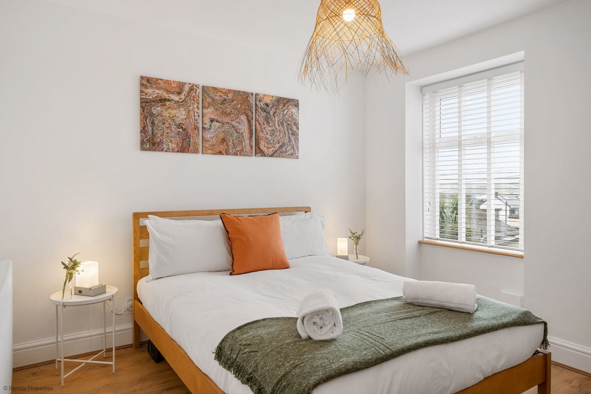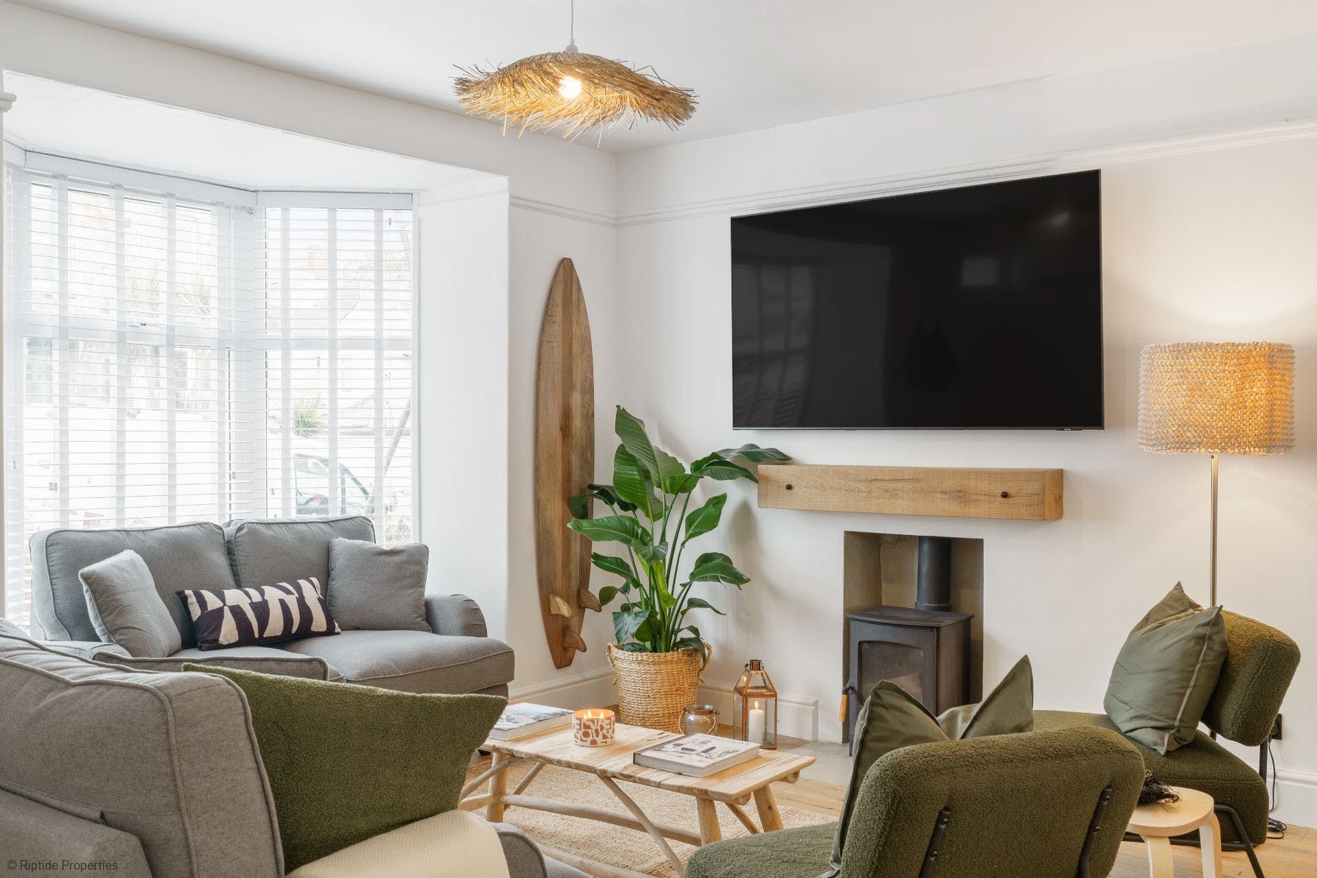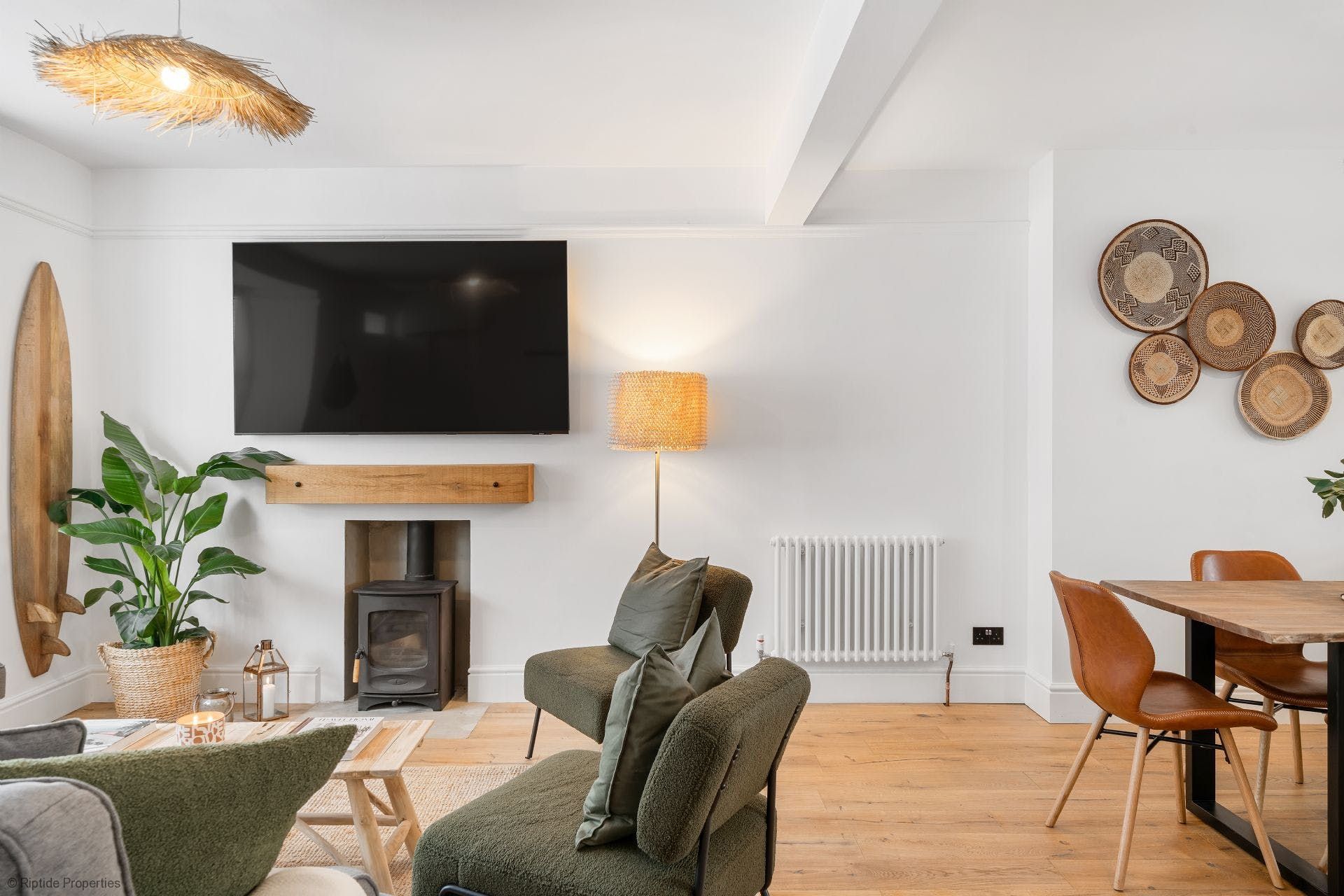 Located in central Newquay, this home delivers a great base for a refreshing coastal escape. From here, it’s a short stroll to the beach, while the nearest restaurants, shops and cafes are all within easy reach. Back at home, you’ll find the open-plan living room lends itself perfectly to cosy gatherings by the fire. Board games are provided, children’s amenities can be arranged, and there’s the handy addition of a sofa bed for two guests. Other highlights include the sea views from the main bedroom and the private garden – a sweet spot for summer evening drinks.