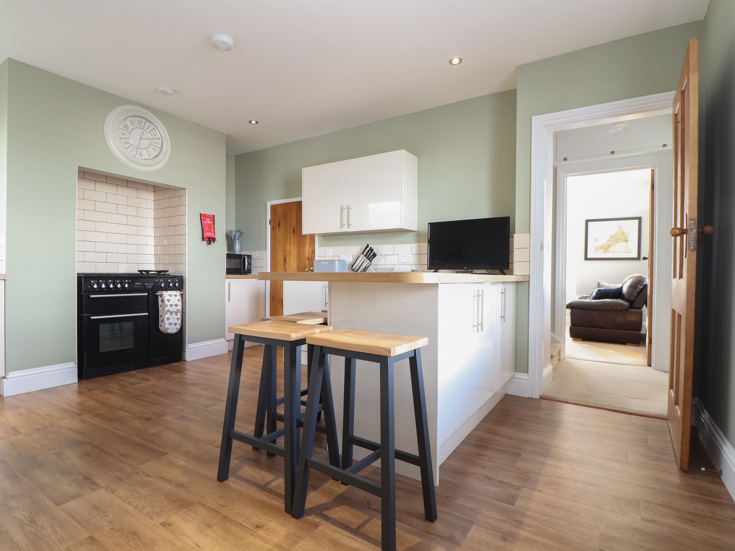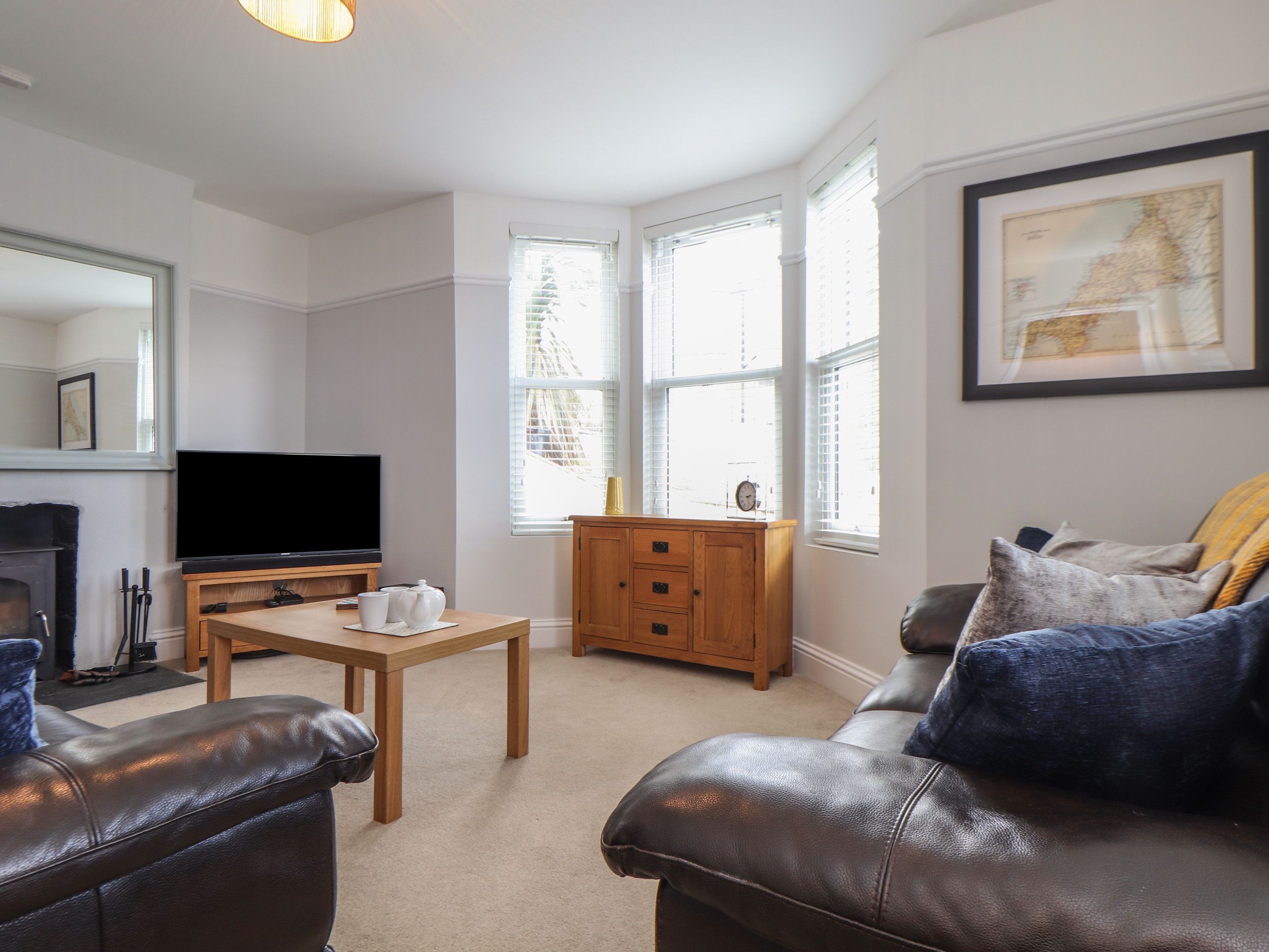Amenities Gas central heating. Gas Rangemaster cooker with oven and hob, microwave, fridge, freezer, washer/dryer, dishwasher. Smart TV and WiFi. Fuel, power, and starter pack for woodburning stove inc. in rent. Bed linen and towels inc. in rent. Small garage (440cm lenght X 180cm height X 300cm wide) for 1 car and sports equipment storage. Public car park nearby. Elevated, enclosed terrace with furniture. One well-behaved pet welcome (2nd pet considered by agreement with the owner at an additional charge of £25). Sorry, no smoking. Shop and pub 0.1 mile, beach 0.3 miles. Note: This property sleeps up to five people, this includes babies and children. Note: There are steps up to the terrace. Note: Check-in from 4pm and check-out by 10am.