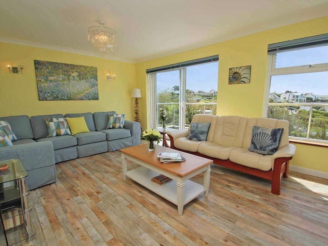 Windrush boasts a prime elevated position with big sea views overlooking Mawgan Porth. The house sleeps eight people and has five bedrooms; one king-size double, and two singles on the ground floor with sitting room, dining room, kitchen and family bathroom. One double bedroom and a twin with an ensuite shower room are on the first floor. The balcony with garden furniture plus lawn and pond makes a great outdoor space for relaxation. There is off road parking for three cars and a garage for storage. Just a 10 minute stroll from the sandy beach and facilities of Mawgan Porth, Windrush makes a sunny sanctuary close to the coast.