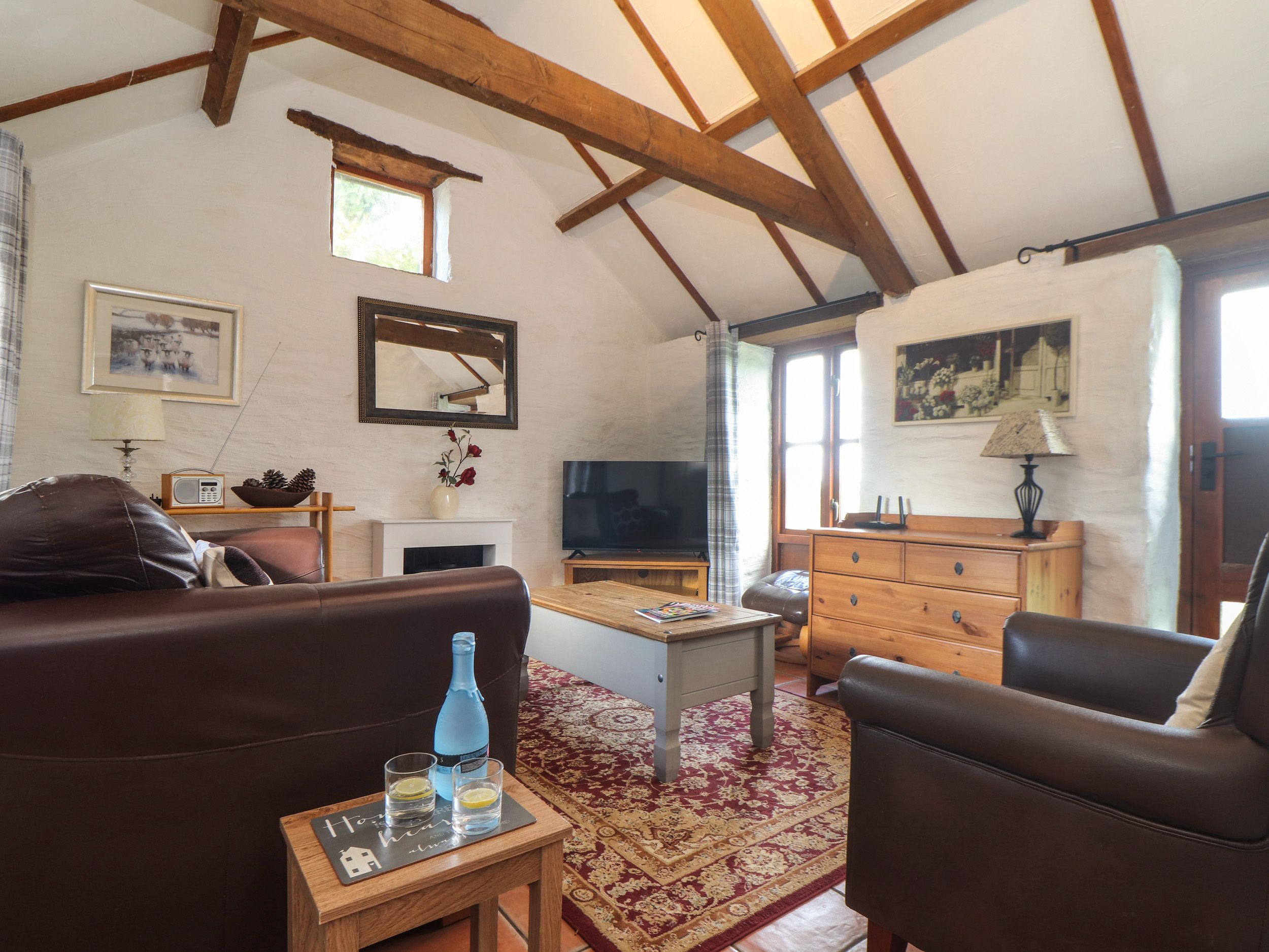 Amenities Electric central heating. Electric oven and hob, microwave, fridge, freezer, kettle, toaster, shared coin-operated washing machine and tumble dryer. Smart TV, WiFi, DAB radio. Free use of the pool table, table football and soft play area. Fuel and power inc. in rent. Bed linen and towels inc. in rent. Travel cot, highchair and stairgate available on request. Off-road parking for 1 car. EV charging (fees apply). Enclosed garden with lawn, barbecue and furniture. Two well-behaved pets welcome. Sorry, no smoking. Shop 1.7 miles, pub 1,6 miles. Note: Guests have access to the facilities at the nearby site (driving distance), including an indoor heated pool and nightly entertainment with musicians, performers and comedians regularly appearing throughout the season.. Note: There is a step by the front door, please take care. Note: This property has a Good Housekeeping Bond of £200. Note: Check in time is 4pm, checkout time is 10am.