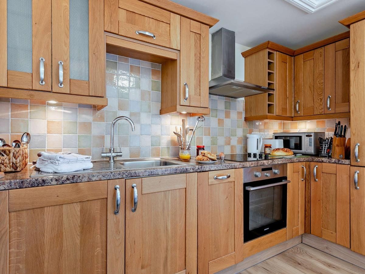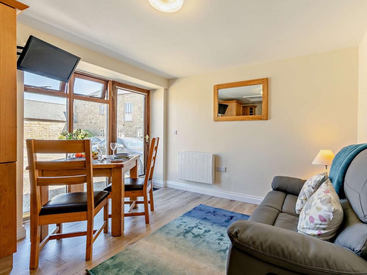 After a long day exploring your magical surroundings, refuel in the open-plan lounge/kitchen/dining room by whipping up a delicious feast with all the wonderful local produce you’ve collected and enjoy dining romantically long into the evening around the compact wooden dining table. Hunker down for the evening on the comfy sofa and unwind with your favourite programme on the TV.