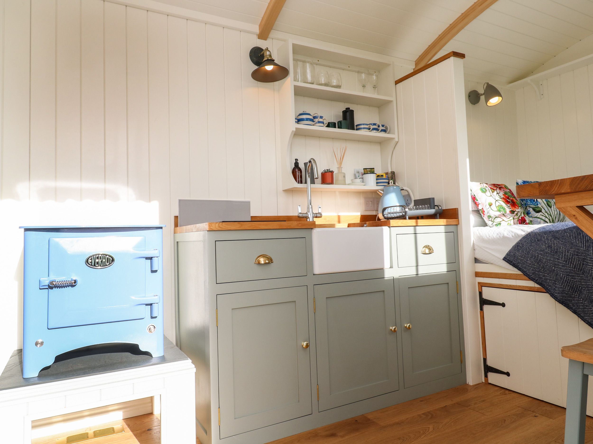 Holiday home Lower Trewern Shepherds Hut, a single-storey home consists of a kitchen with an electric 2-ring hob, fridge, kettle, and a dining area with seating for two guests. The bedroom consists of a double bed along with a shower room. Outside, there is a wrap-around-garden with lawn, patio, furniture, fire pit and off-road parking for one car. Within 2.6 miles, you will find a shop, and within 0.9 miles, a pub. Please note this is pet-free and smoke-free property. Fuel, power, bed linen and towels are all included in the price. Lower Trewern Shepherds Hut is a charming base for a Cornish escape. Note: The garden is not enclosed. Note: There are three steps up to the property, please take care. Note: This property has a Good Housekeeping bond of £150.