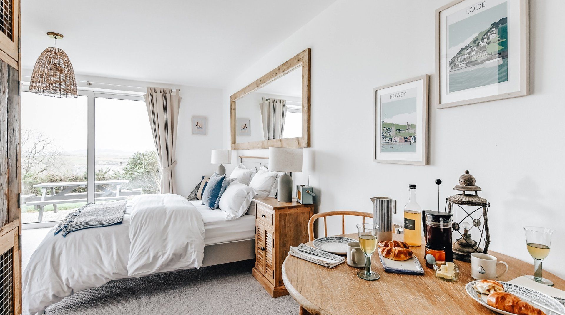 Set in a former hotel, this home is an excellent choice for exploring some of Cornwall's prettiest corners while avoiding the crowds. It’s a minutes’ drive from the bustling port of Looe, where we love to mosey around the model village, gorge on the catch of the day at a restaurant or perch on the sheltered beach. Polperro is also close by, a ten minutes’ drive away, with its cobbled streets and local pubs. Back at home, you’ll find a relaxing bright environment with beachy vibes. We love the different coloured wood in the kitchenette, the blue tiles in the bathroom and the wicker lamps. The loveseat has a clear nautical theme, perfect for afternoon lounging, while the bed is luxurious and welcoming at the end of the day. Enjoy breakfast at the small wooden table, or outside in finer weather, and map out your plans for the day. For the more adventurous, there are several canoe, kayak and paddleboarding shops in Looe, with the choice to hire or go on a guided tour. Otherwise, hit the gorgeous coastal walking paths, following the cliffs and coastline and even passing a few sheltered little beaches.