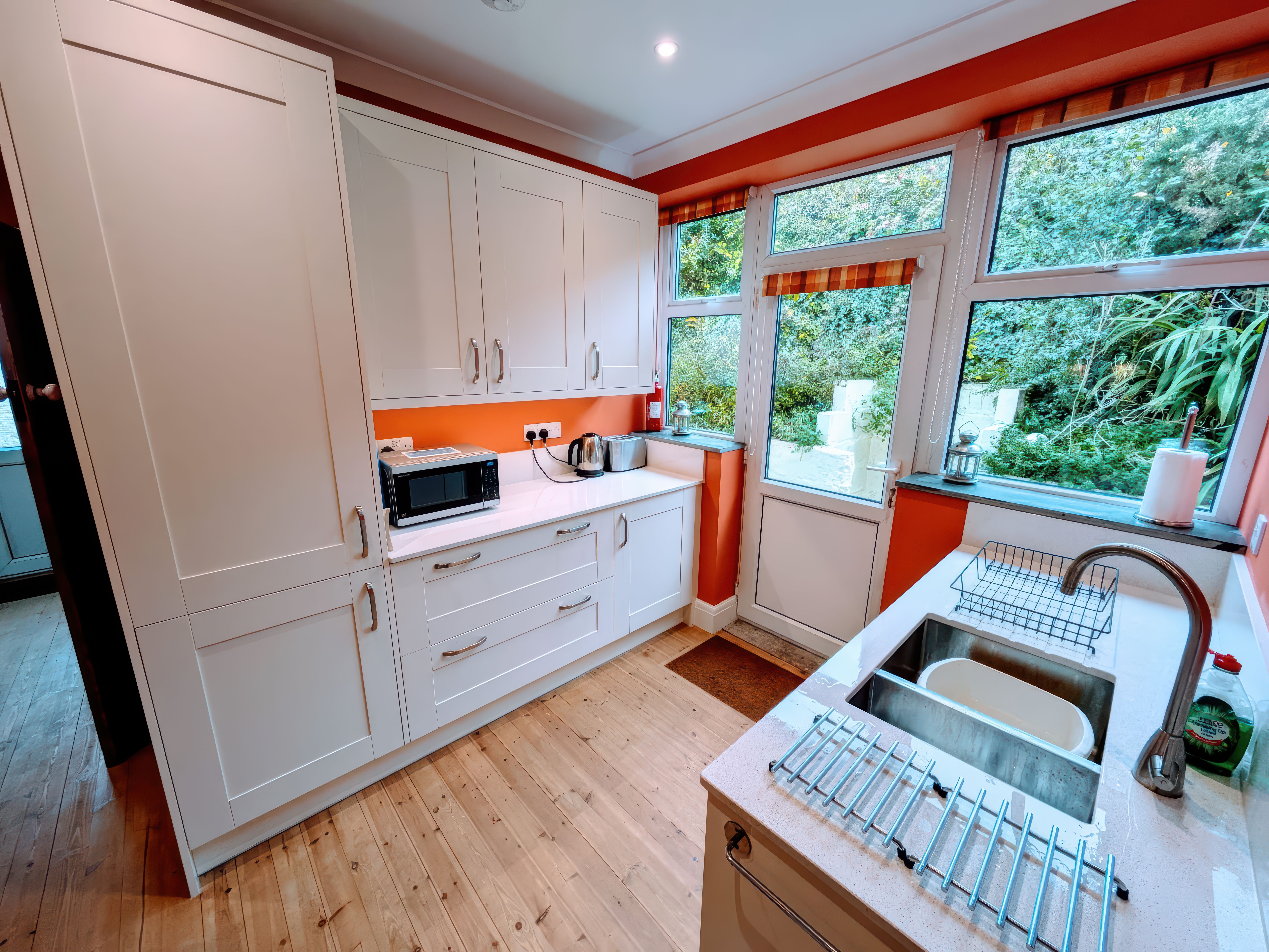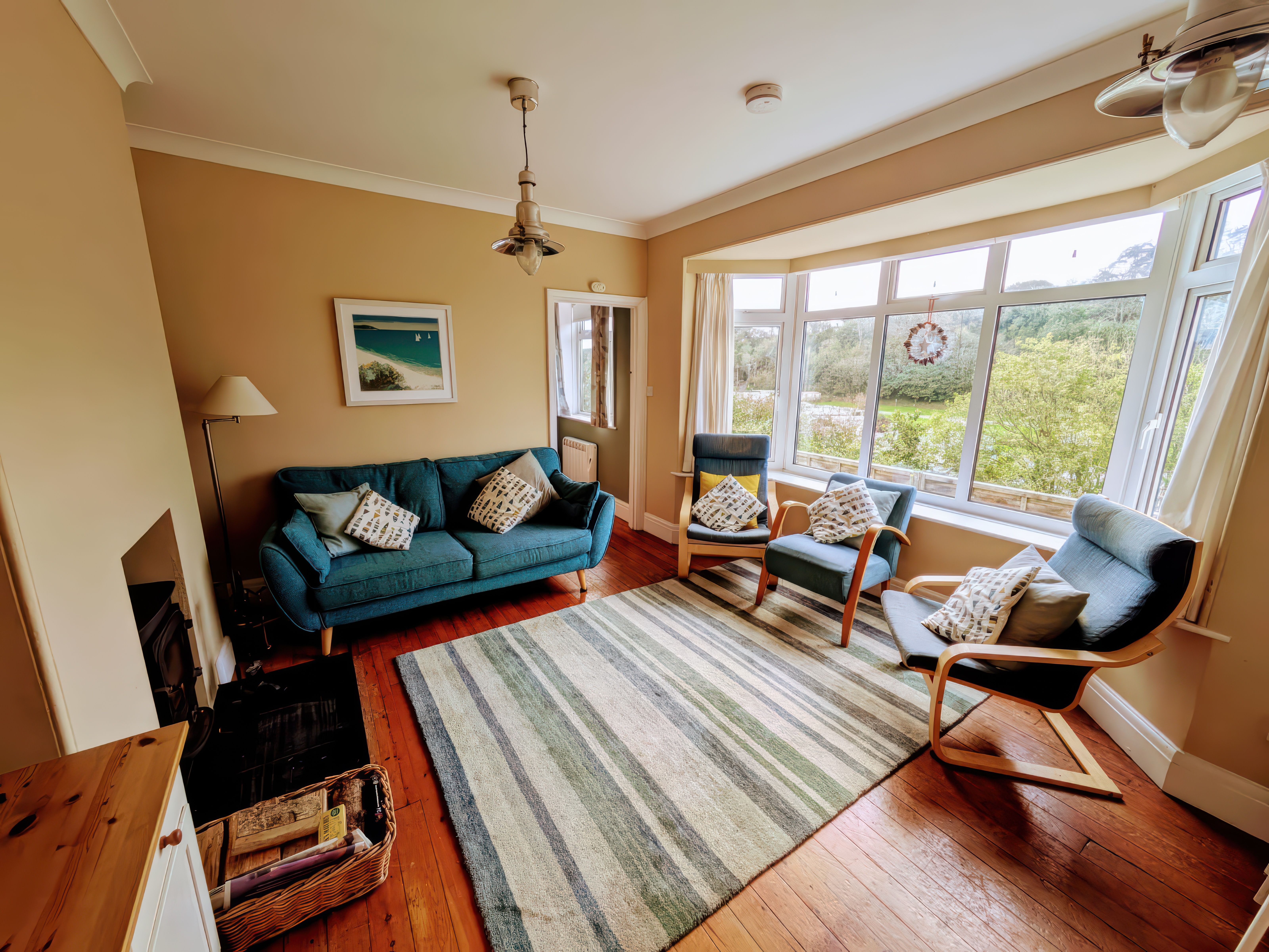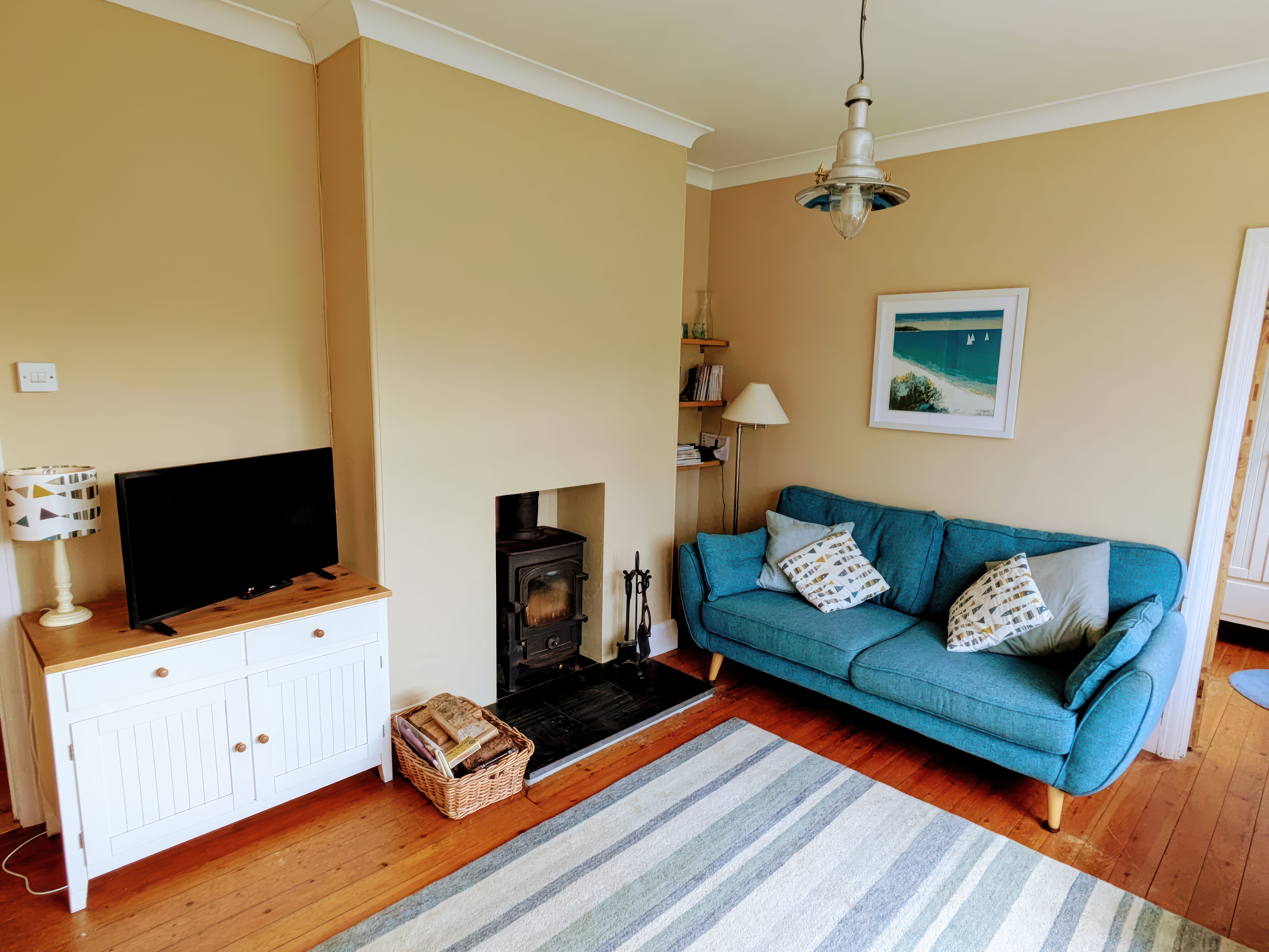 Amenities Electric panel heaters and multi-fuel stove in the sitting room. Electric oven with four ring hot plate hob. Microwave. Fridge/freezer (60/40 split). Washing machine. Tumble Dryer. Dishwasher. TV with Freeview. DVD player. WIFI. Electric and heating included. Sorry, no pets, bed linen and towels are not included and smoking is not permitted. Off road parking for two cars. Garden laid to lawn with raised terrace and wooden balustrade. Village shops, bars and beach three minute walk. Note: the steps up to Burwyn are numerous and quite steep.