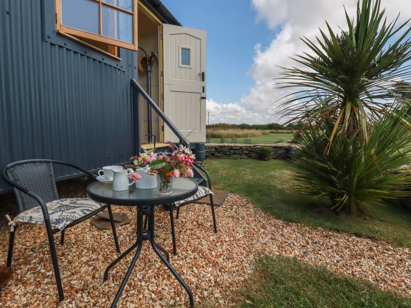 Holiday home The living space for this shepherd’s hut is studio style, housing a kitchen with electric hob, kettle and cool box, dining seating for two and a double bed, serviced by a shower room with walk-in shower, basin, heated towel rail and WC. Outside there is a large lawned area, enclosed lawn with furniture and barbecue and off-road parking for one car. Within 1.8 miles or less you will find a shop, a pub and a beach and please note this is a pet-free and smoke-free property. Fuel, power, bed linen, towels and WiFi included in the rent. Make a romantic getaway to Cornwall to remember with a stay at the delightful Dot May.