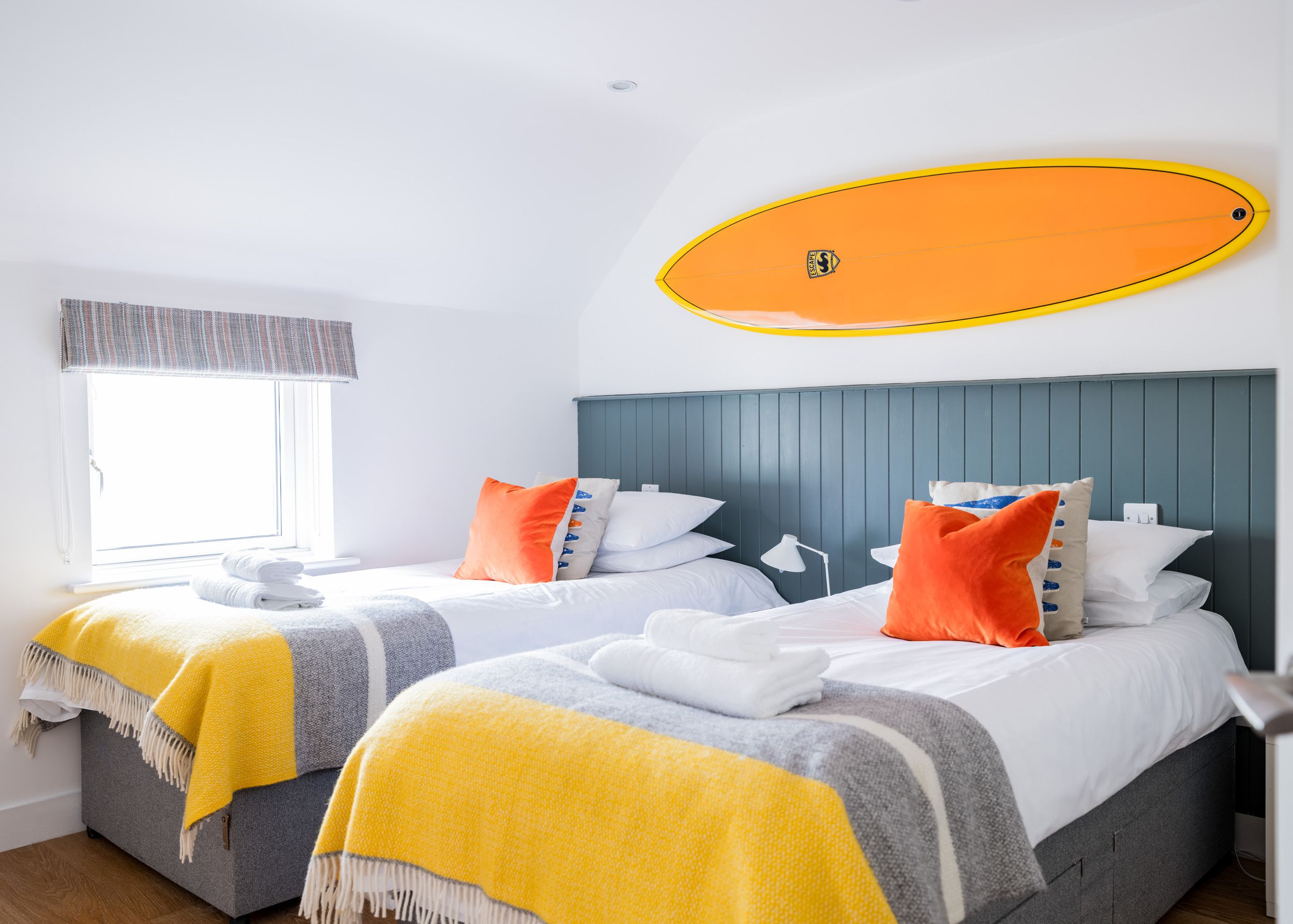 Ground source underfloor heating. Woodburner. Electric intergrated oven and ceramic hob, microwave, Nespresso Vertuo machine, as well as a classic Nespresso machine, fridge/freezer, washing machine, tumble dryer, dishwasher. TV, DVD player, WiFi. Bed linen and towels inc. In rent. Fuel and Power inc. In rent. Two car parking spaces, surf board rack. Outside shower. Large decking area with BBQ, table and chairs. 1 well-behaved dog. Sorry, no smoking. Pub 52 ft. Beach 0.2 mile. Shop 0.3 mile. Please note: the beds will be made up as per the description, if you require the zip and link bed(s) to be configured differently; please inform us AT LEAST 7 days prior to your arrival date