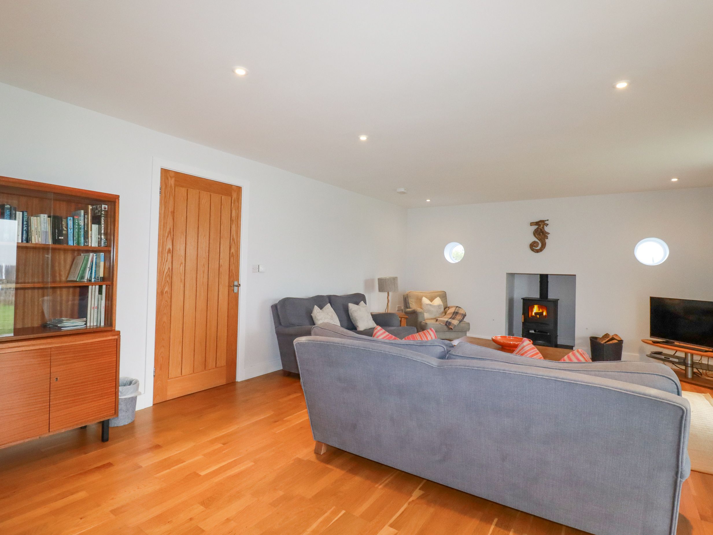 Amenities Gas underfloor central heating. Electric oven, gas hob, microwave, fridge/freezer, washing machine, dishwasher. TV with Freeview, WiFi. Fuel and power included in rent. Woodburning stove in sitting room with logs and firelighters included. Bed linen and towels included in rent. Highchair available. Off-road parking for 2 cars. Garden with lawn, terrace, furniture and barbecue. Sorry, no pets and no smoking. Shop 0.5 miles, pub 0.2 miles, beach 0.5 miles