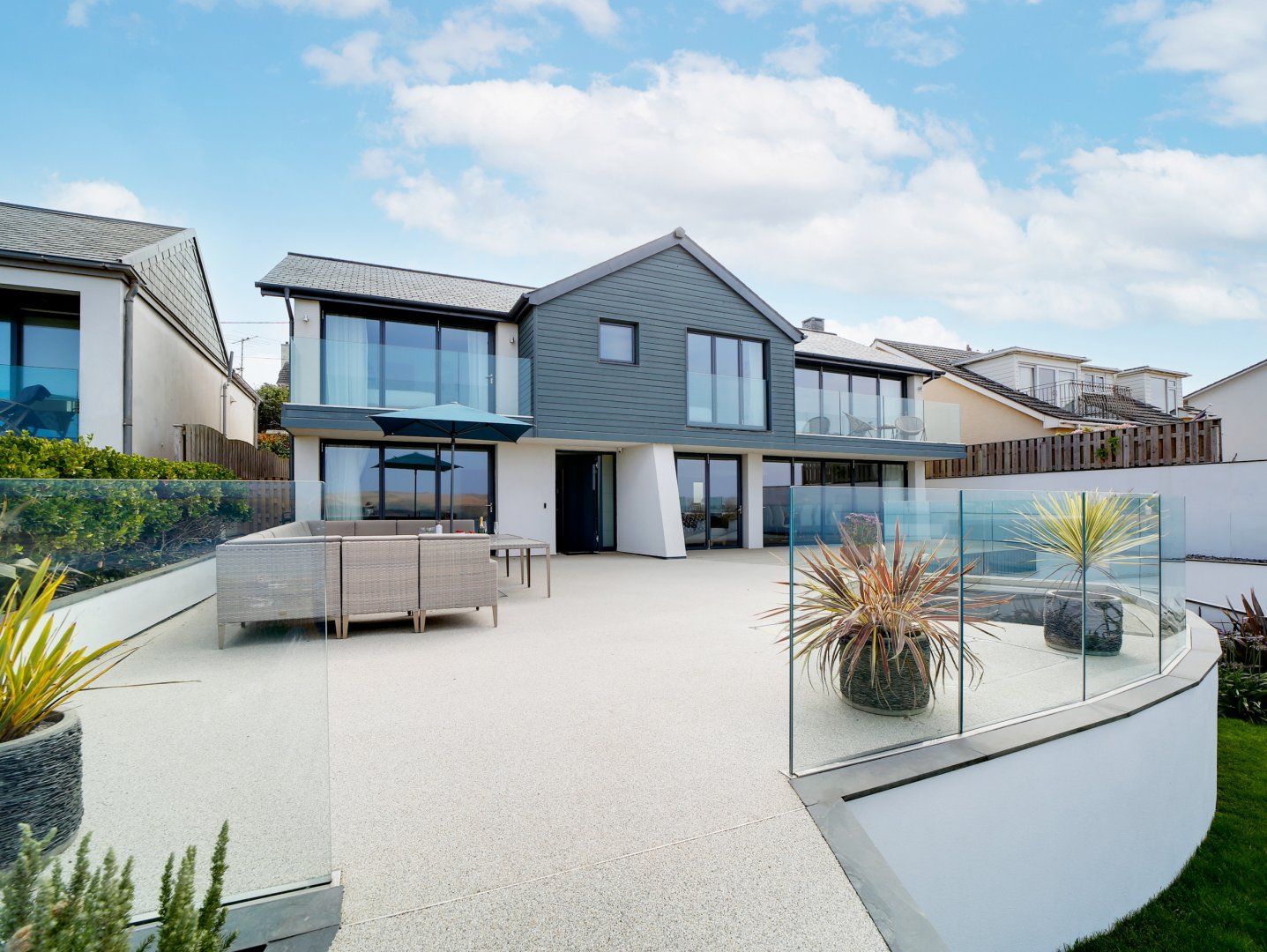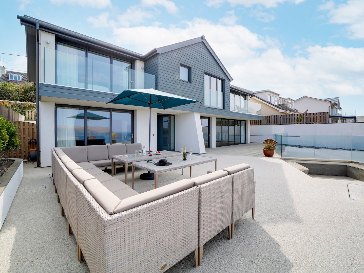Accomodation Details Over three floors. Five bedrooms: 1 x king-size with en-suite bath, walk-in shower, basin, heated towel rail and WC and balcony, 2 x king-size with walk-in shower, basin, heated towel rail and WC. 1 x double with Jack and Jill access to shower room, 1 x double bunk room (2x lower beds only) with Jack and Jill access to shower room. Shower room with walk-in shower, basin, heated towel rail and WC. Lower-ground-floor shower room with two walk-in showers. Cloakroom with basin, heated towel rail and WC. Open-plan living space with kitchen, dining area and sitting area with woodburner. Utility. Snug